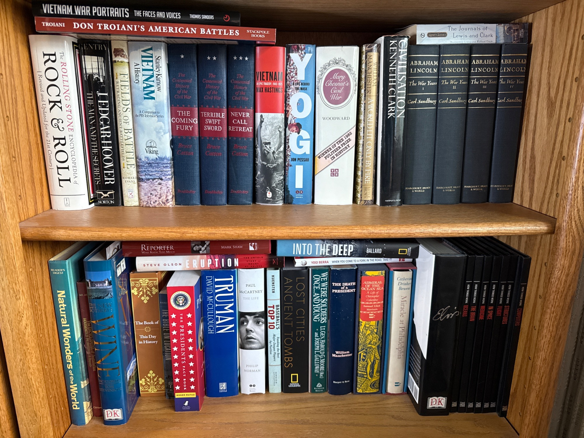 A rich and varied two-shelf collection featuring influential figures, pivotal historical events, cultural legends, and scientific wonders. From Civil War volumes and presidential biographies to illustrated guides on music, sports, and the natural world, this set is ideal for collectors, educators, or anyone building a thoughtful home library. Highlights Include: Civil War Trilogy by Bruce Catton Vietnam histories by Karnow and Hastings 4-volume Abraham Lincoln: The War Years J. Edgar Hoover, Paul McCartney, Yogi, Elvis Time-Life’s How Things Work (7 vols) Sotheby’s Wine Encyclopedia, Civilization, and more