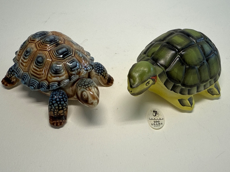 Lot # 64 - Fenton 100-Year Commemorative Glass Turtle & Wade Ceramic Turtle Box