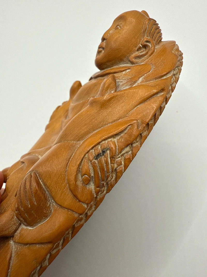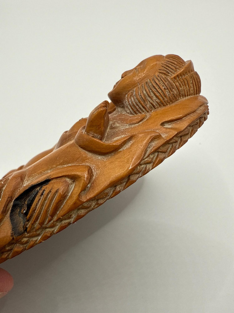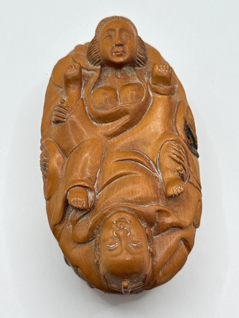 Lot # 73 - Signed Wooden Carving – Erotic Couple Bathing Scene