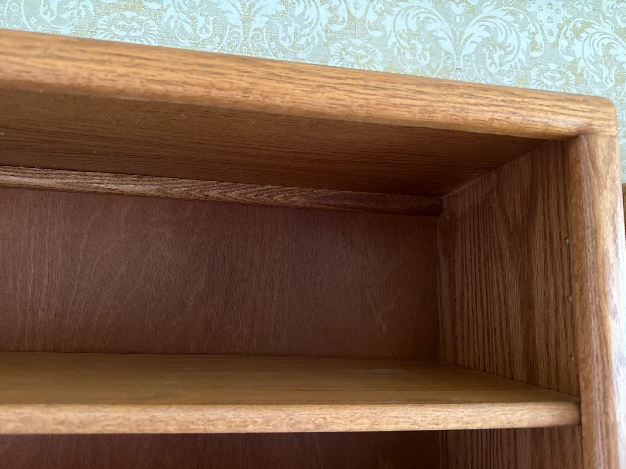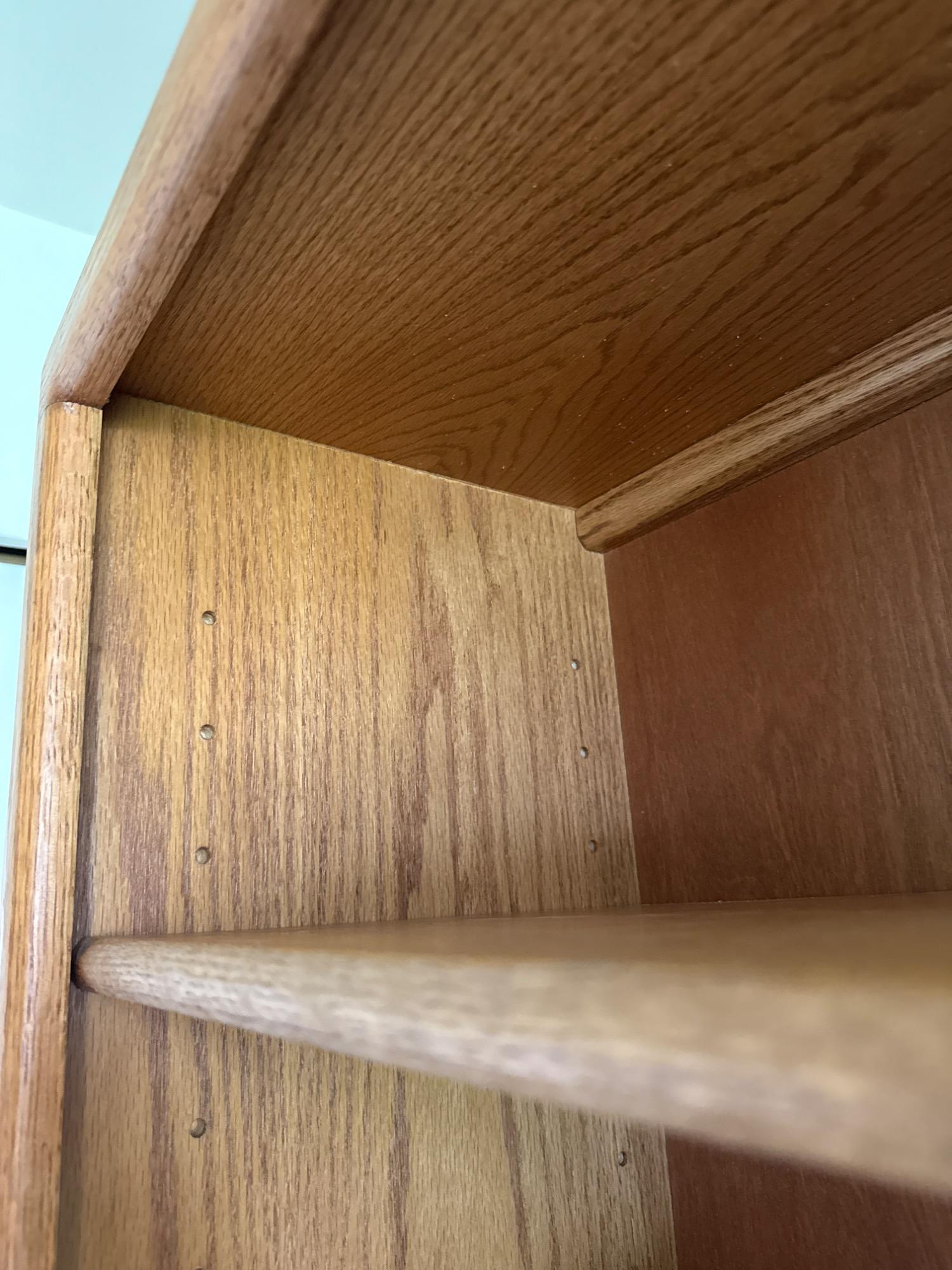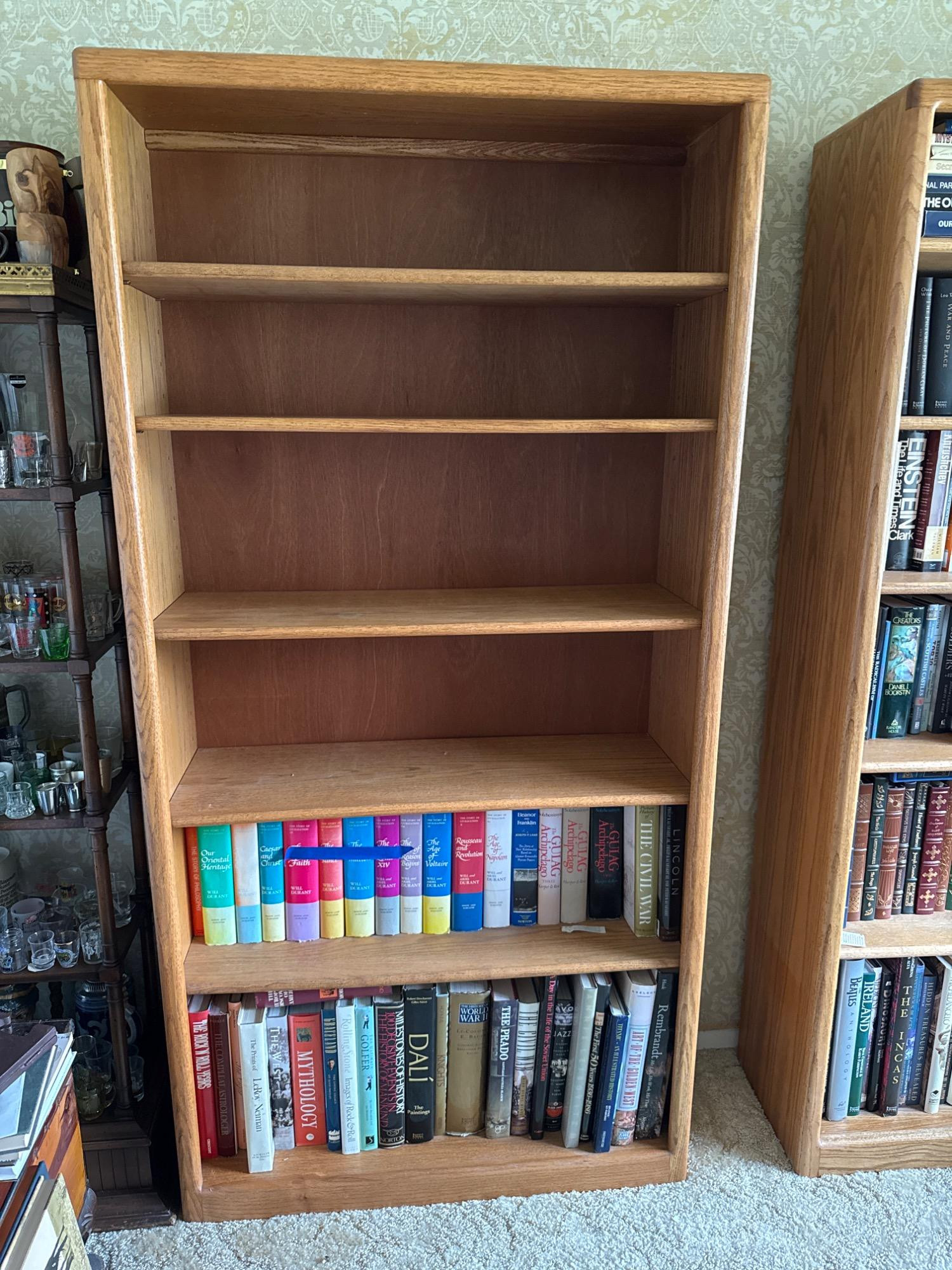 Crafted from solid oak and oak veneer, this tall and sturdy bookcase offers a timeless design and ample storage. With five spacious shelves—which are adjustable—it provides flexibility for displaying books, collectibles, or décor. The warm oak grain adds a classic touch that complements both traditional and contemporary spaces. Dimensions: 36"L x 13"W x 72"T **Books NOT included**