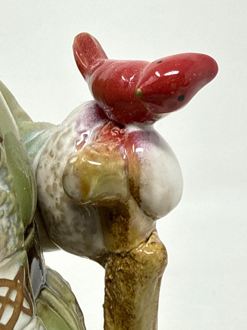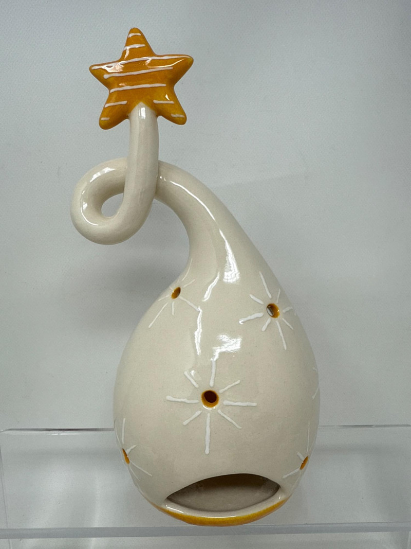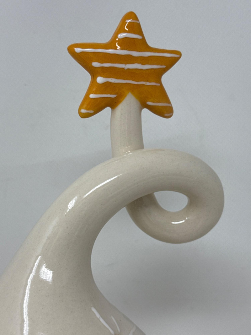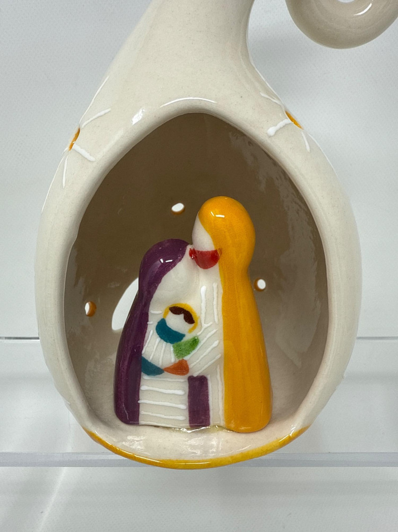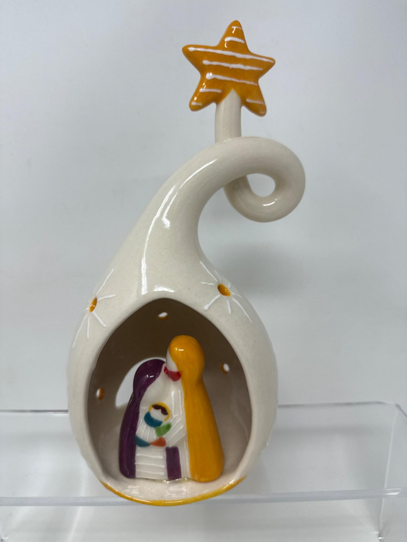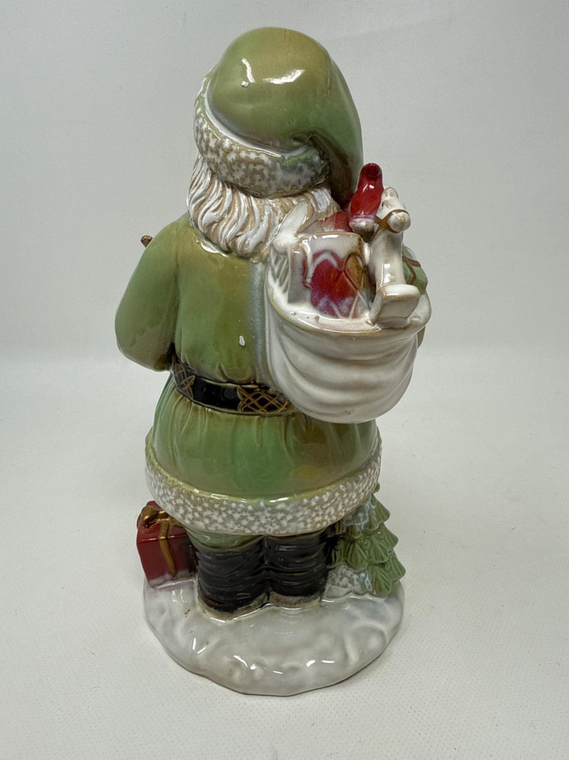 Celebrate the season with this charming duo of collectible holiday figurines: Terre di Scirocco Nativity Scene – This ceramic piece features a modern, stylized Holy Family beneath a tall, curling roof topped with a gold star. Handcrafted with signature Italian artistry, it’s signed “Terre di Scirocco” on the base. Measures 9.5” tall, 4.5” deep, and 4” wide. Abbey Press Santa Figurine – A beautifully detailed Santa dressed in green with Celtic-inspired accents, holding a staff and red bird, with a gift sack at his feet. Made of ceramic or resin. Marked “Abbey Press – 50400 – Made in China” on the bottom. Measures 10.5” tall and 5” wide.