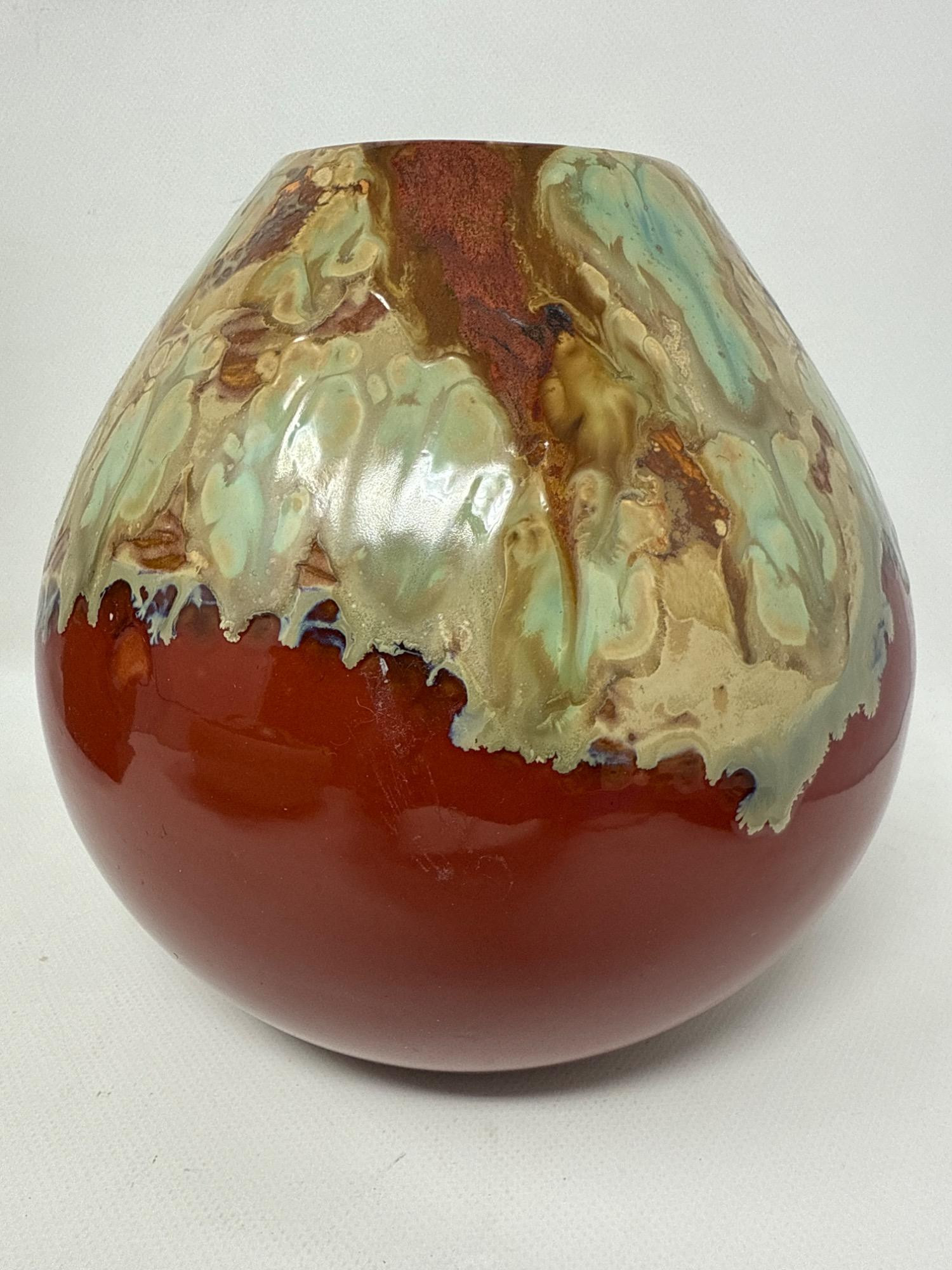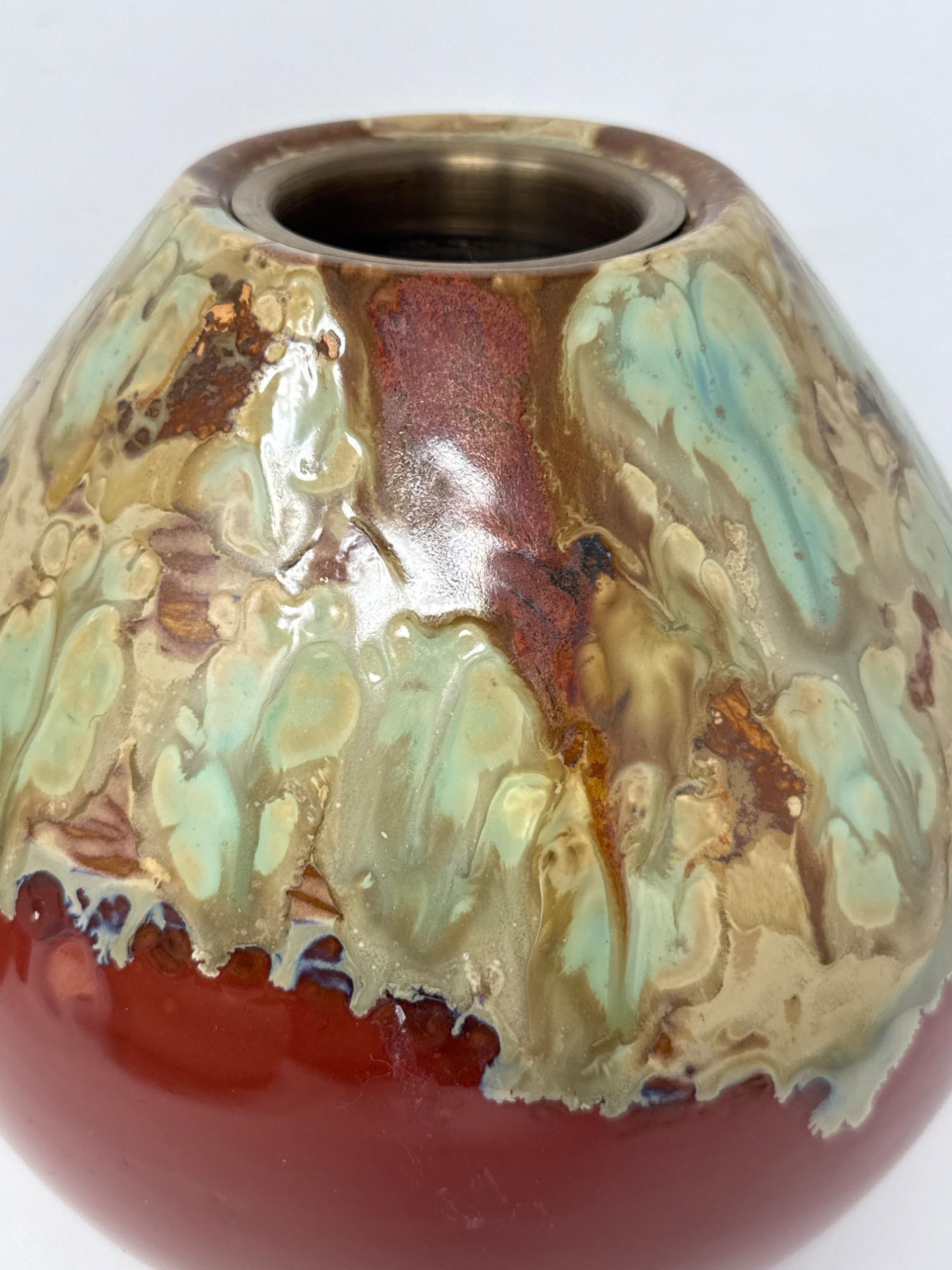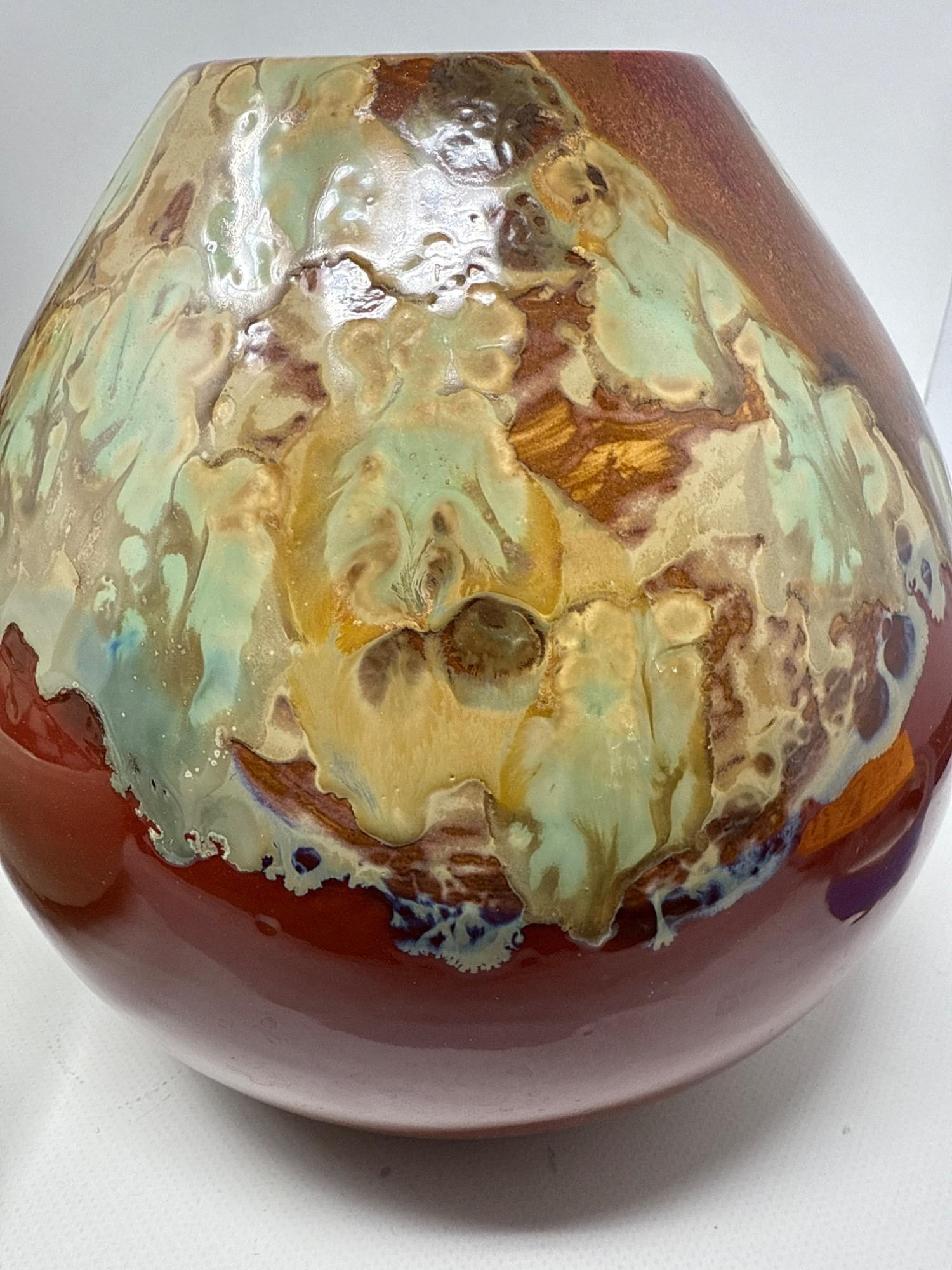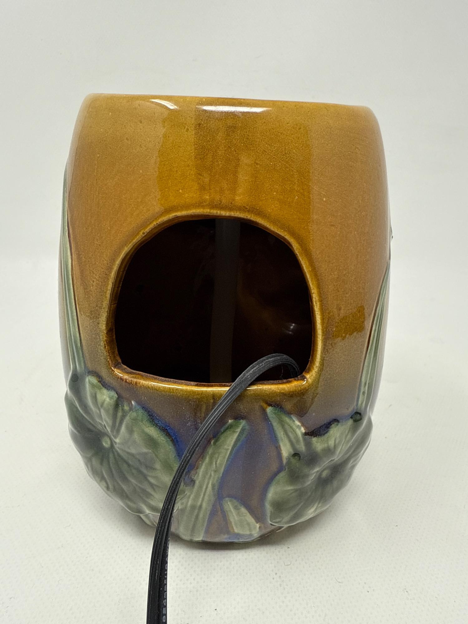 This charming trio includes two powered tabletop water fountains and one decorative fire pot. Green Leaf Fountain Dimensions: 4" T x 8.5" W Features: Green glazed ceramic bowl with black river rocks and a leaf-shaped spout. Powered up Frog Fountain (Nature’s Garden) Dimensions: 7" T x 5.5" W Features: Sculpted ceramic frogs and floral detailing. Includes original product card. Plug was unusual, not tested Drip Glaze Fire Pot Dimensions: 9" T x 8" W Features: Glossy red and multicolor drip glaze with brass