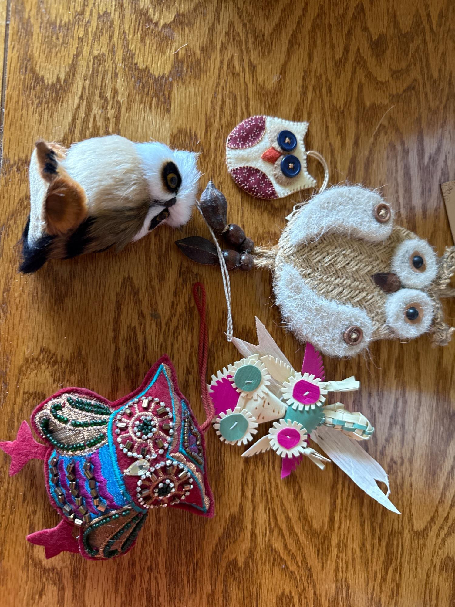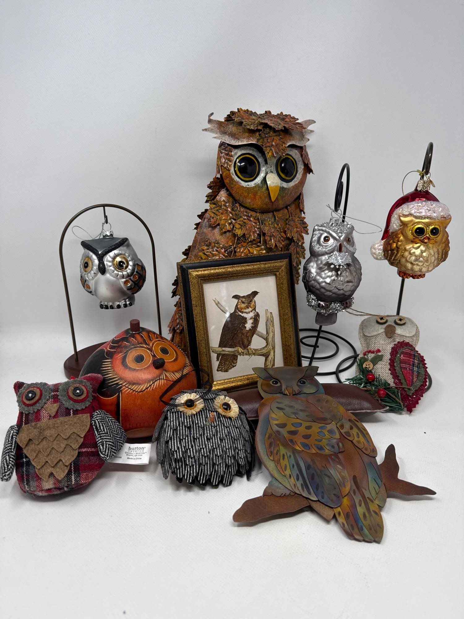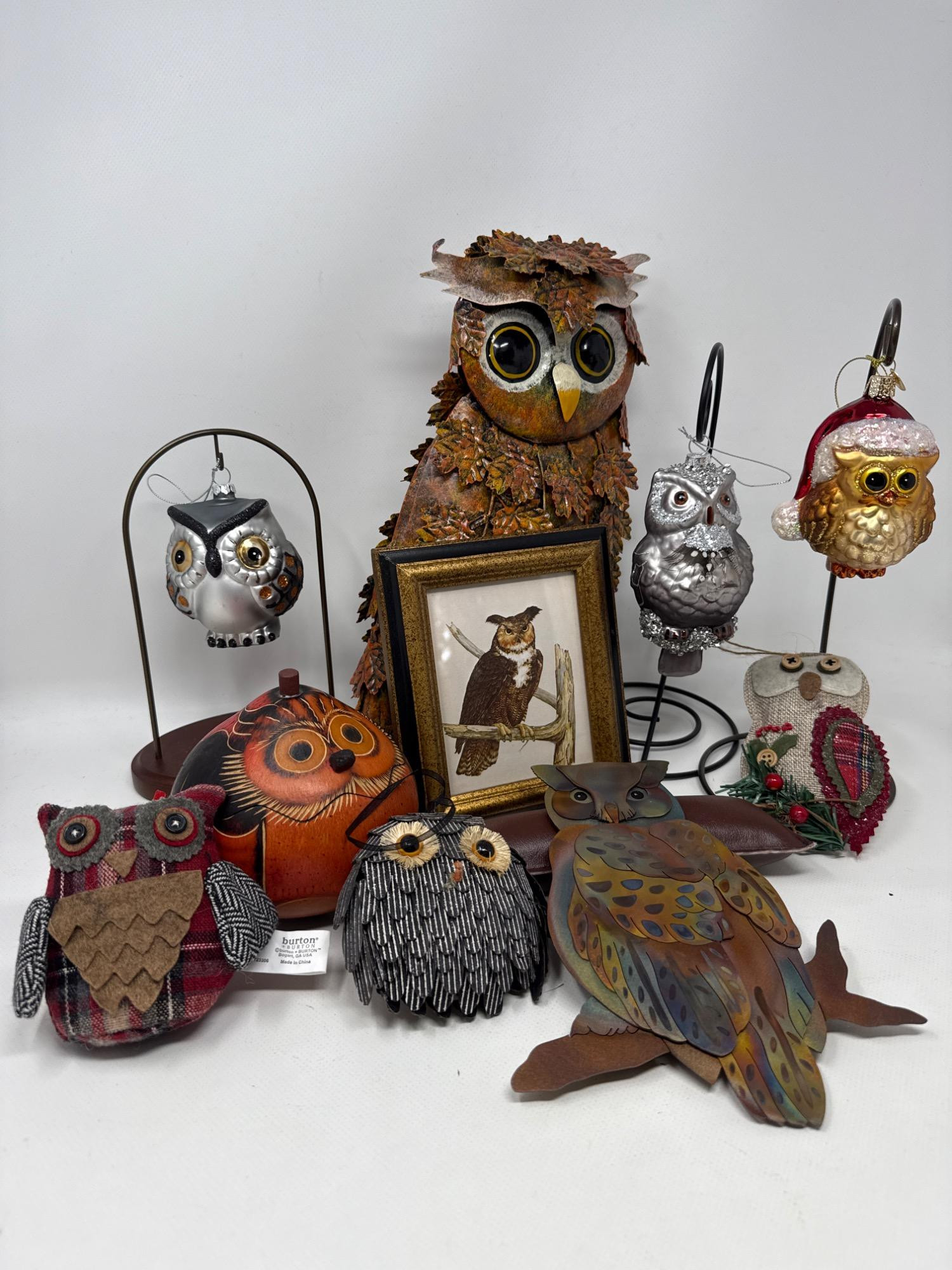 Lot # 126 - Whimsical Owl Ornaments & Handmade Collectibles