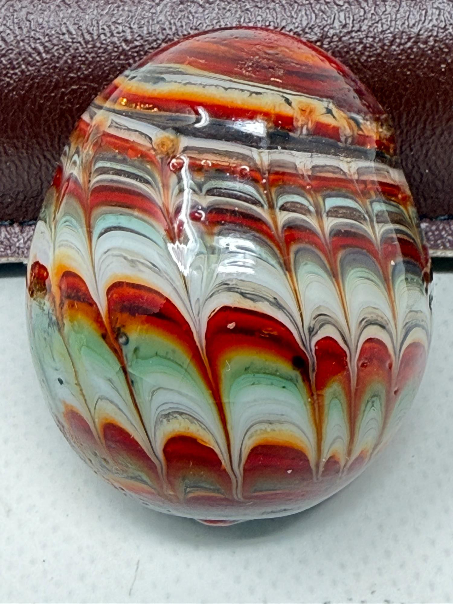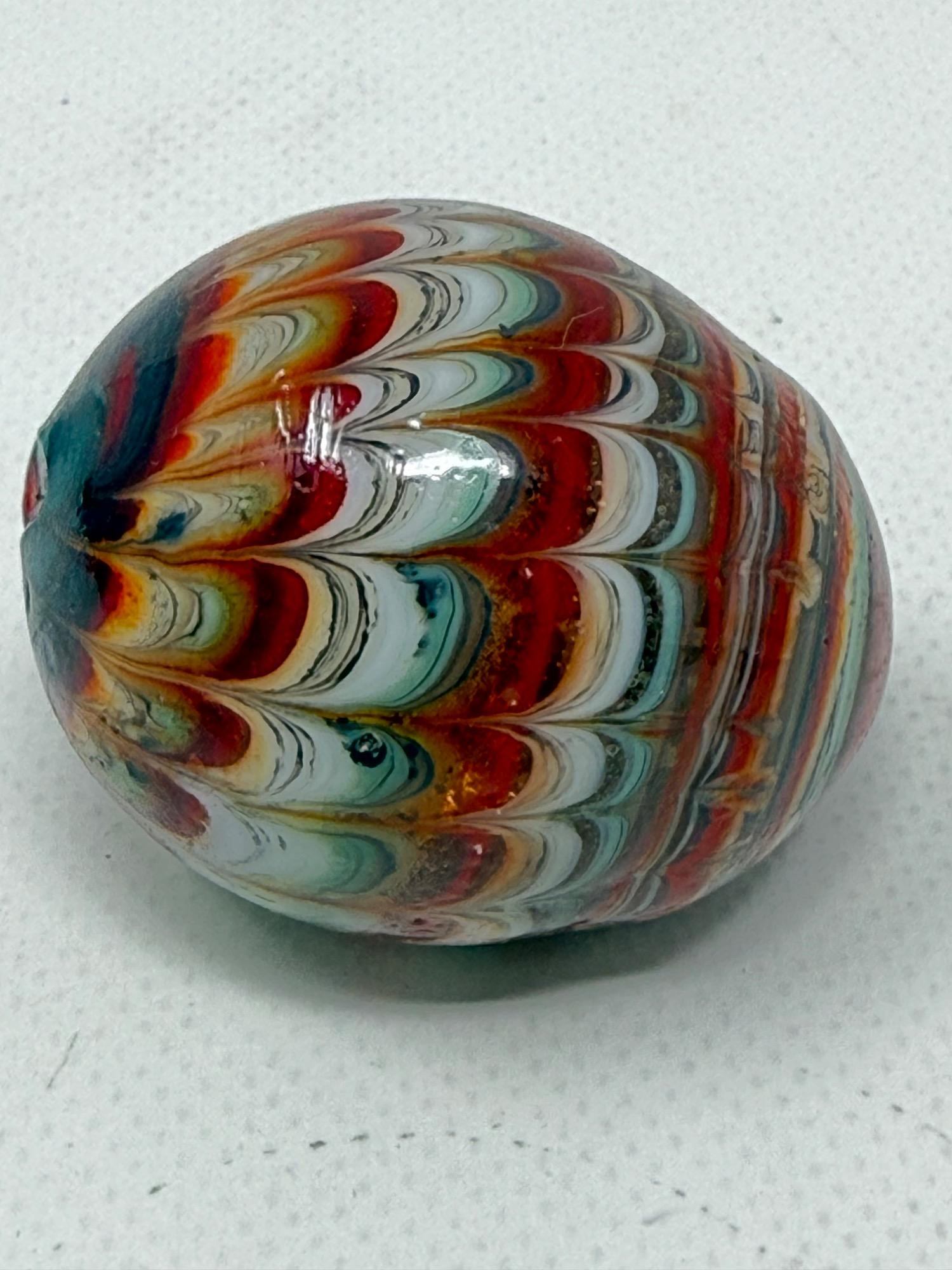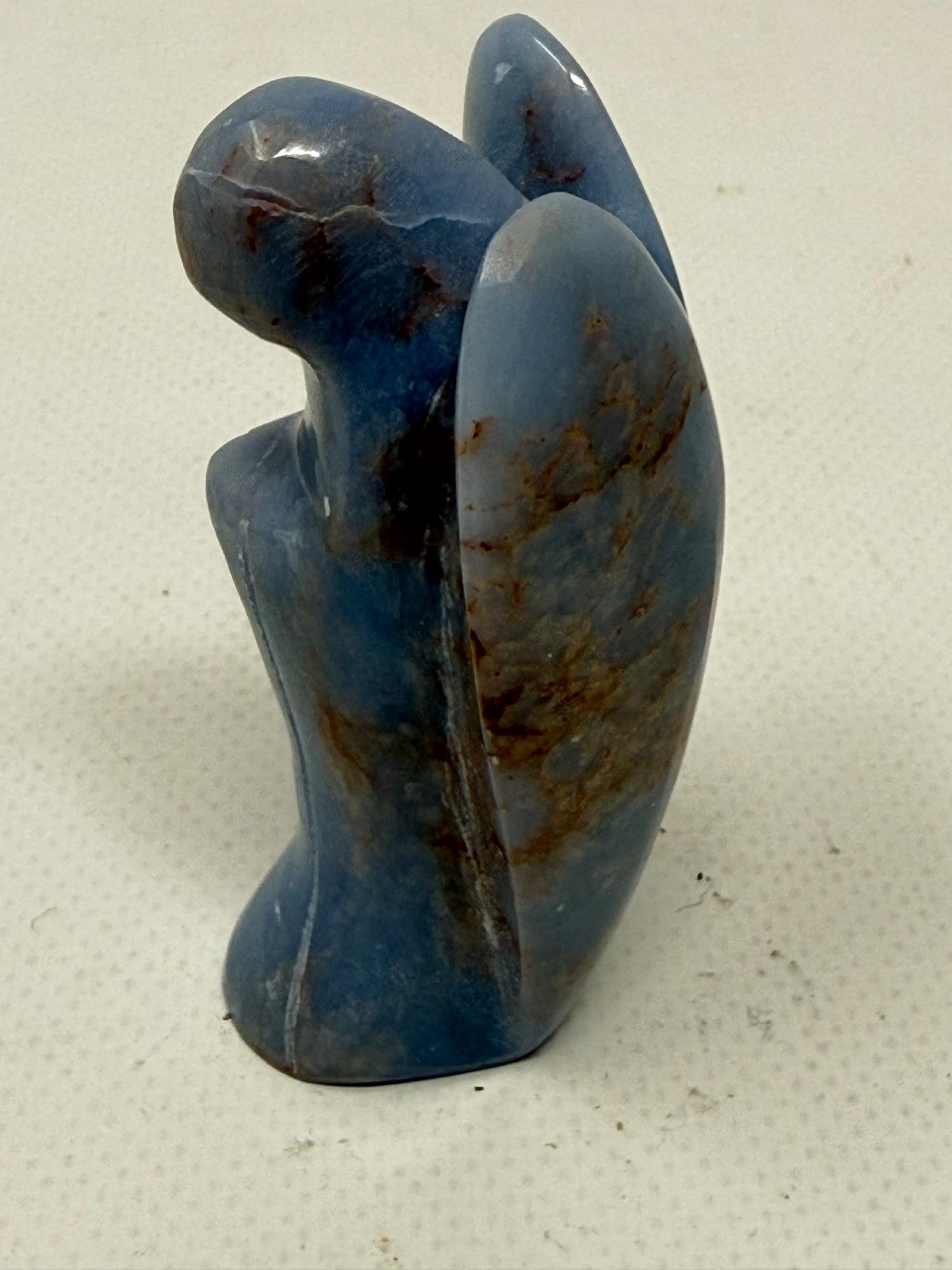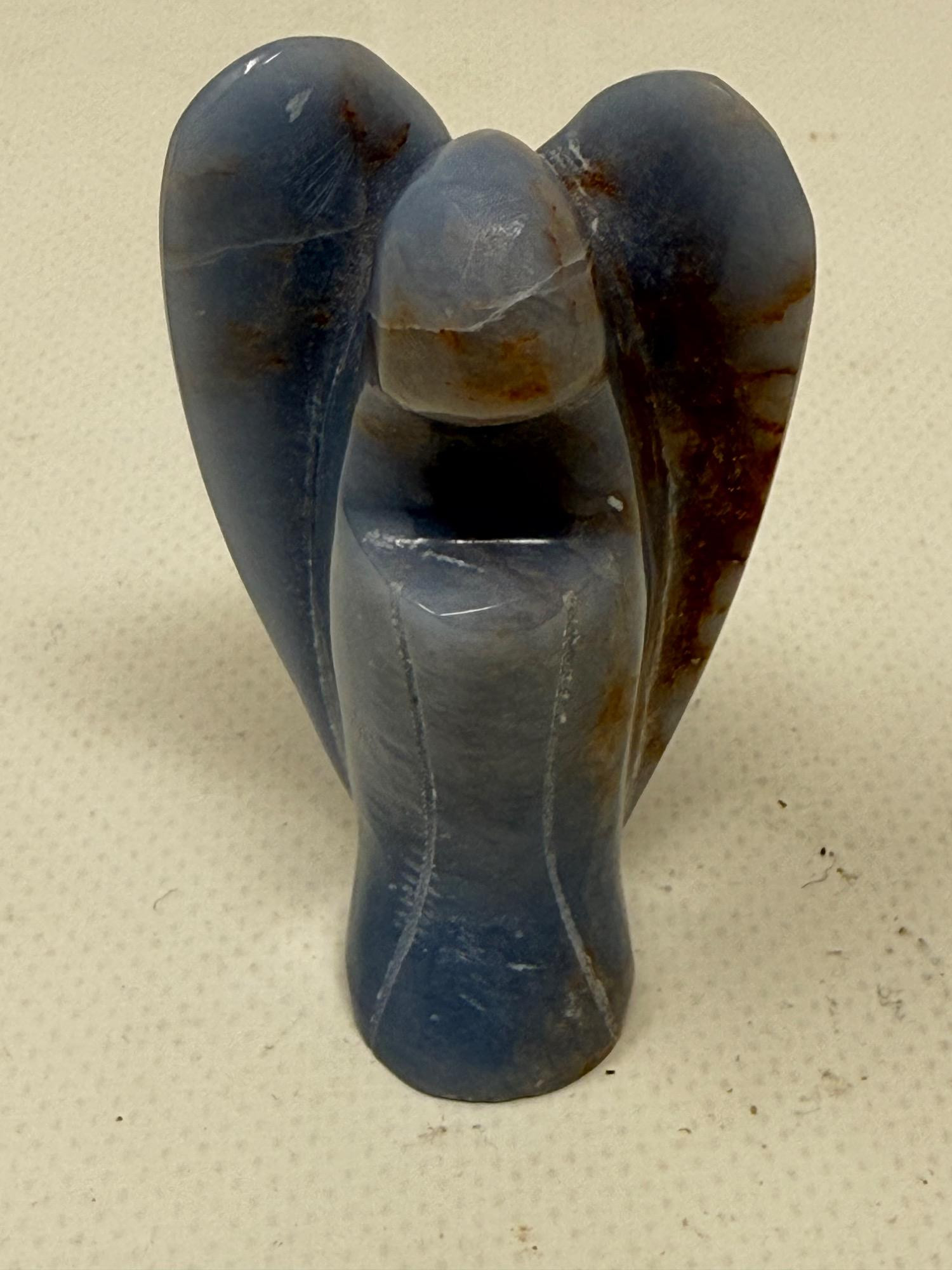 This beautiful collection includes four unique stone eggs and one hand-carved angel figure, perfect for collectors, spiritual spaces, or natural home décor. Included in the set: Brindle Jasper Egg (labeled, from Mexico) Earthy tones with intricate natural patterns Original marked value: $25.00 Ruby in Fuchsite Egg Vivid green with deep purple ruby inclusions Striking natural crystal contrast Polished Blue Stone Egg Smooth, serene appearance Possibly blue quartz or blue calcite Swirled Glass Egg Vibrant hand-blown art glass with a multicolor feathered swirl pattern Average eggs height: approx. 2.75” Blue Stone Angel Figurine (Made in Peru) Smoothly carved angel with subtle brown mineral veining Dimensions: approx. 2.75" tall x 1.75" wide Labeled price: $36.00