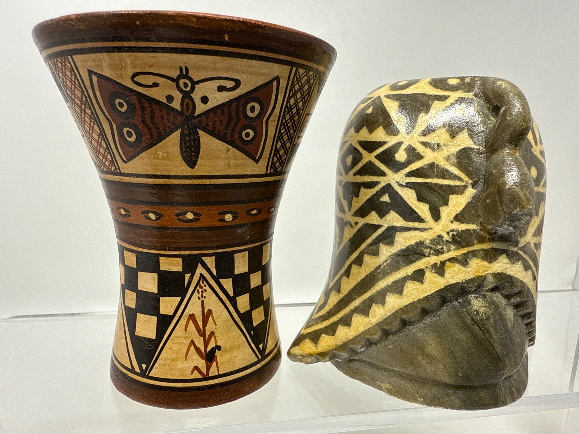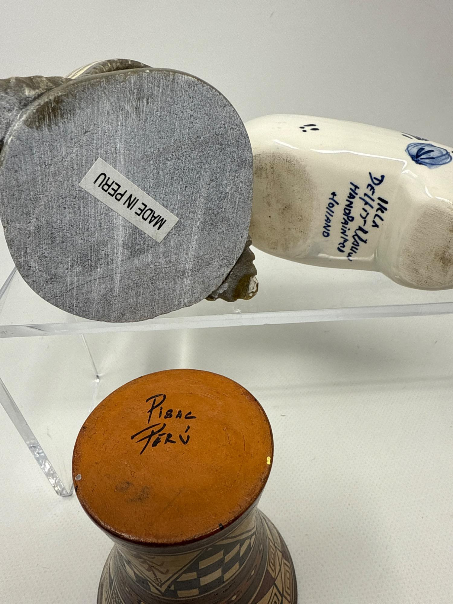 • Hand-painted clay vase (signed “Pisac, Peru”)