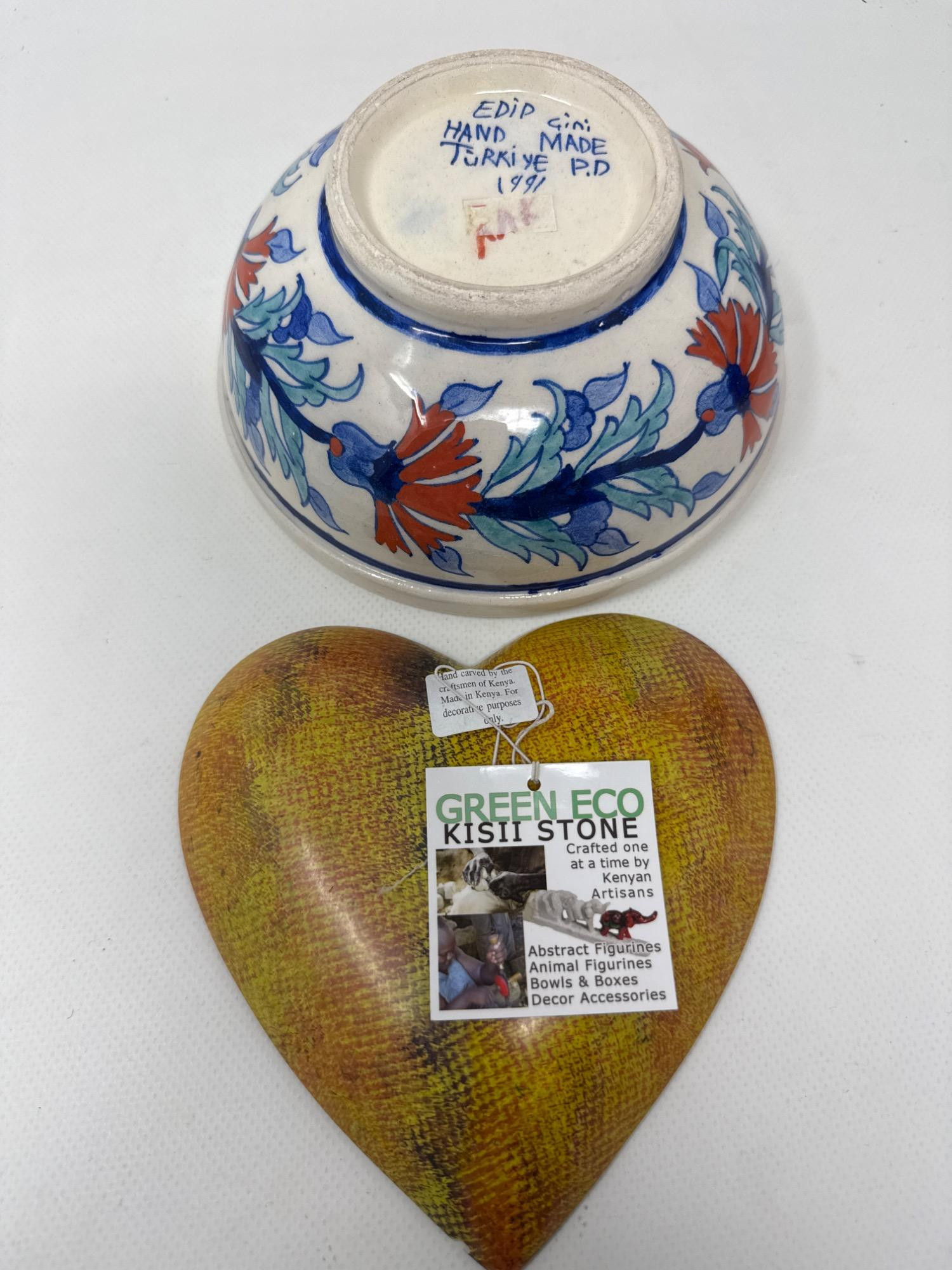 • Painted heart-shaped Kisii stone dish (with “Green Eco” tag – made by Kenyan artisans)