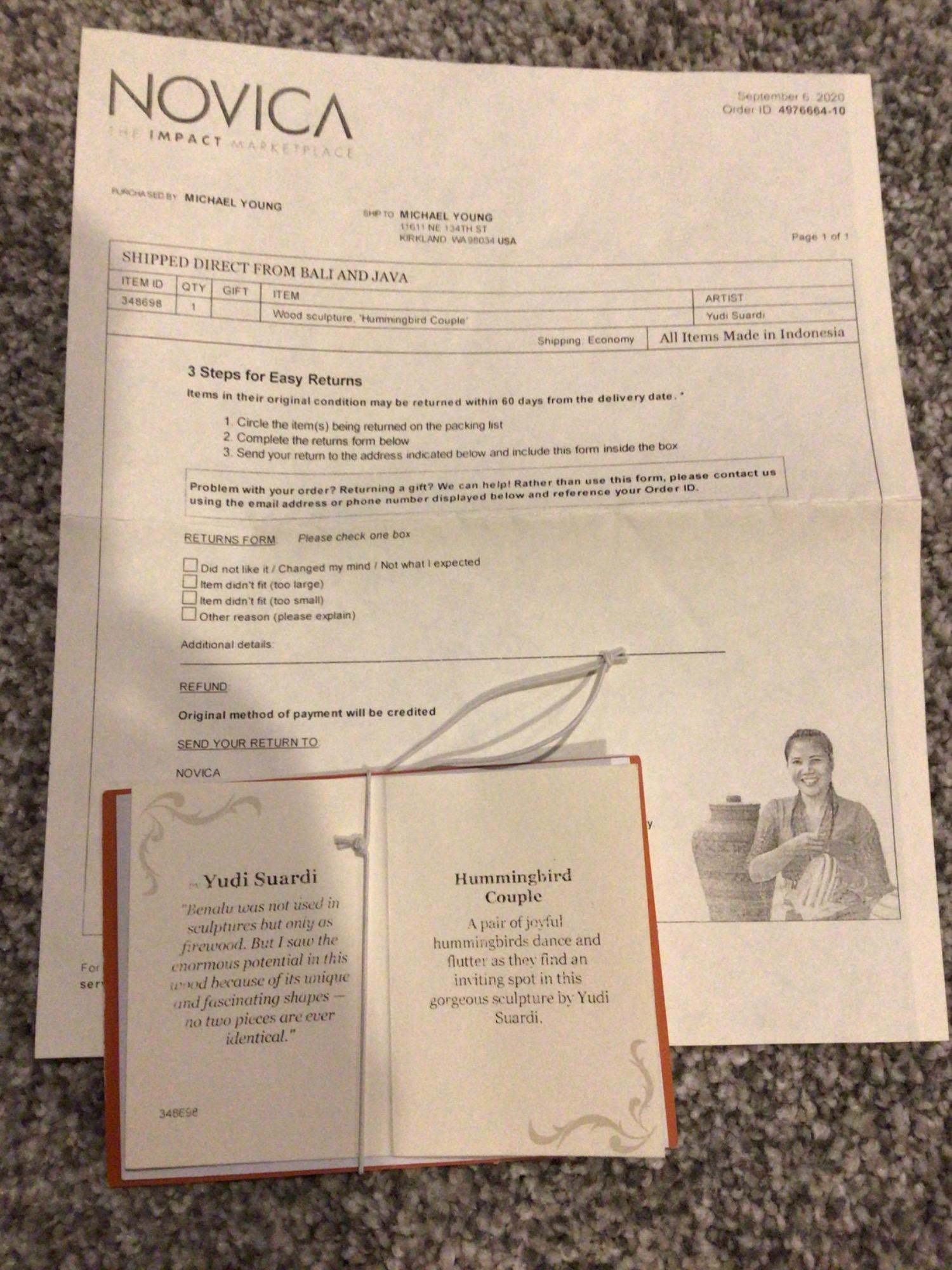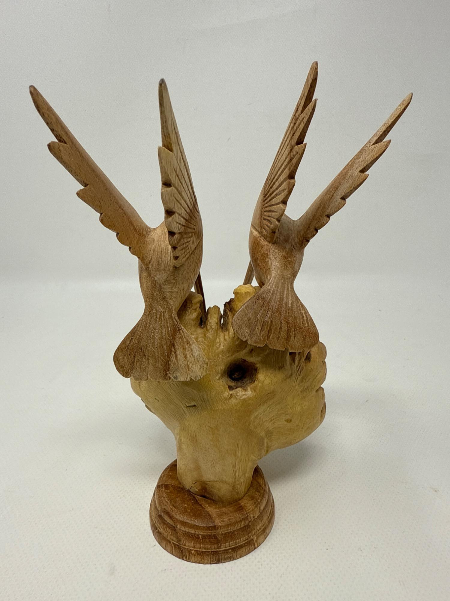 • “Hummingbird Couple” wood sculpture by Yudi Suardi (includes NOVICA tag and certificate)