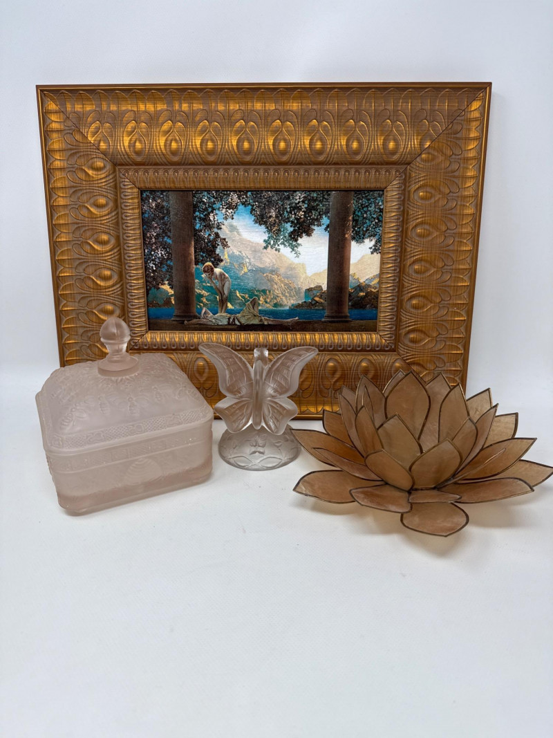 Lot # 152 - Maxfield Parrish Framed Art, Fenton Butterfly, Tiara Box, Lotus Bowl