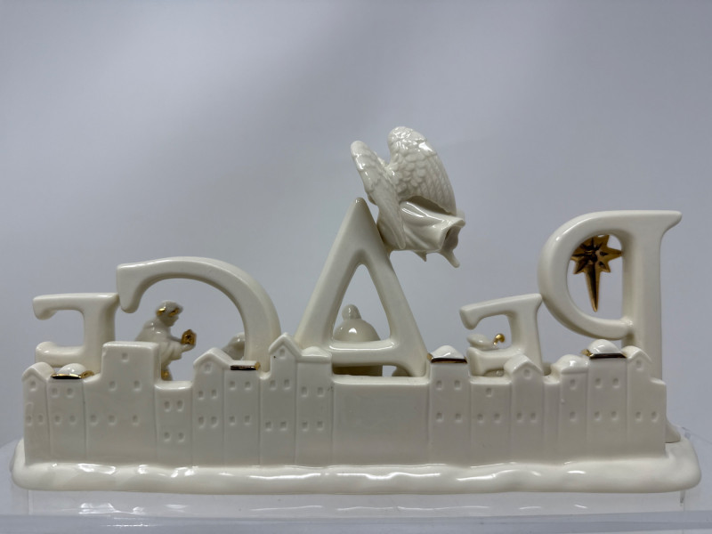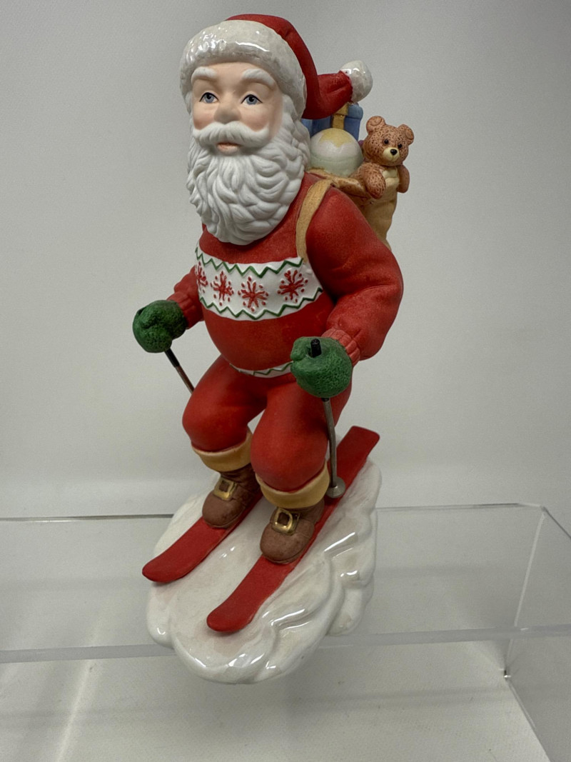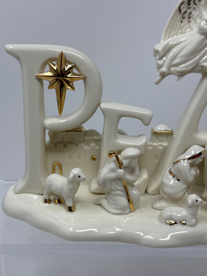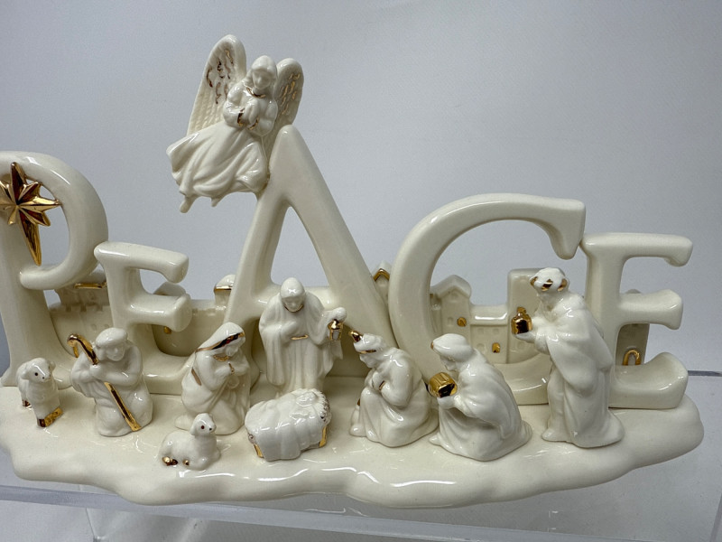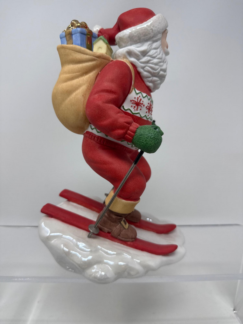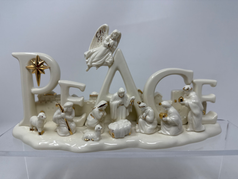 Celebrate the season with this delightful trio of collectible holiday décor: Lenox "Santa's Downhill Dash" Figurine (8.”5) – A limited-edition sculpture depicting Santa skiing downhill with gifts in tow. Hand-painted and accented with gold. Comes with certificate of authenticity. Lenox "Nativity Peace Figurine" (10" L x 5.5" T) – A beautiful ivory and gold-accented nativity scene integrated into the word “PEACE.” Handcrafted and elegant, also includes certificate of authenticity. Fitz and Floyd Essentials Holiday Cat Plate (9" dia) – A charming, colorful plate featuring a playful kitten nestled in festive ornaments and holly. Handcrafted and richly glazed.
