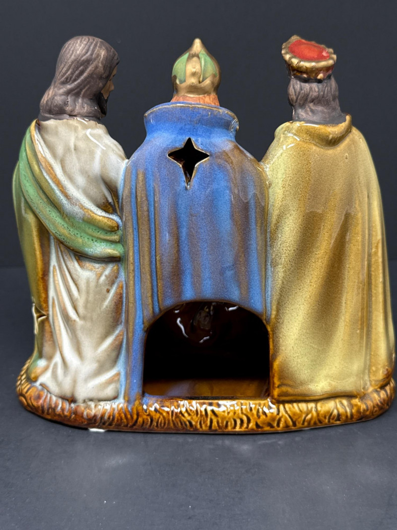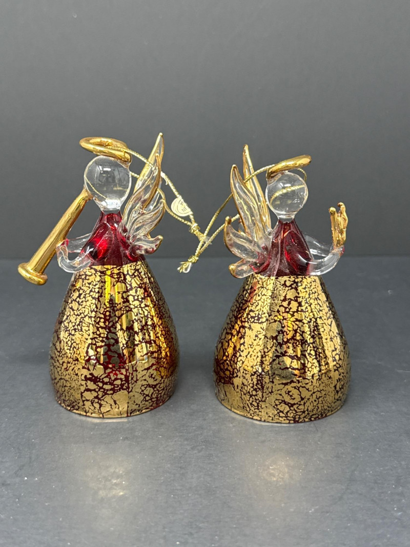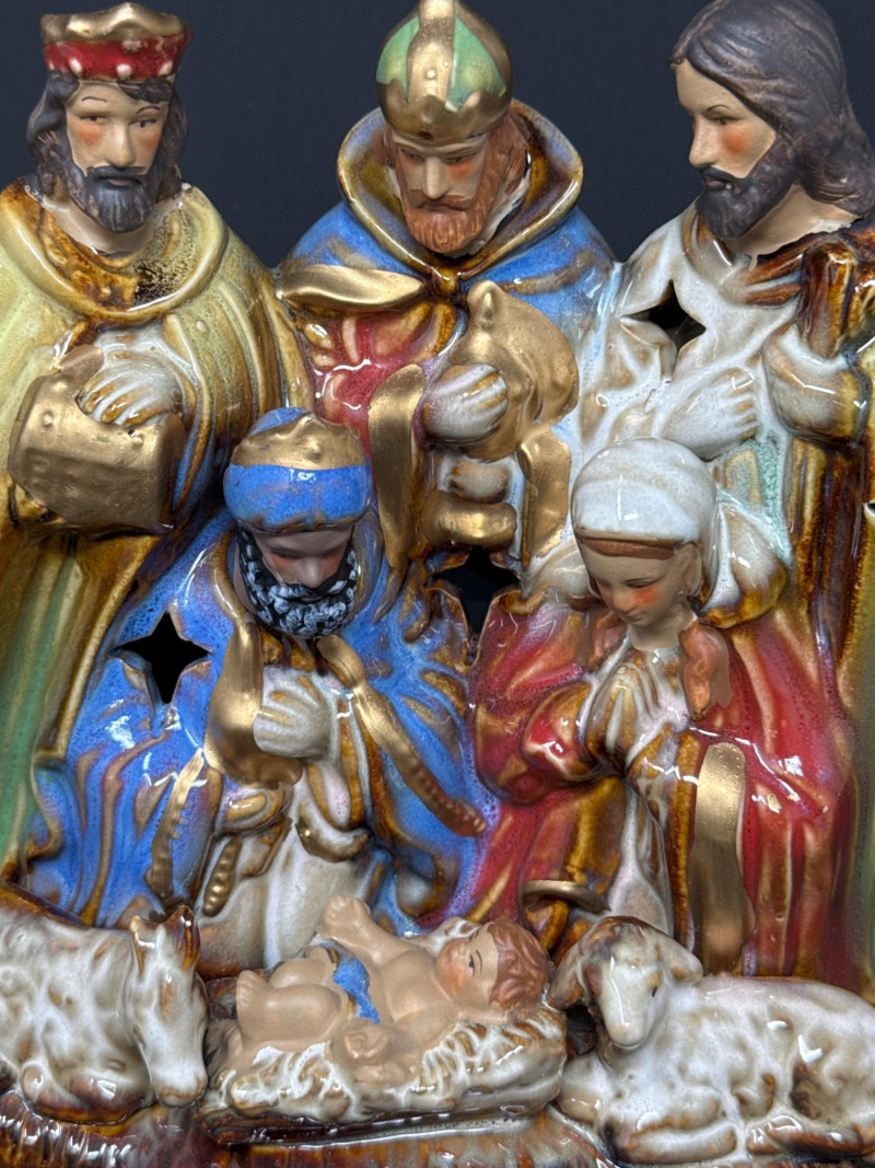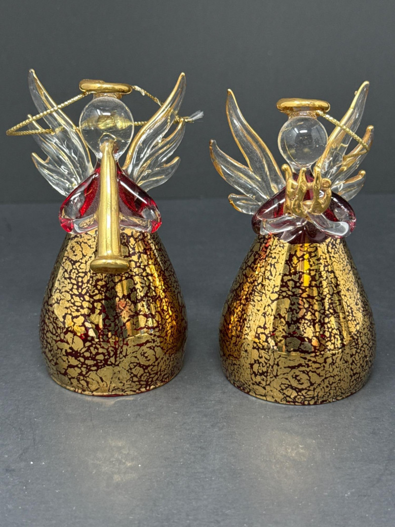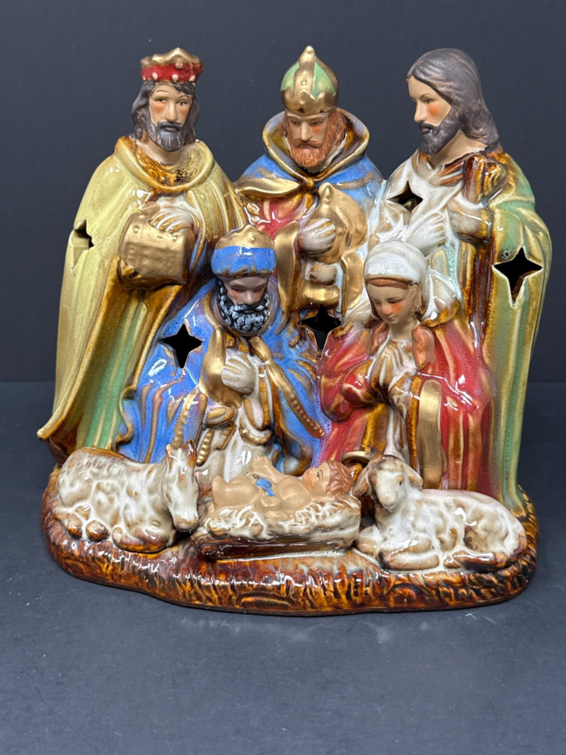 This beautiful collection of Christian religious decor includes a variety of meaningful and artful pieces: Etched Glass “Last Supper” Sculpture (Christian Brands): A radiant etched glass depiction of Leonardo da Vinci’s "The Last Supper," with stunning detail and light-catching facets. Approx. 6.25”L x 4.2”T x 2.75”W. Hand-Painted Nativity Scene: A vibrant and detailed ceramic nativity figurine with the Holy Family and Three Wise Men. Framed Madonna and Child Print by Martin Aborn: A richly colored religious print in an ornate gold and black floral frame. Frame measures approx. 8.5” x 11”. Pair of Glass Angel Figurines: Beautiful deep red and gold crackle-glass angels holding a trumpet and harp. Intricately detailed with gold wings and halos.