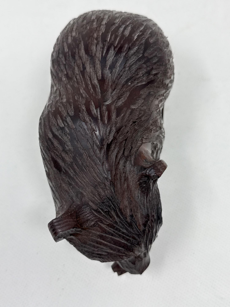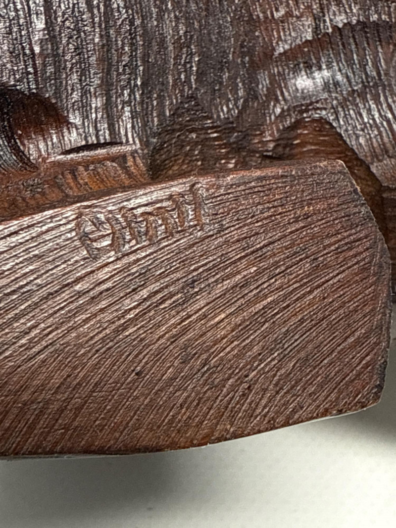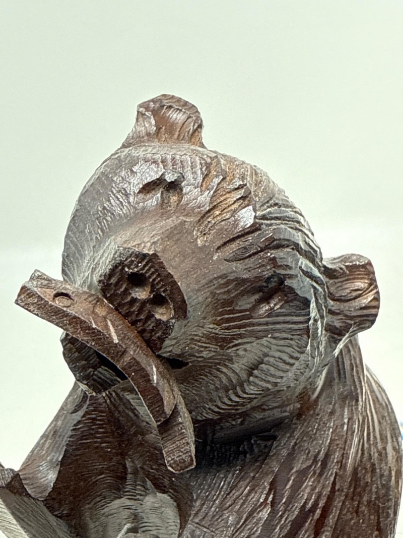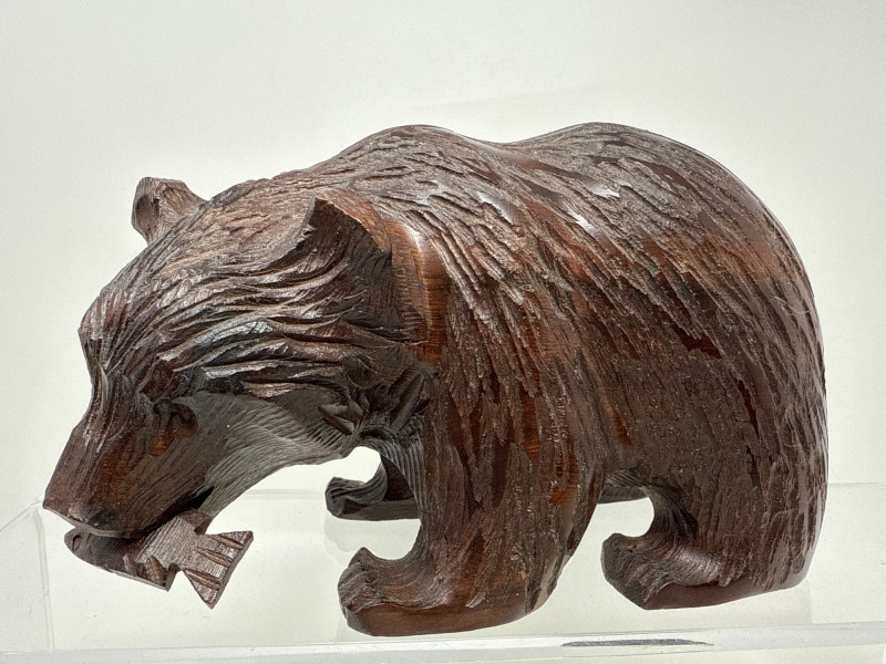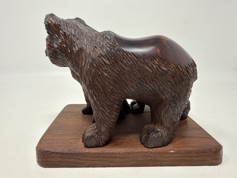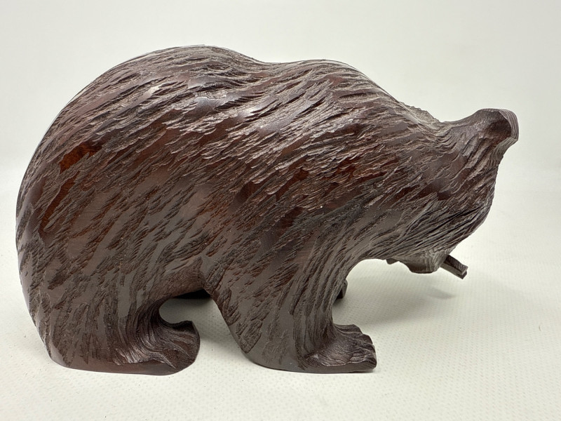This beautifully handcrafted two-piece bear sculpture collection showcases the artistry and charm of traditional woodcarving. Both pieces are meticulously carved from richly grained hardwood with a smooth finish and fine detail. Set includes: "Hungry Bear" Bear Family Trio – Signed Features: Hand-carved from solid wood with intricate fur detailing Warm, dark wood tones with smooth and textured finishes One piece signed by the artist