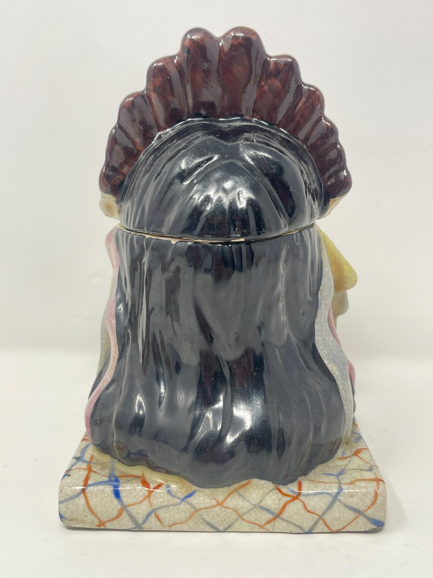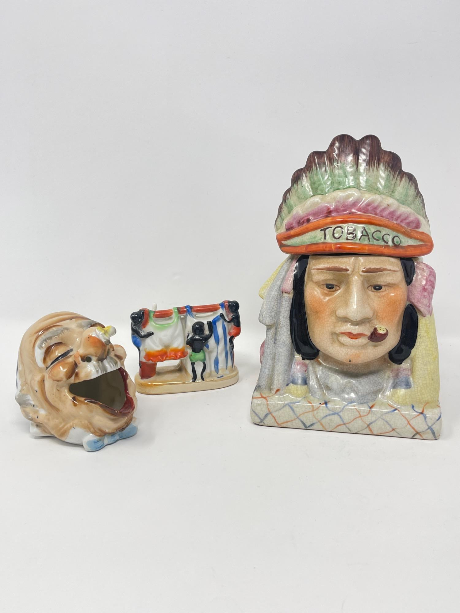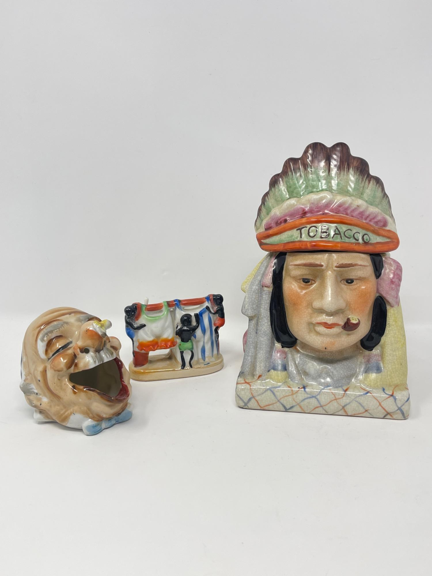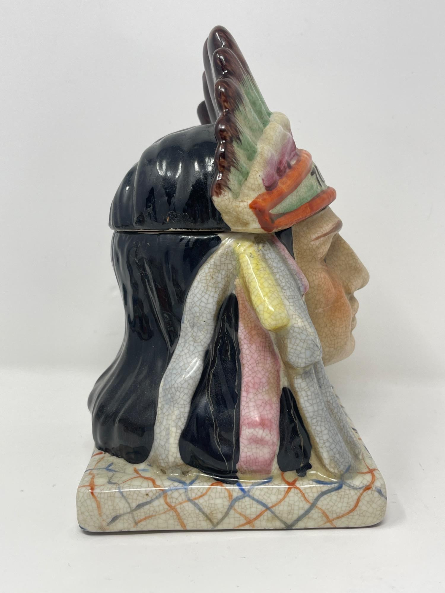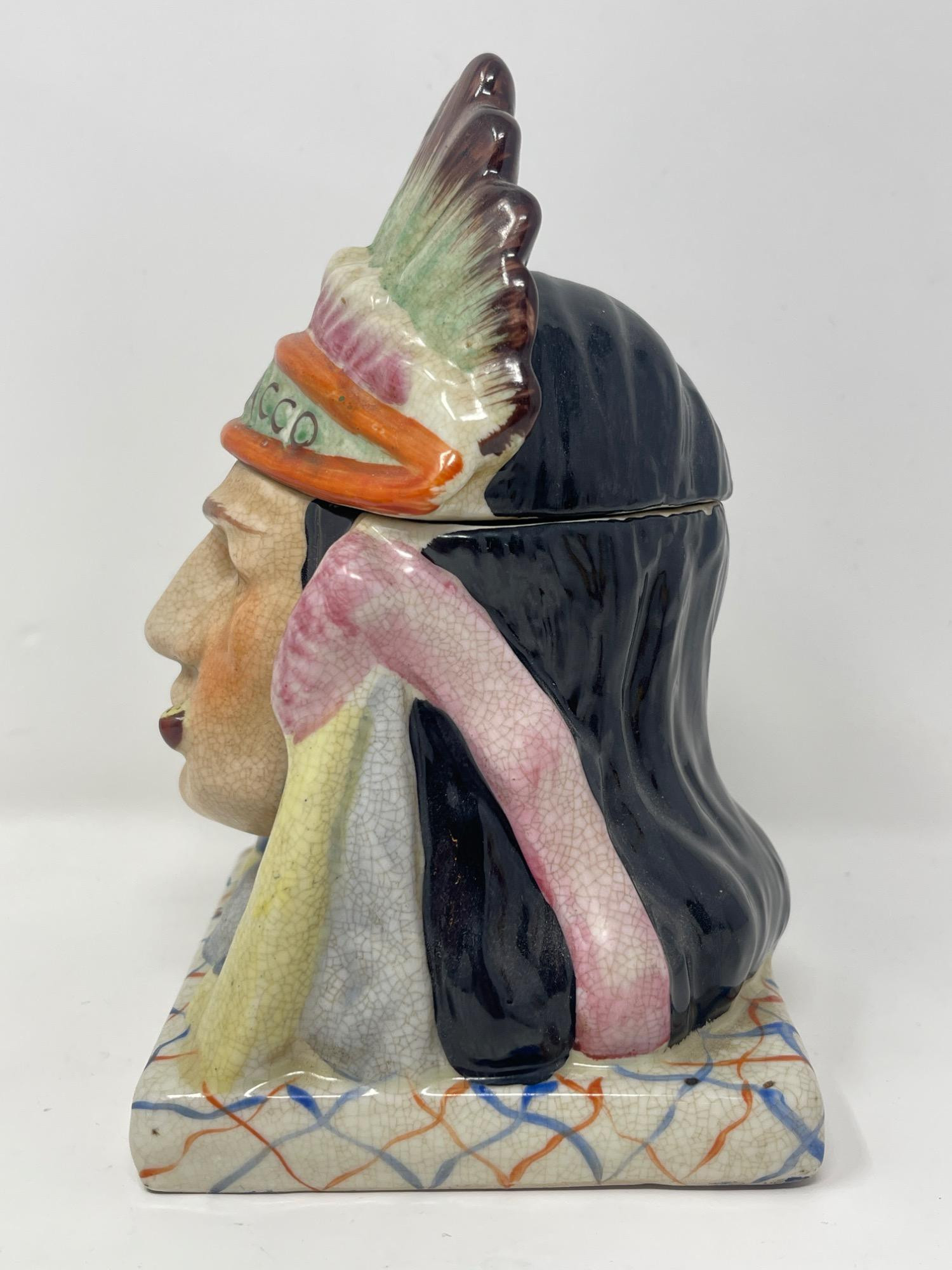 Lot # 15 - Vintage Majolica Indian Chief Tobacco Jar w/ Match & Toothpick Holder