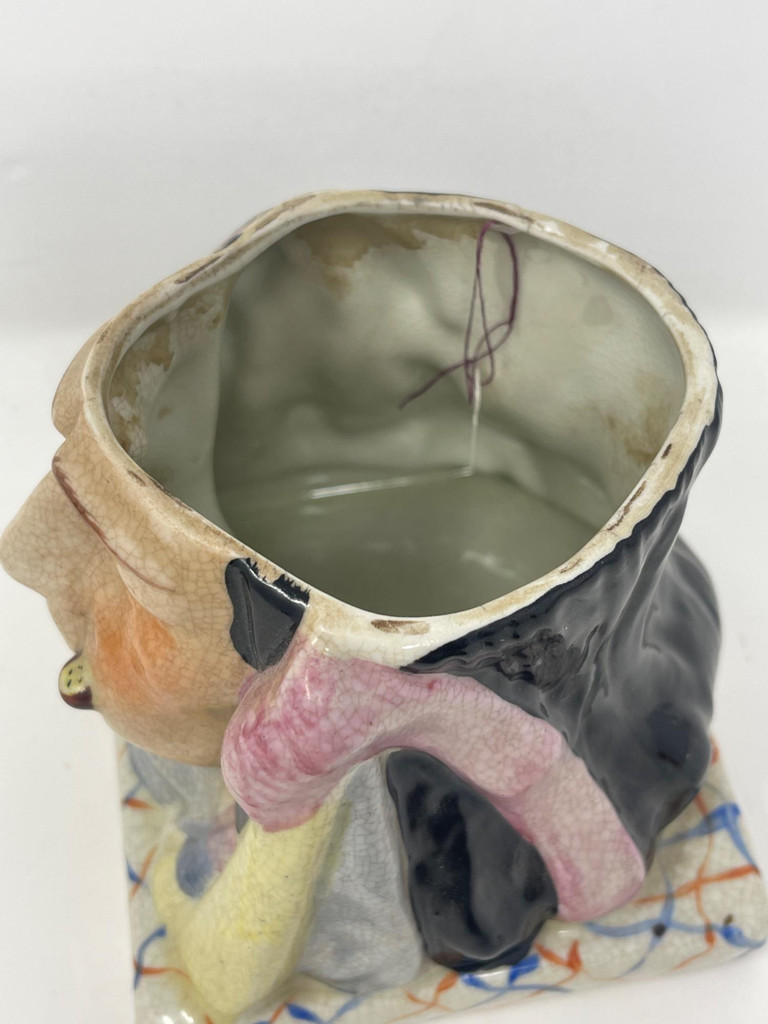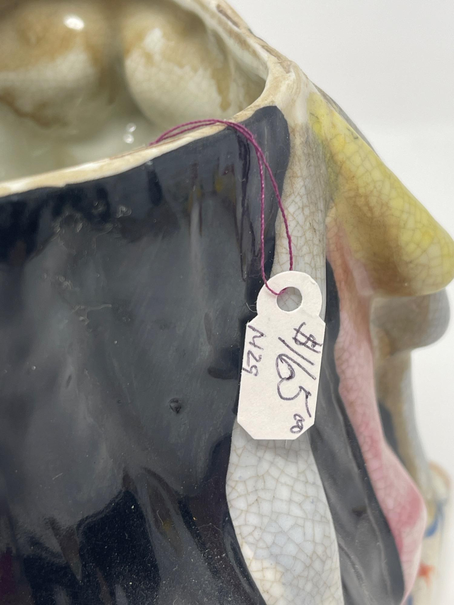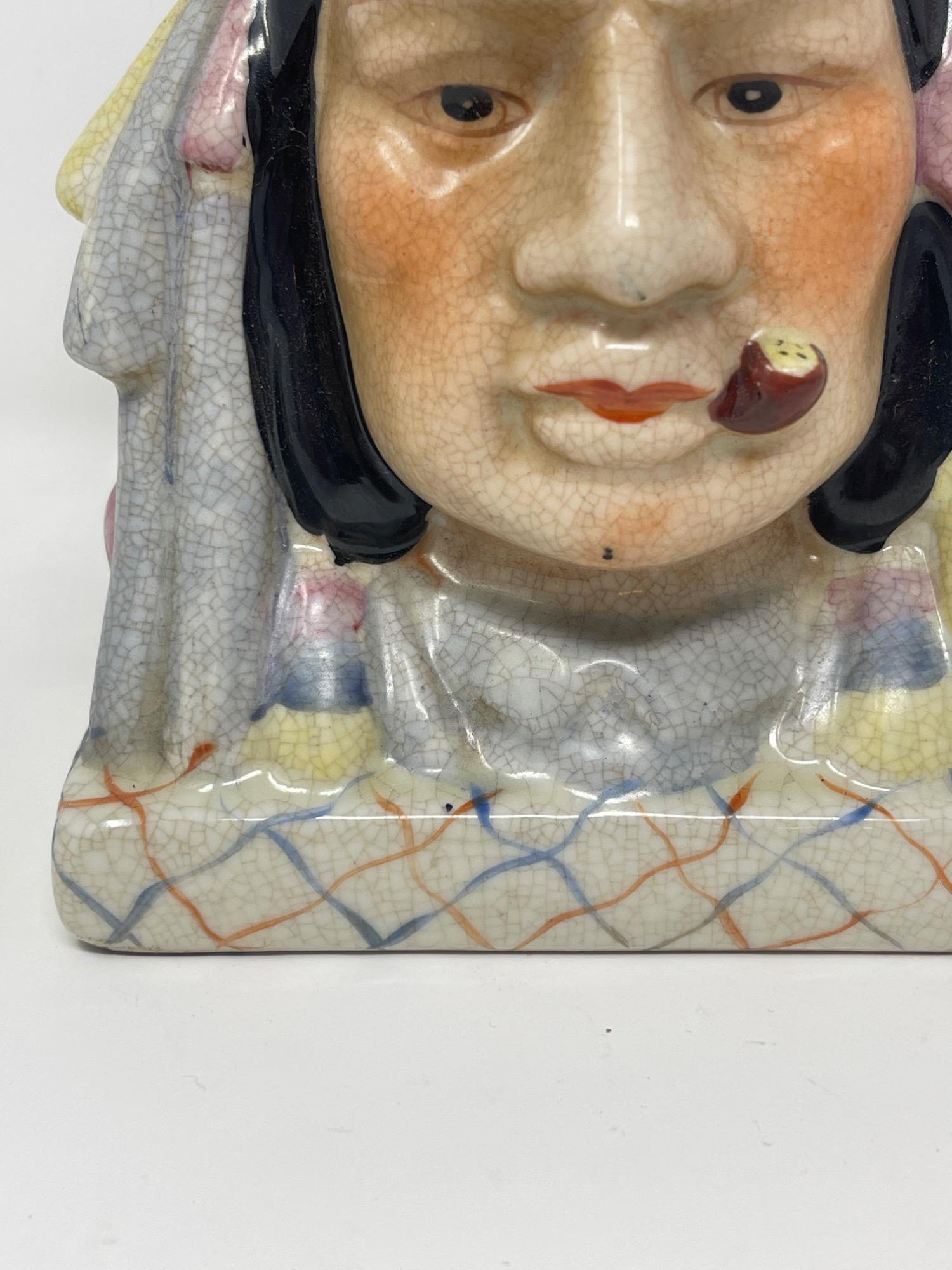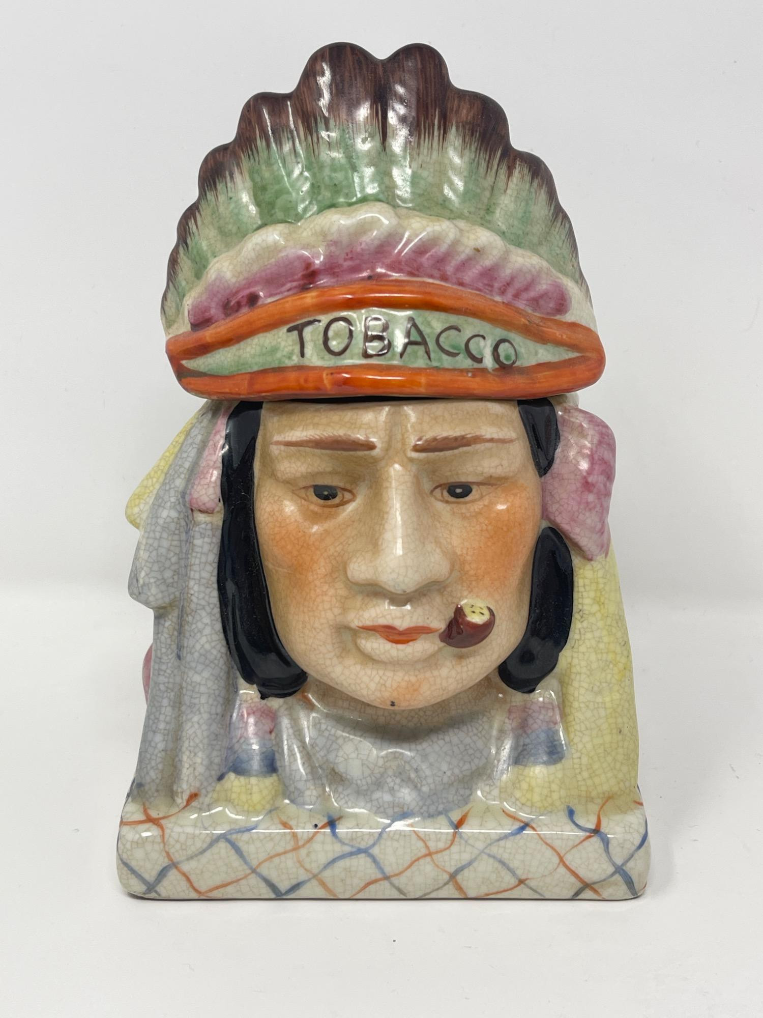 Lot # 15 - Vintage Majolica Indian Chief Tobacco Jar w/ Match & Toothpick Holder
