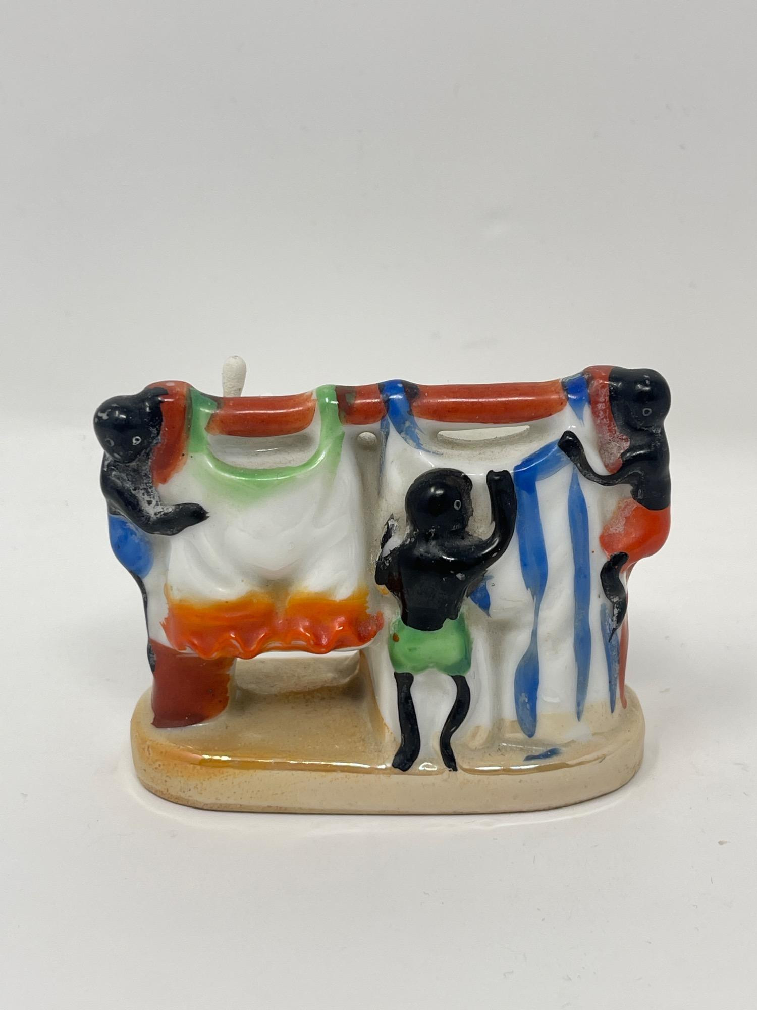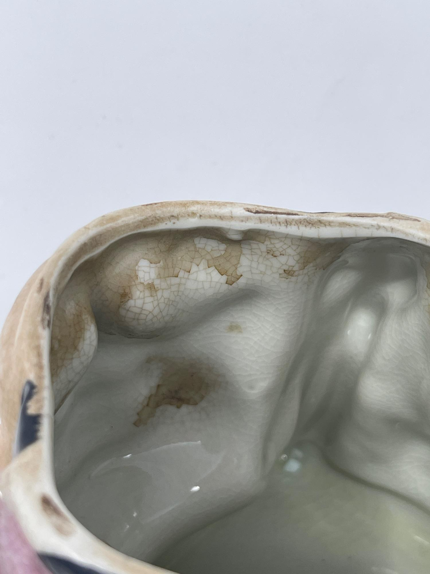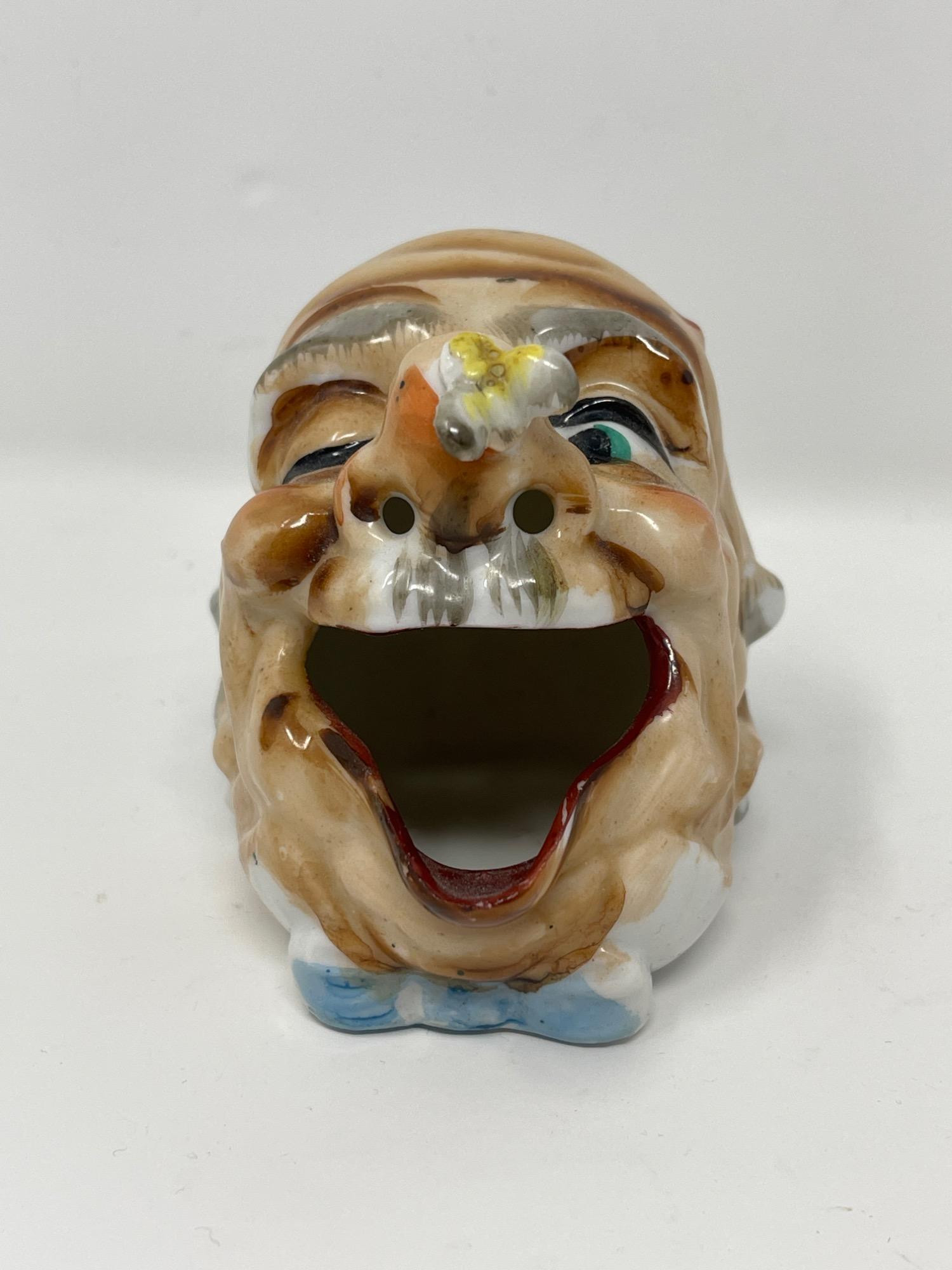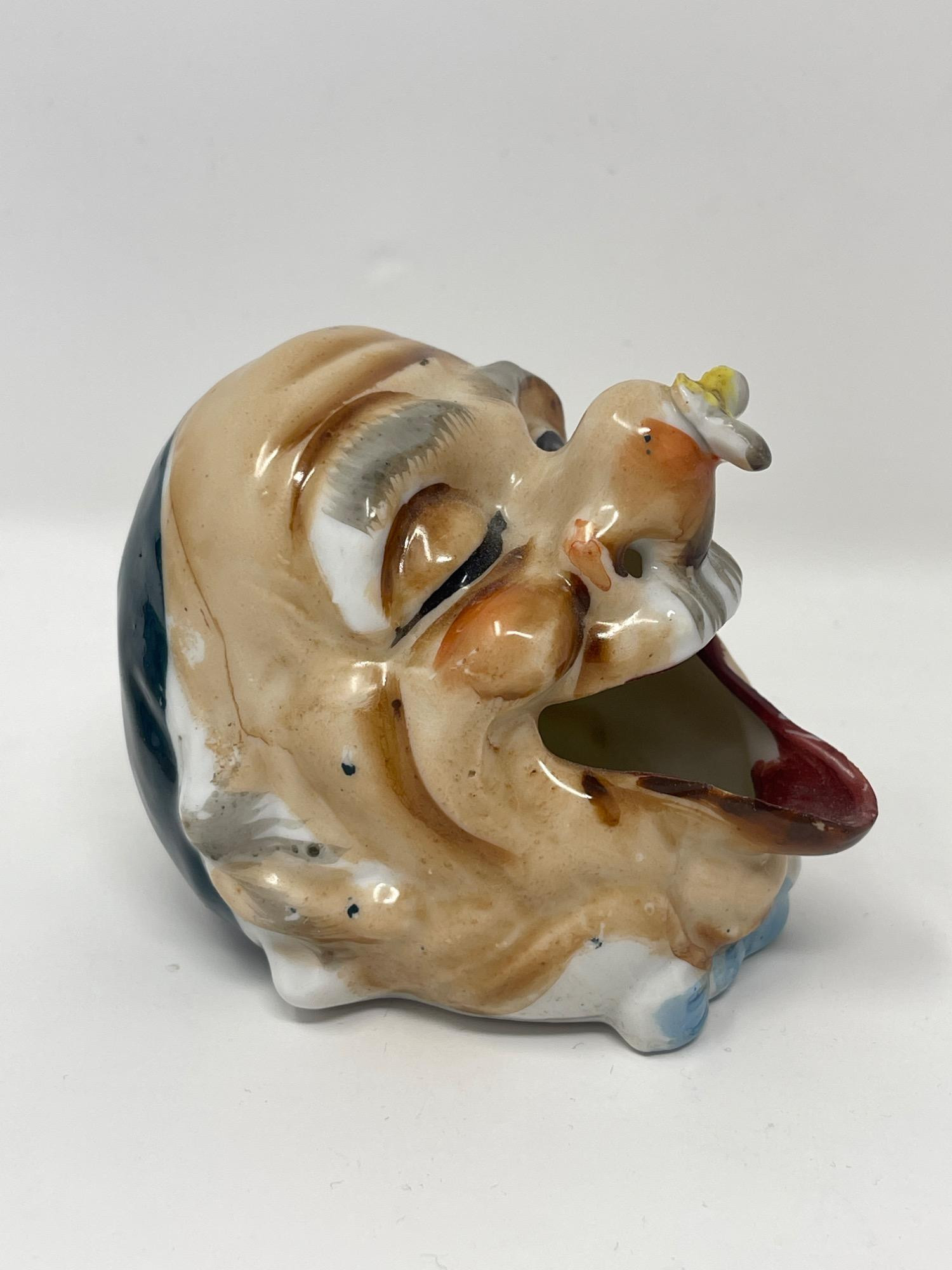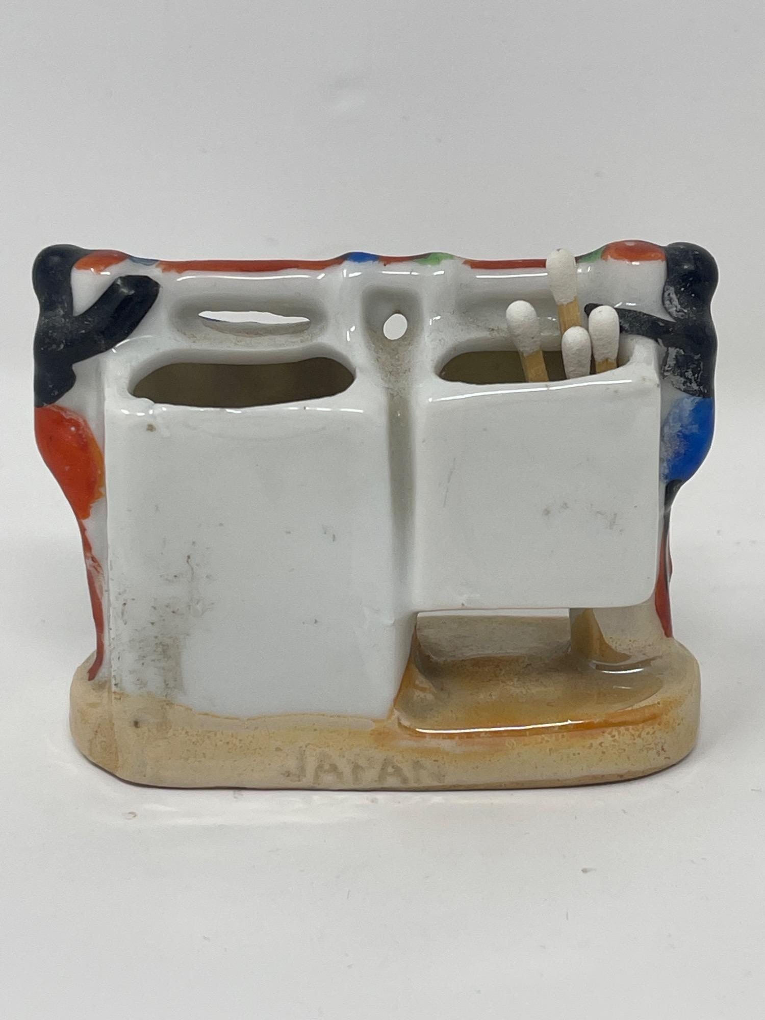 Lot # 15 - Vintage Majolica Indian Chief Tobacco Jar w/ Match & Toothpick Holder