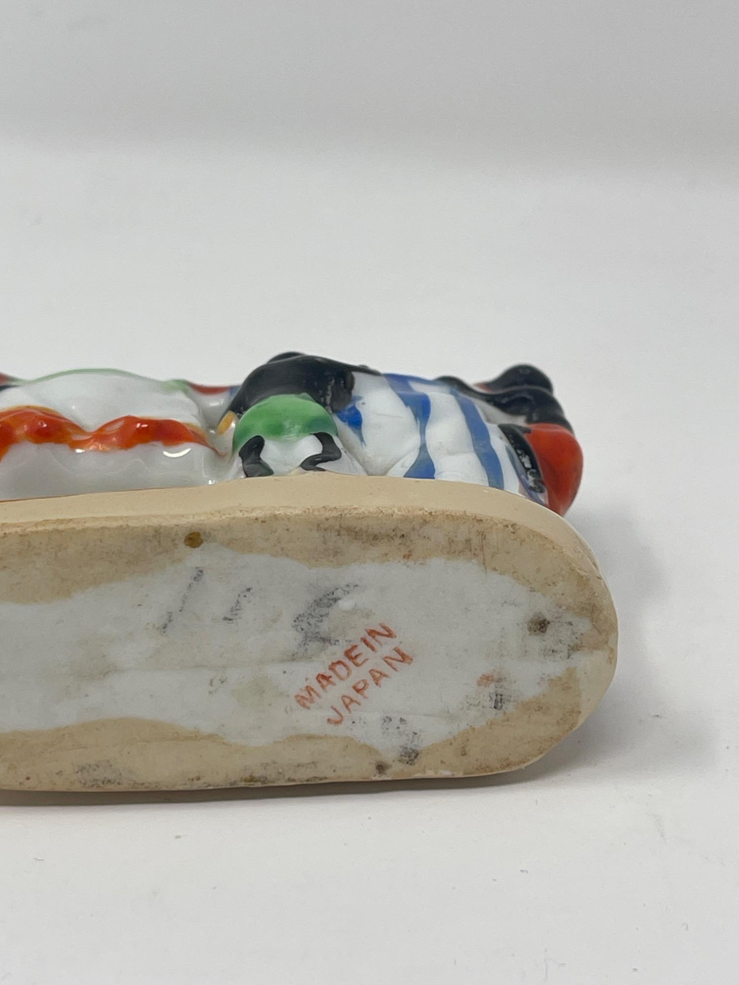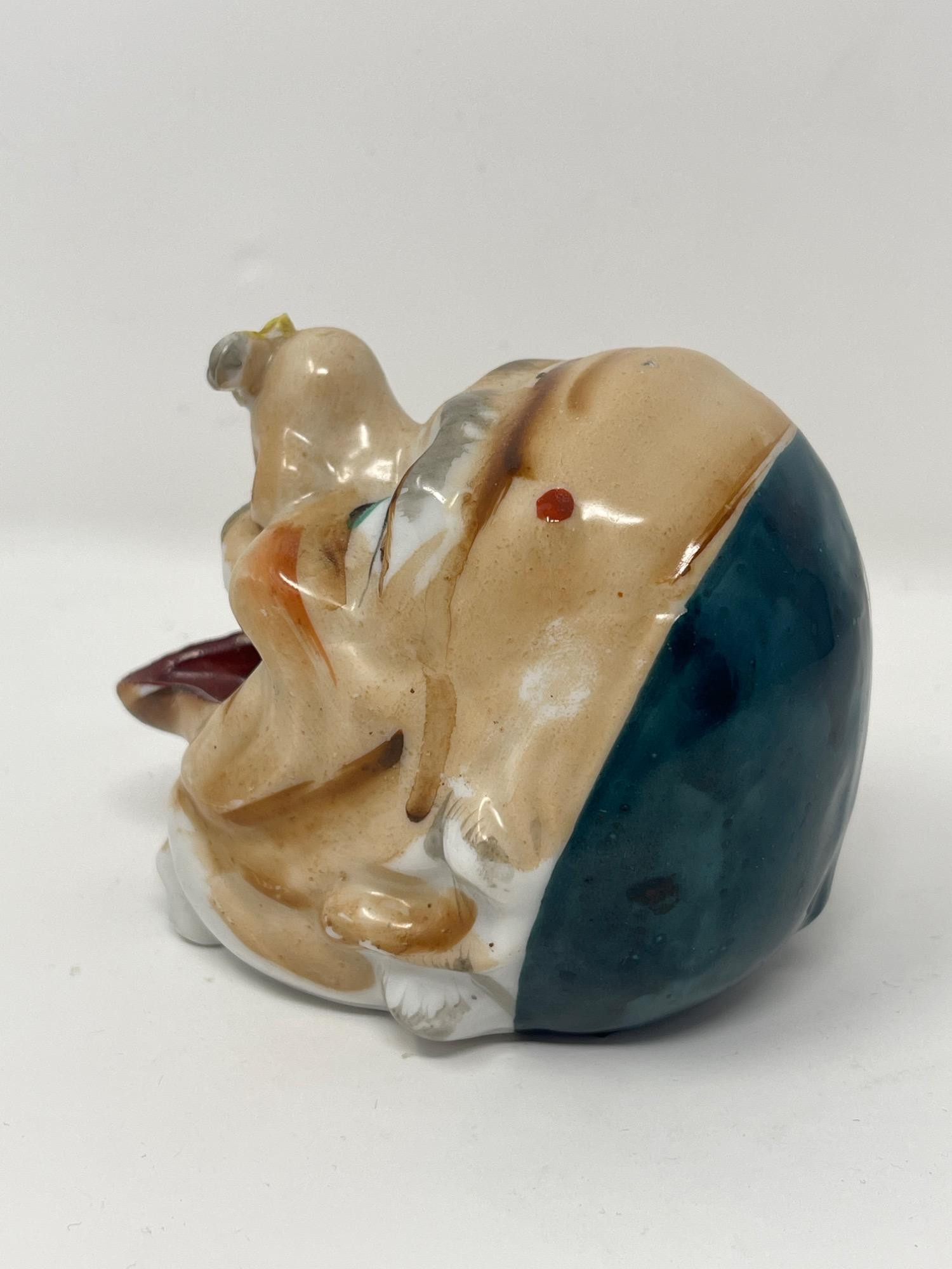 Vintage Majolica Indian Chief Tobacco Jar w/ Match & Toothpick Holder 2.5-7” H Discover the charm and functionality of this vintage Majolica set, featuring an Indian Chief tobacco jar accompanied by matching match and toothpick holders. Each piece is meticulously crafted with vibrant glazes typical of Majolica pottery, highlighting intricate details and rich colors. The Indian Chief jar stands out with its expressive features and traditional attire, making it not just a functional item but a striking decorative piece. This set is perfect for collectors of vintage ceramics or those who appreciate the artistry of Majolica ware.