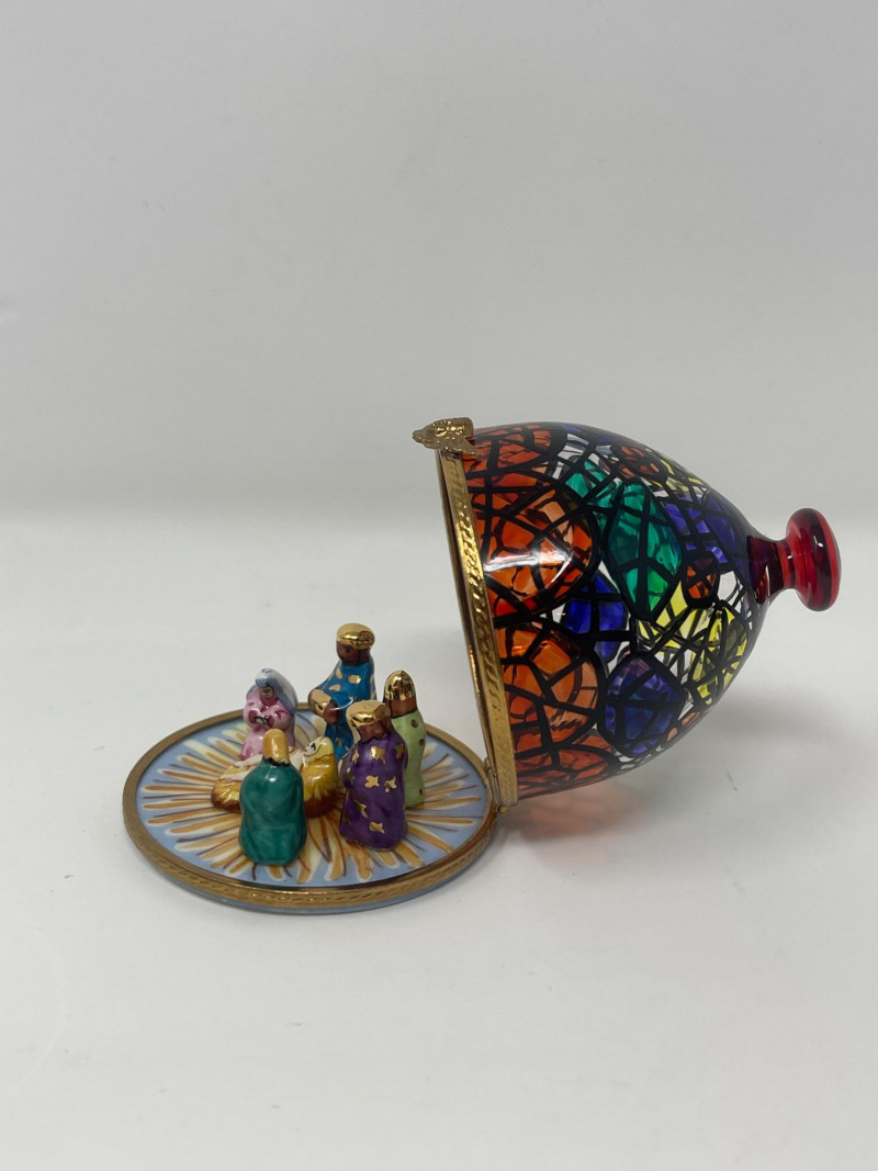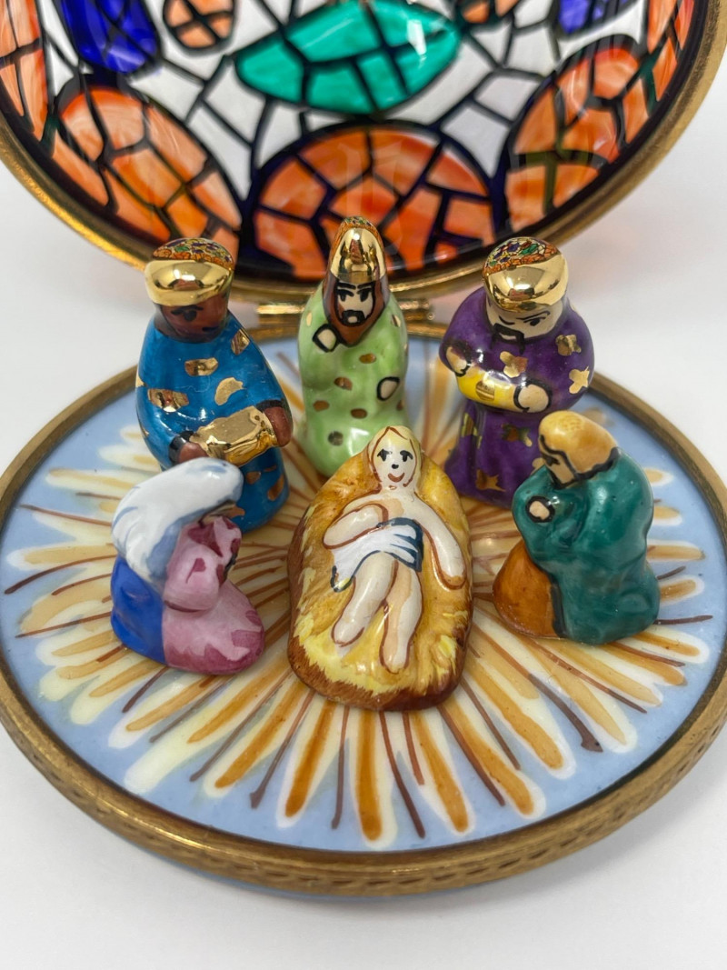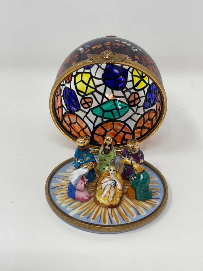 Lot # 16 - Limoges France Box - Stained Glass Style Dome w/ Nativity Scene