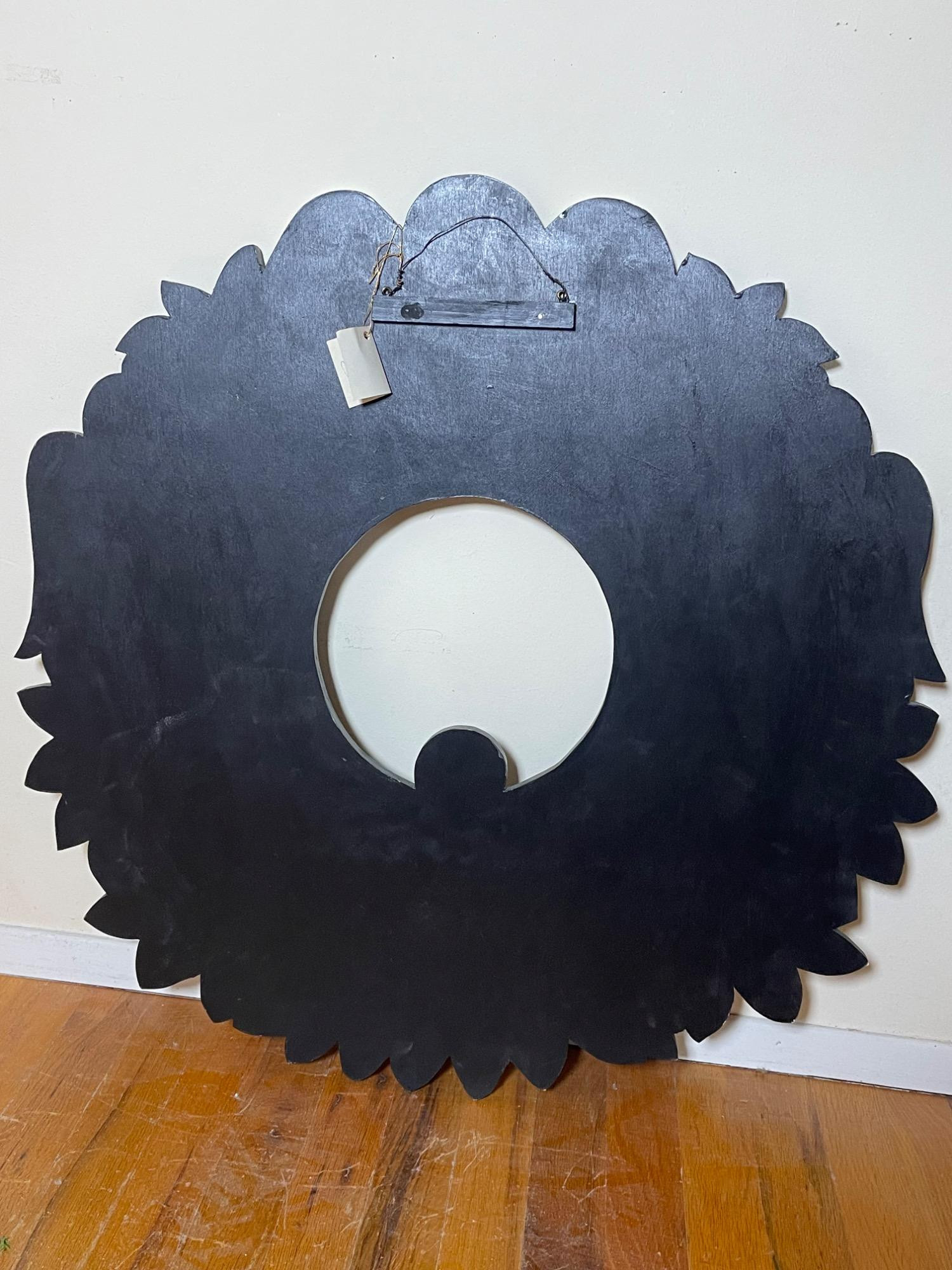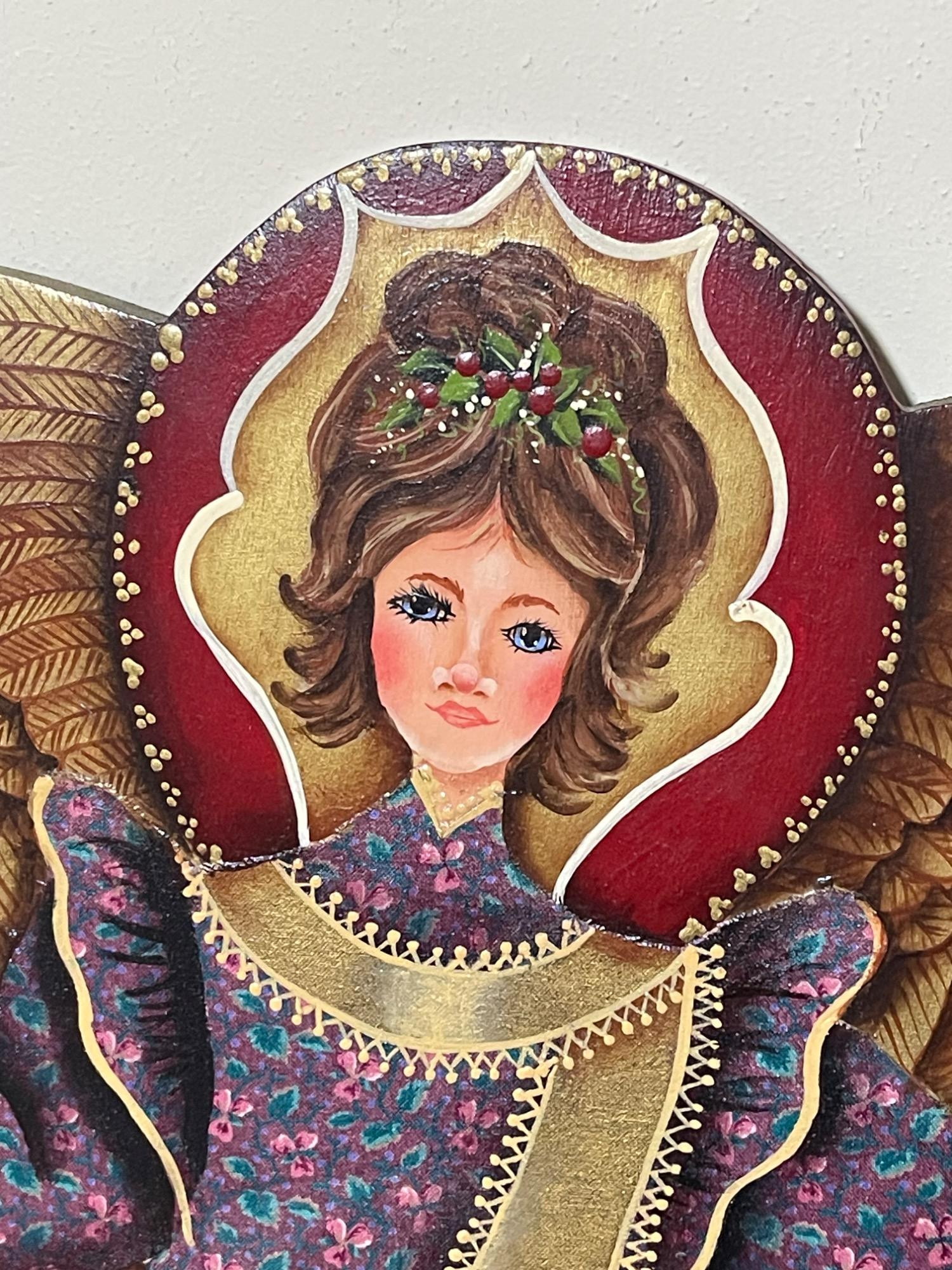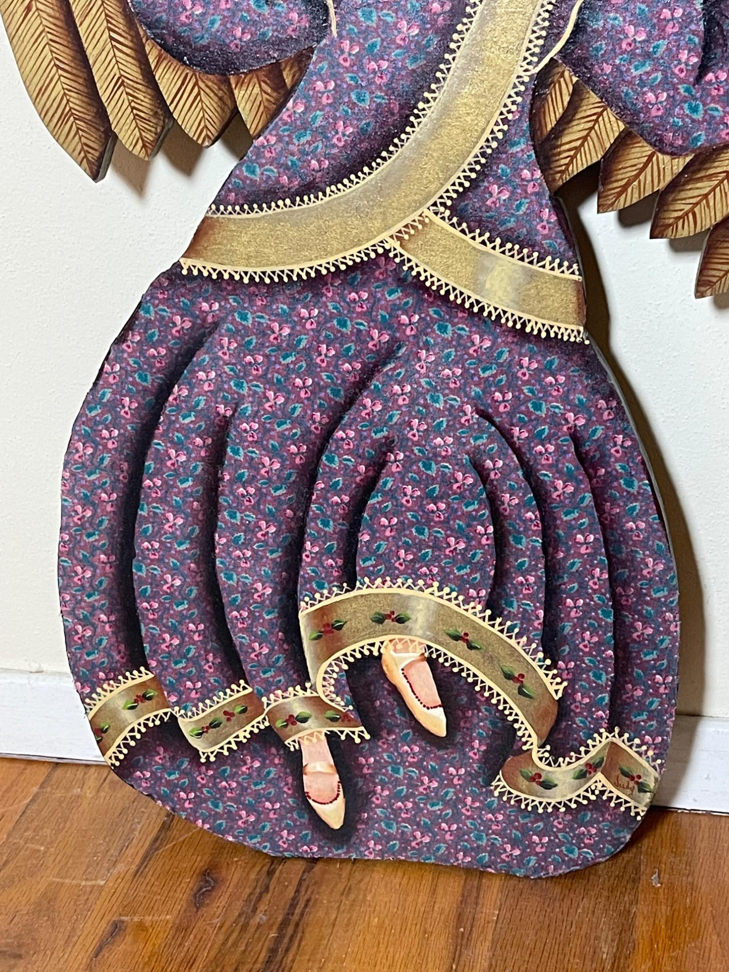 Judy Ouchida Nativity Wreath w/ Angel Paisley Design - Exquisite Decor Nativity Wreath - 28” W Angel - 15” W x 20” H Enhance your holiday decor with this breathtaking Nativity wreath, beautifully handcrafted by Judy Ouchida. This unique piece combines the spiritual grace of the Nativity scene with the intricate paisley patterns on angelic figures, creating a vibrant and inspiring display. Featuring a central depiction of the Holy Family surrounded by angels adorned in detailed, colorful paisley designs, this wreath is ideal for the Christmas season or as a focal point in religious art collections year-round, testament to skilled artistry and a celebration of faith.