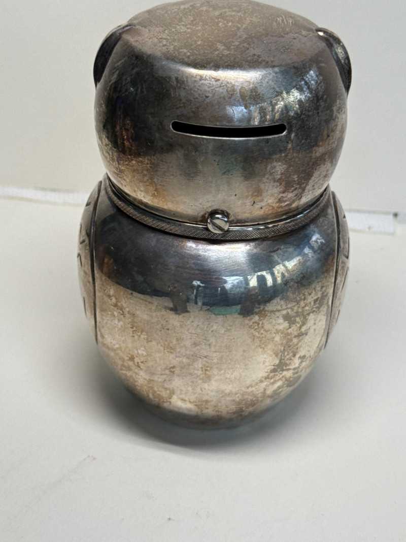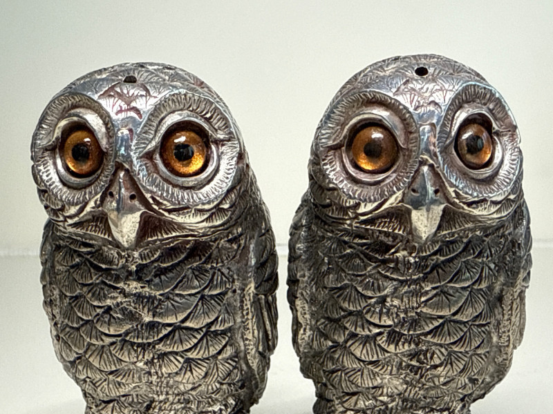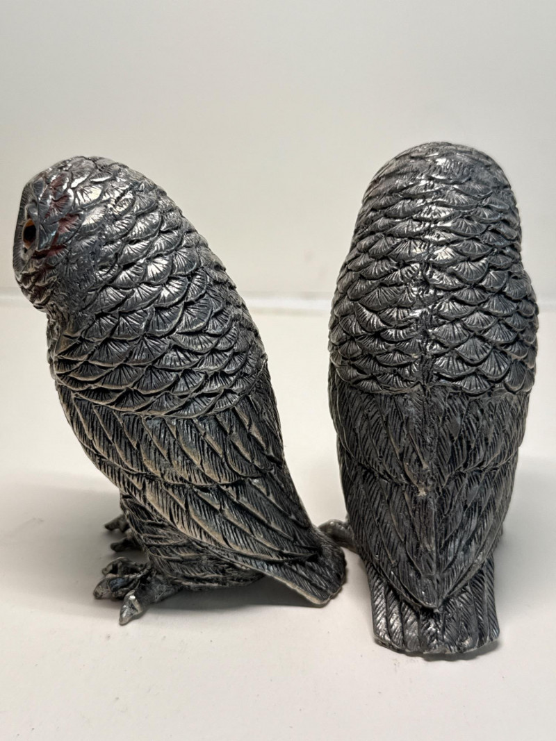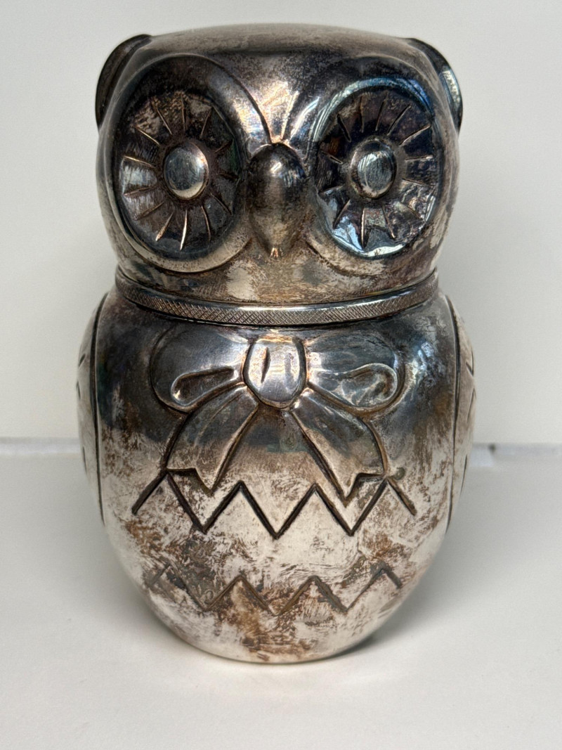 Lot # 39 - Vintage 1968 Silverplate Owl Bank + Matching Salt & Pepper Shakers