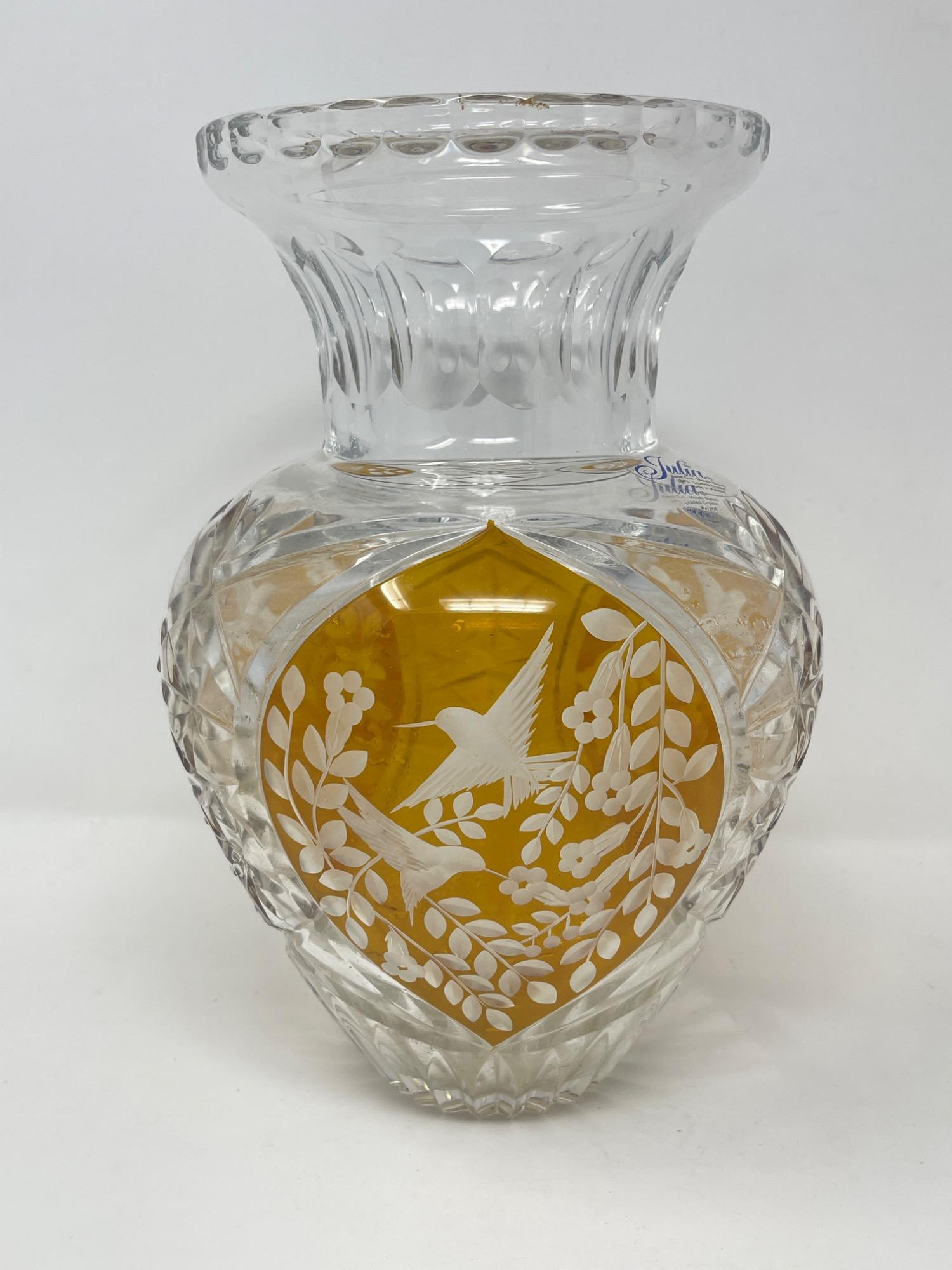 Lot # 55 - Elegant Julia Crystal Hummingbird Vase - Hand Cut, Mouth Blown