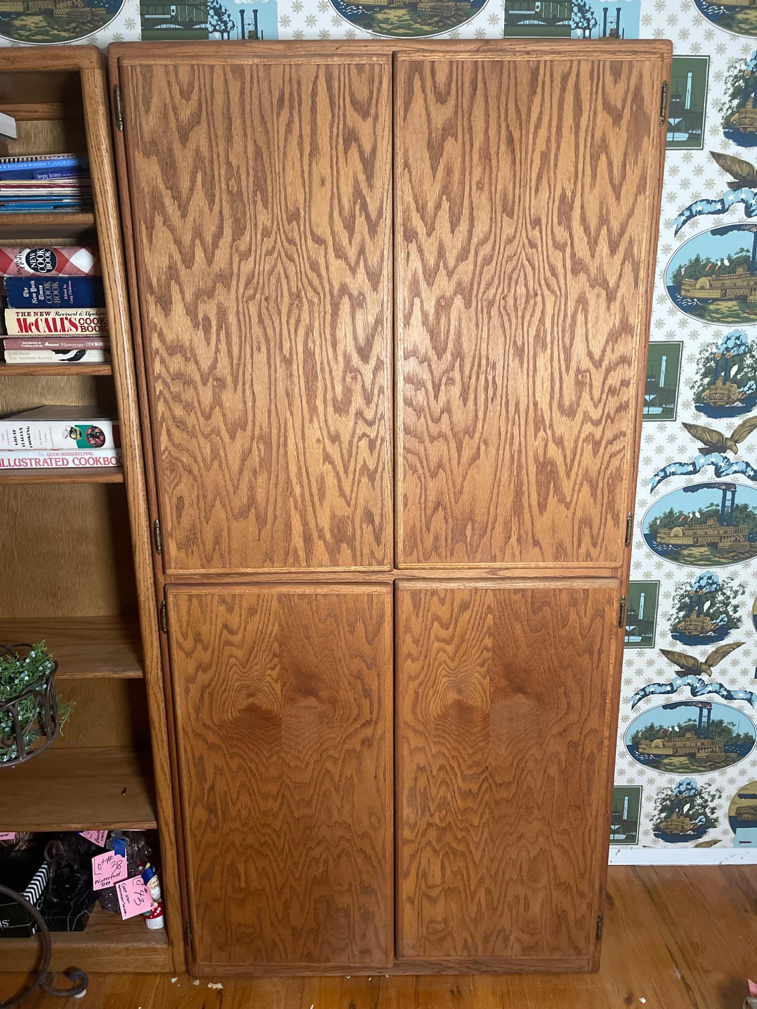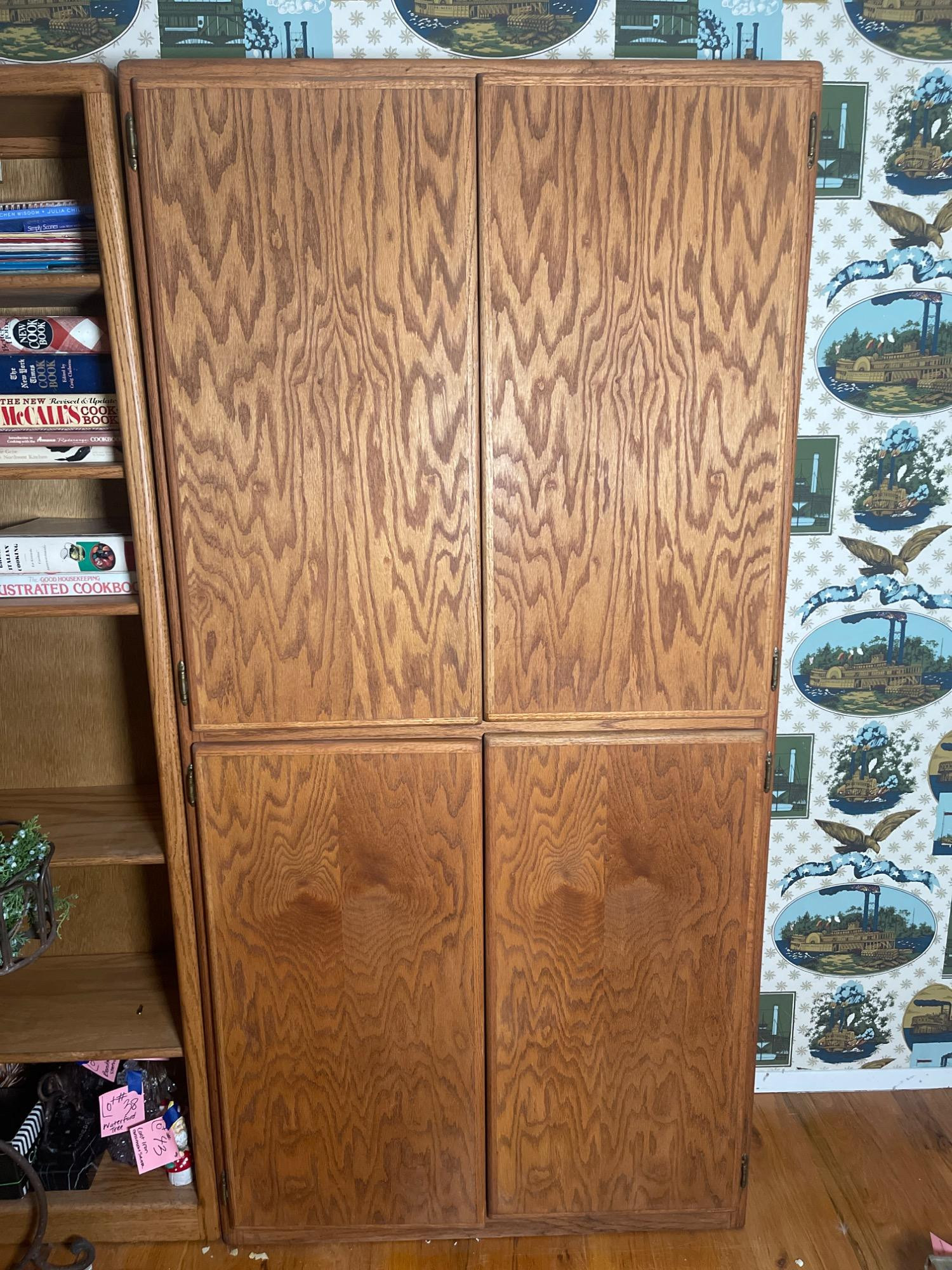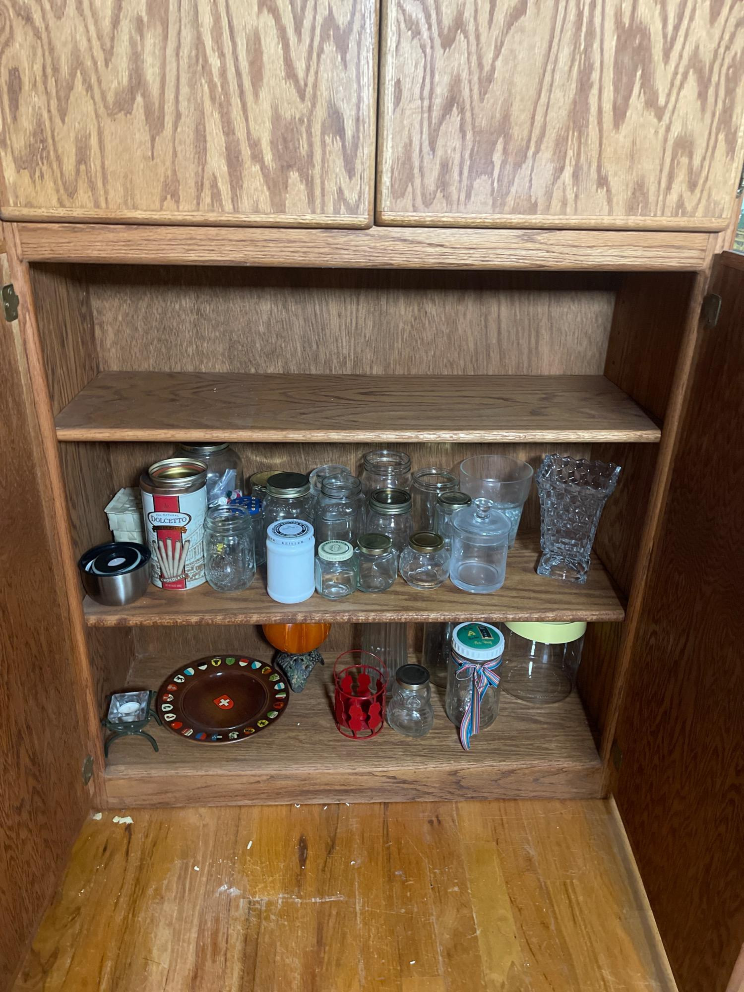 Wooden Storage Cabinet w/ Assorted Kitchen & Decor Items Discover the charm and utility of this wooden storage cabinet, a robust piece perfect for any home seeking additional organization with a touch of classic style. Measuring 36 inches wide, 13.5 inches deep, and 72 inches tall, this cabinet provides ample storage space and comes filled with an eclectic collection of kitchen and decor items, including glass jars, decorative plates, and unique glassware. Please note that there is a minor cosmetic imperfection on the exterior of the cabinet, as depicted in the images. It appears to be a small area of paint damage. This does not affect the functionality of the cabinet but should be considered when placing a bid. This item is sold as-is, and we encourage potential buyers to view all photos for a better understanding of the item’s condition. Bidding on this lot is an agreement that: (1.) You will have at least 2 capable, able-bodied persons to lift and load at a minimum. (2.) You will bring a hand truck and/or any other tools needed to remove this item. If these steps are not followed your item will be forfeited and no refund given.