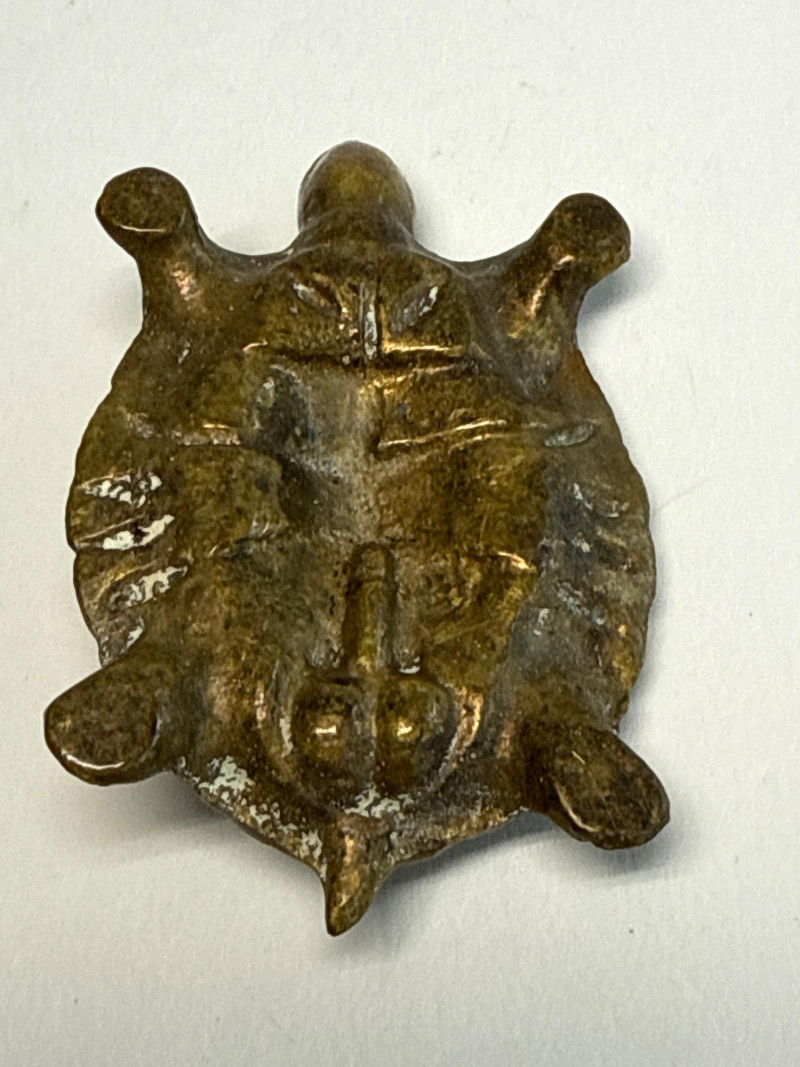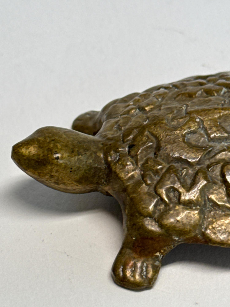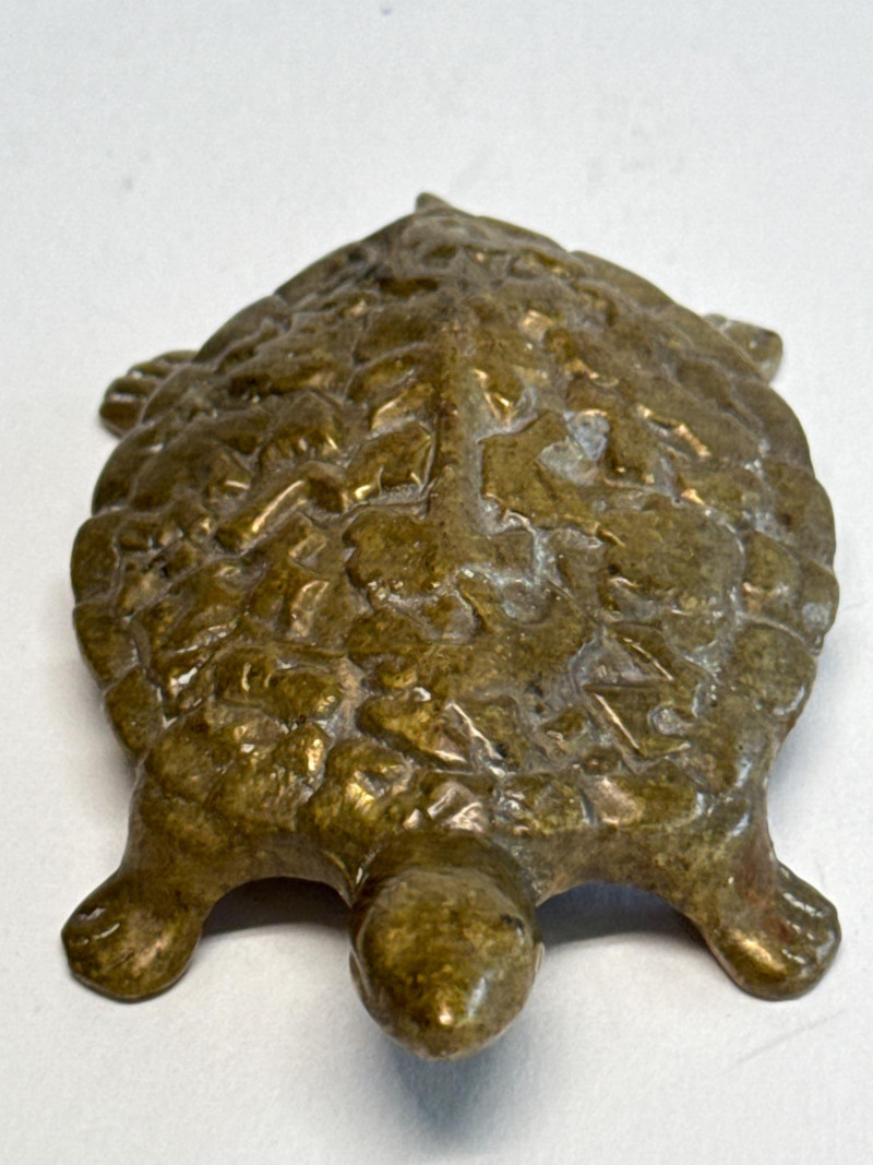 Solid Brass Vintage Fertility Turtle Figurine w/ Ornate Shell Detail Discover the unique charm of this Solid Brass Vintage Fertility Turtle, an exquisite piece that combines symbolic meaning with intricate craftsmanship. This figurine features ornate shell detailing, with patterns believed to represent fertility and longevity, crafted in solid brass that has developed a rich patina over time.