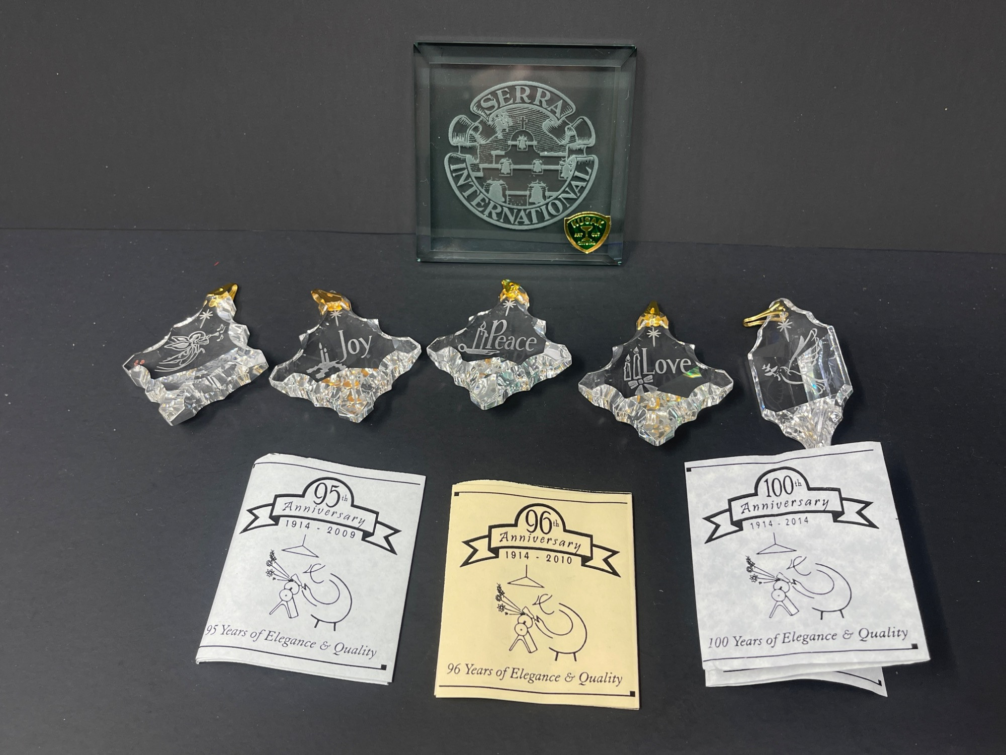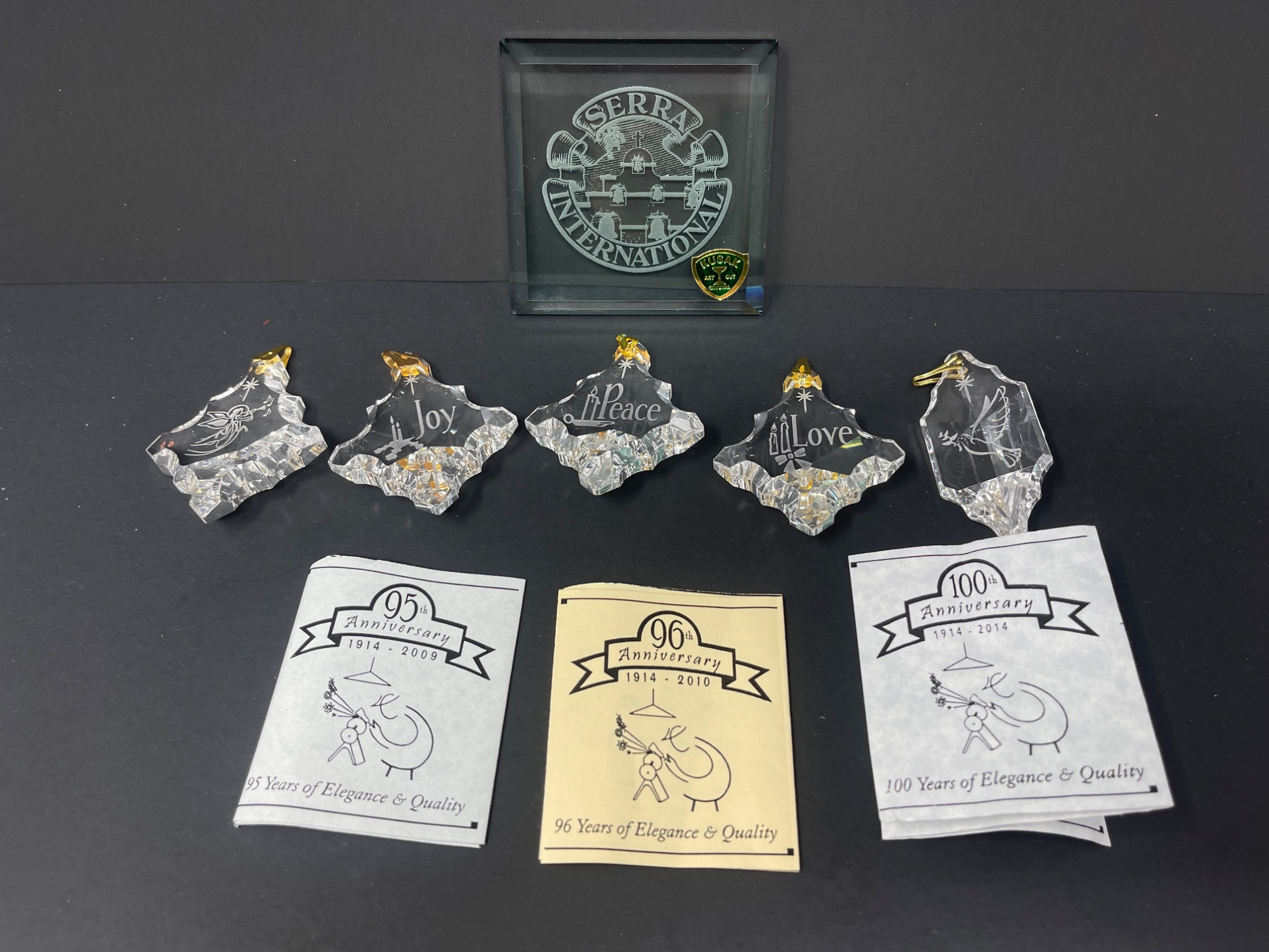 Lot # 64 - Kusak Crystal Anniversary Ornaments & Serra International Plaque