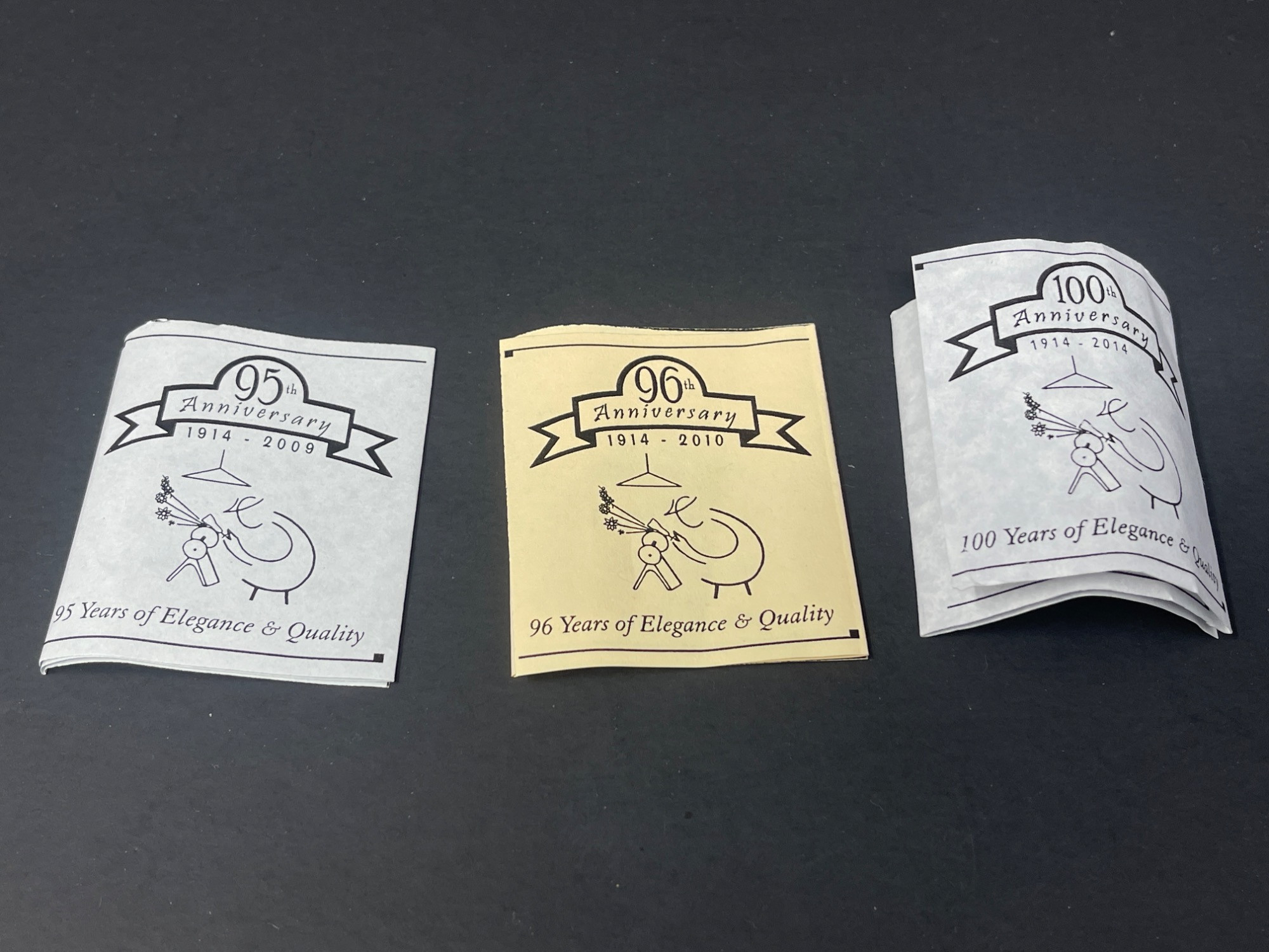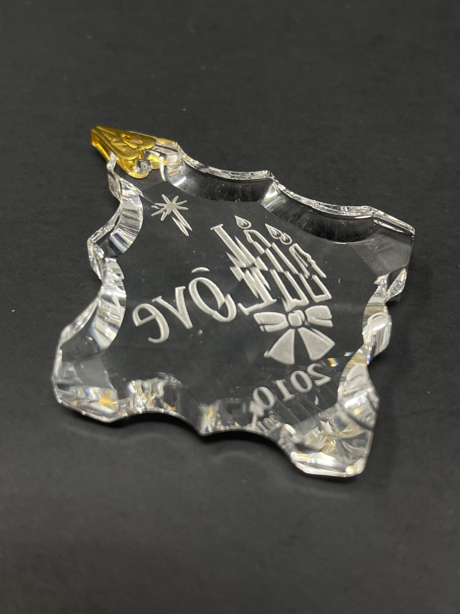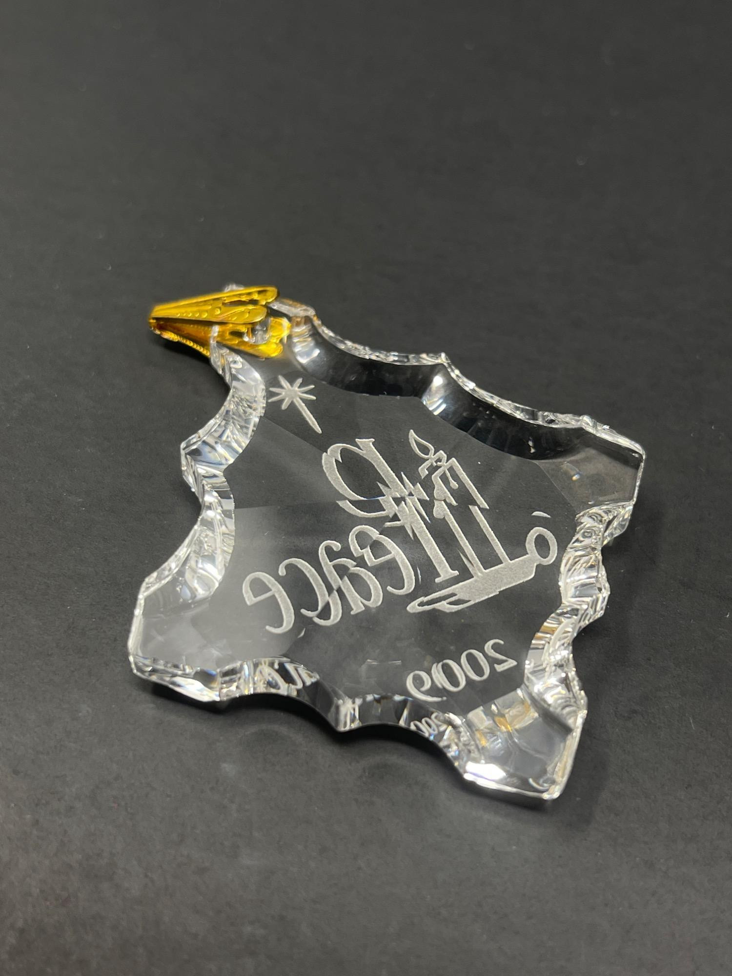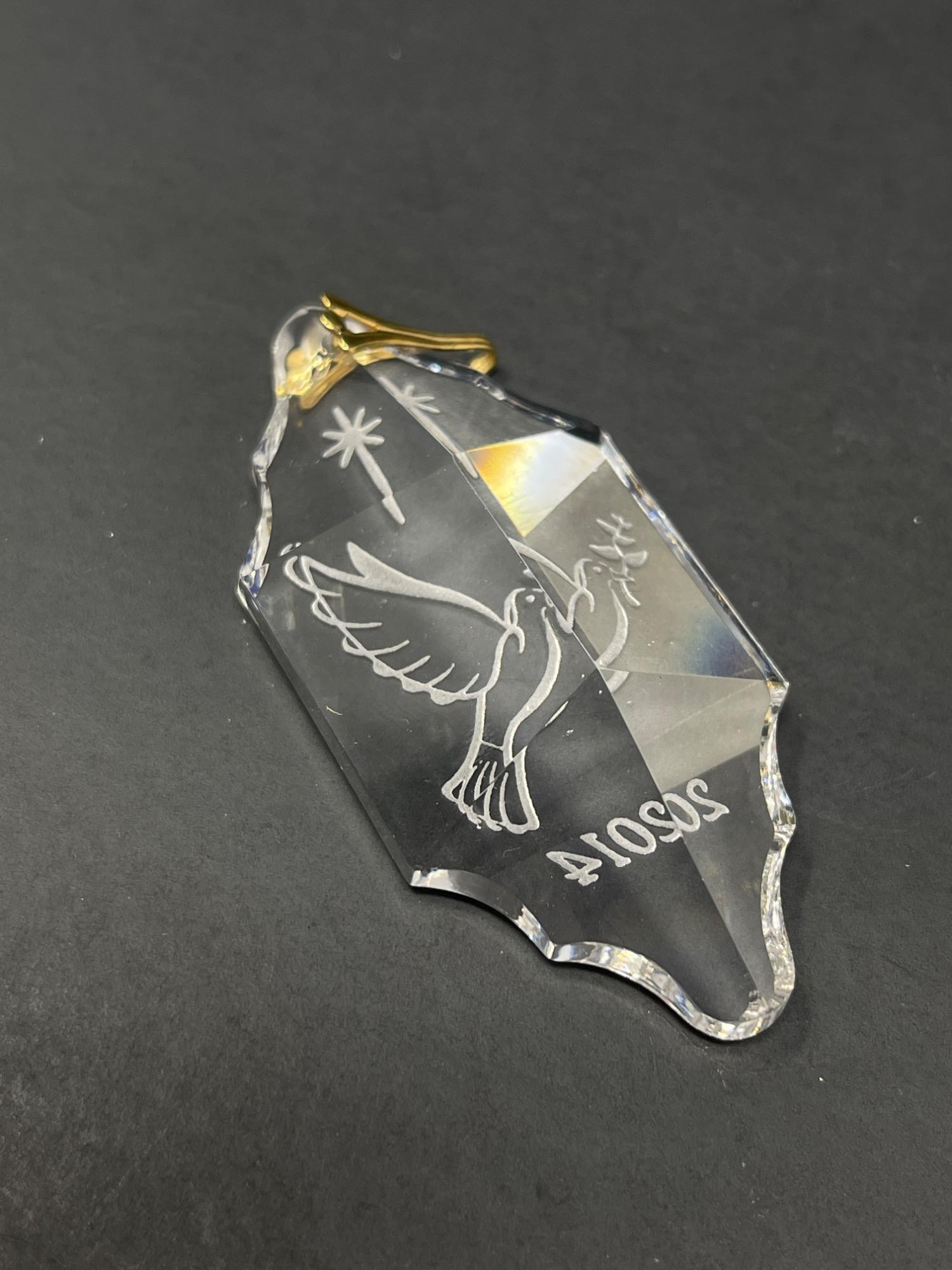Kusak Crystal Anniversary Ornaments & Serra International Plaque Celebrate milestones with this exquisite collection from Kusak Crystal, featuring beautifully crafted anniversary ornaments for 95th, 96th, and 100th years, each engraved with words of 'Joy', 'Peace', and 'Love'. These ornaments are complemented by a finely etched Serra International plaque, detailed with the organization’s emblem, all showcased in pristine condition. Each crystal piece reflects the light with brilliance, highlighting the meticulous artistry and elegance Kusak Crystal is known for. This collection is perfect for collectors of commemorative items or as a gift to cherish the spirit of significant achievements. The accompanying Serra International plaque, also crafted by Kusak, adds a dignified touch, ideal for displaying in offices, libraries, or personal collections.