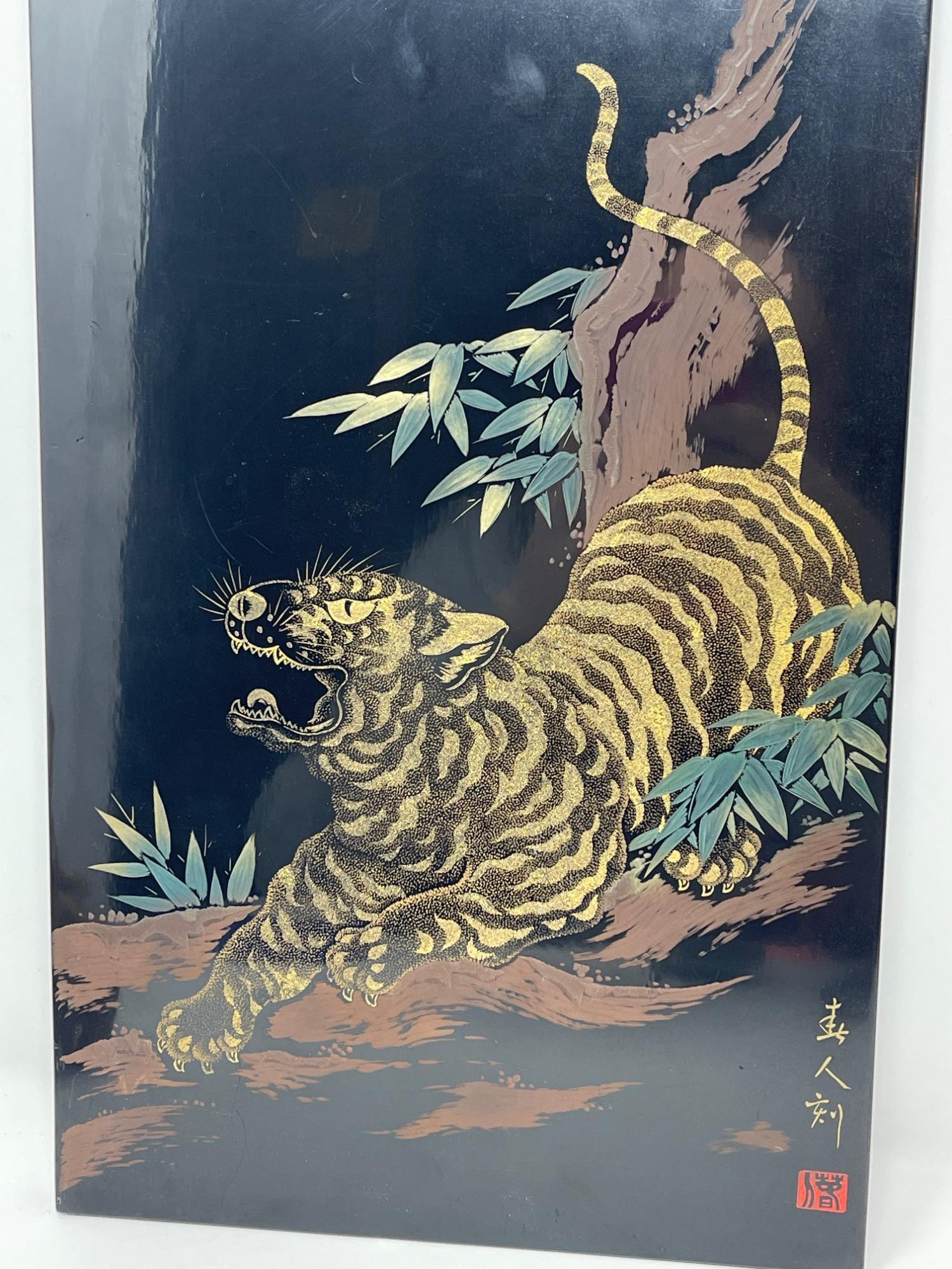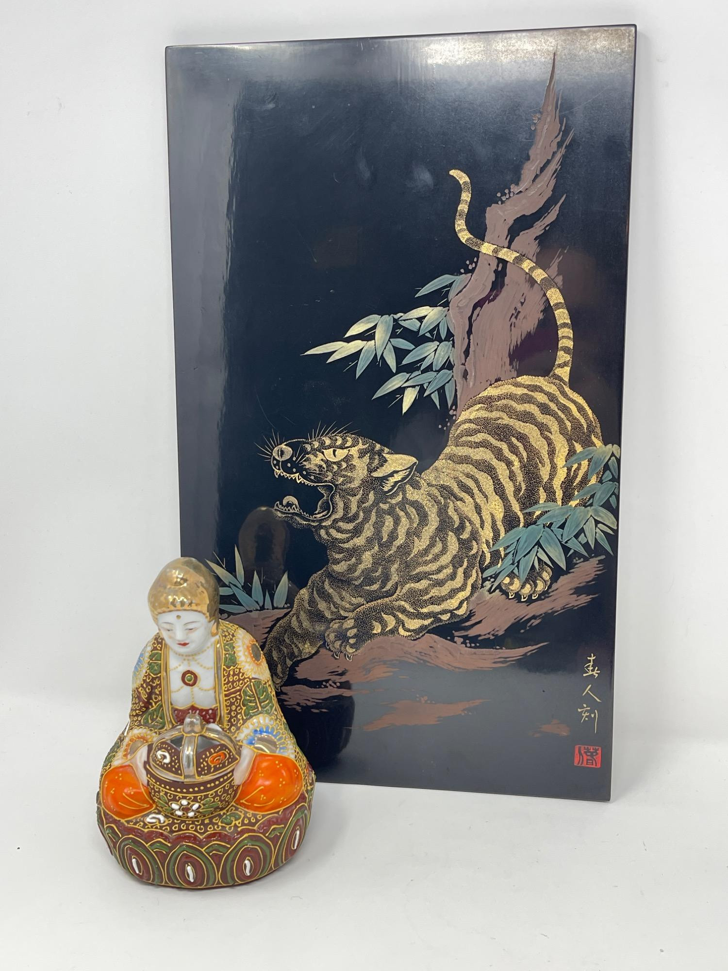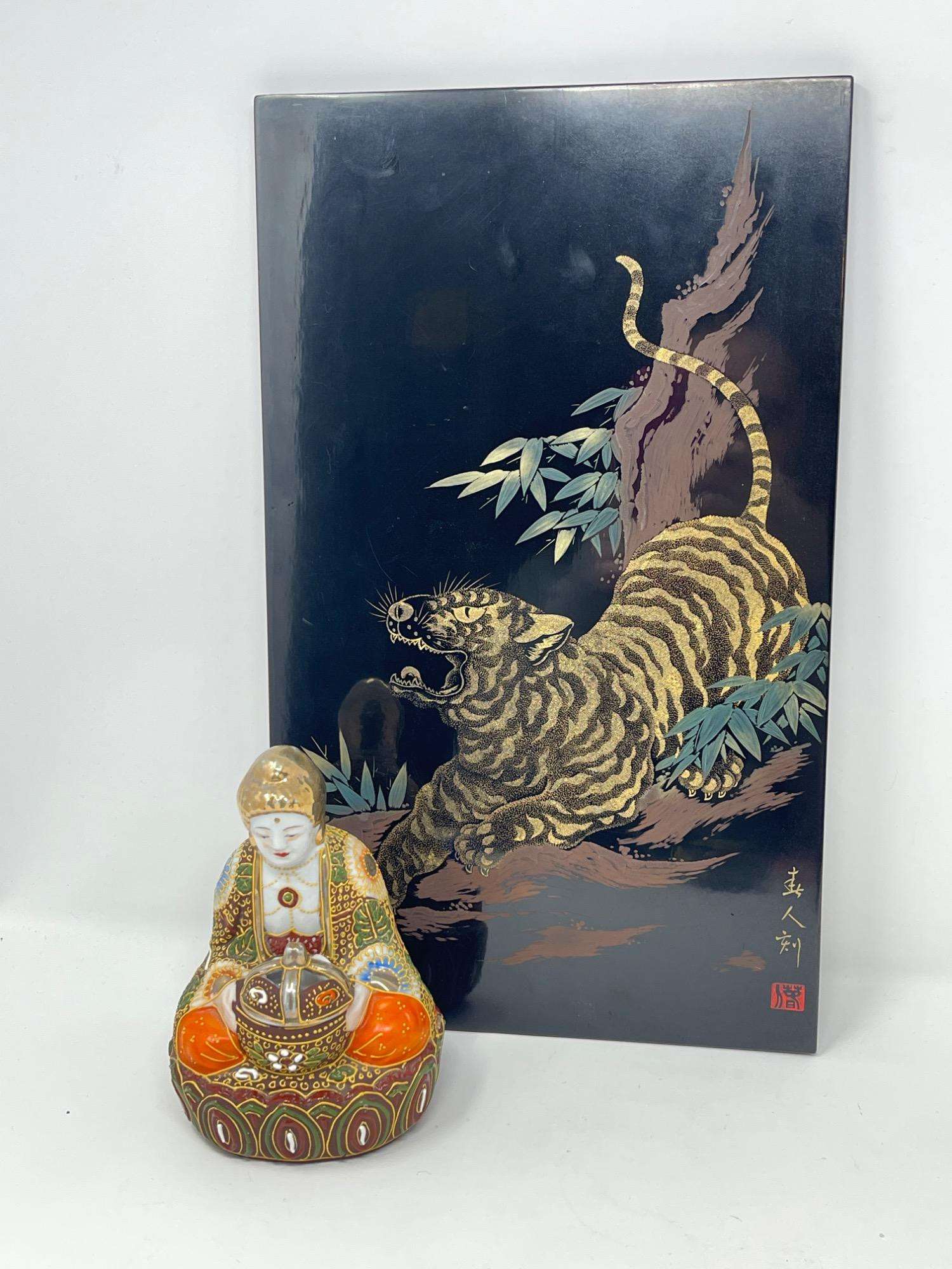 Lot # 65 - Tiger Art Panel & Hand-Painted Porcelain Buddha Incense Burner