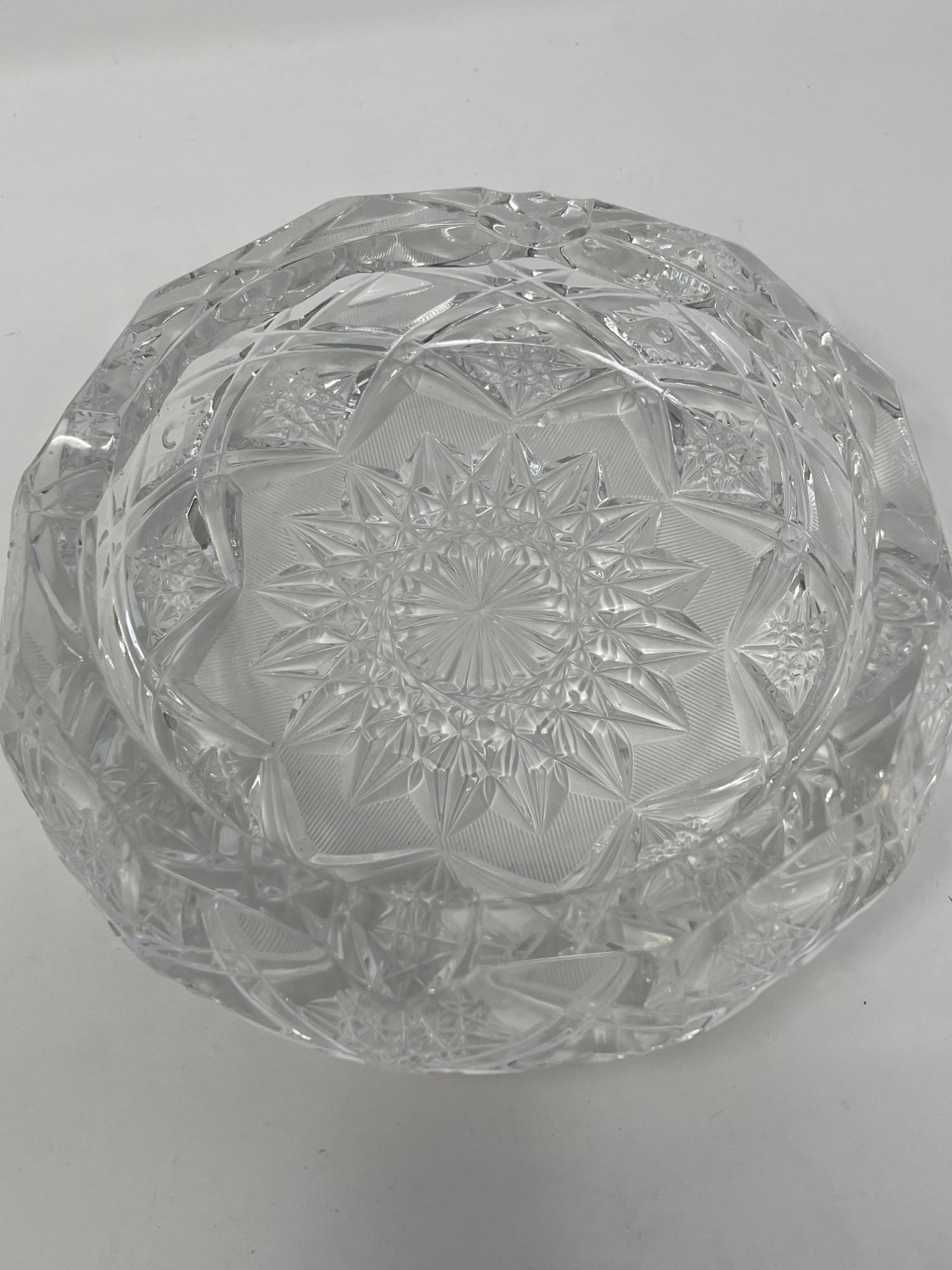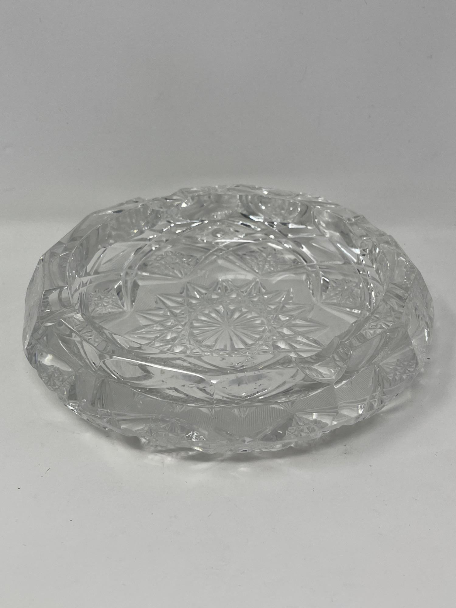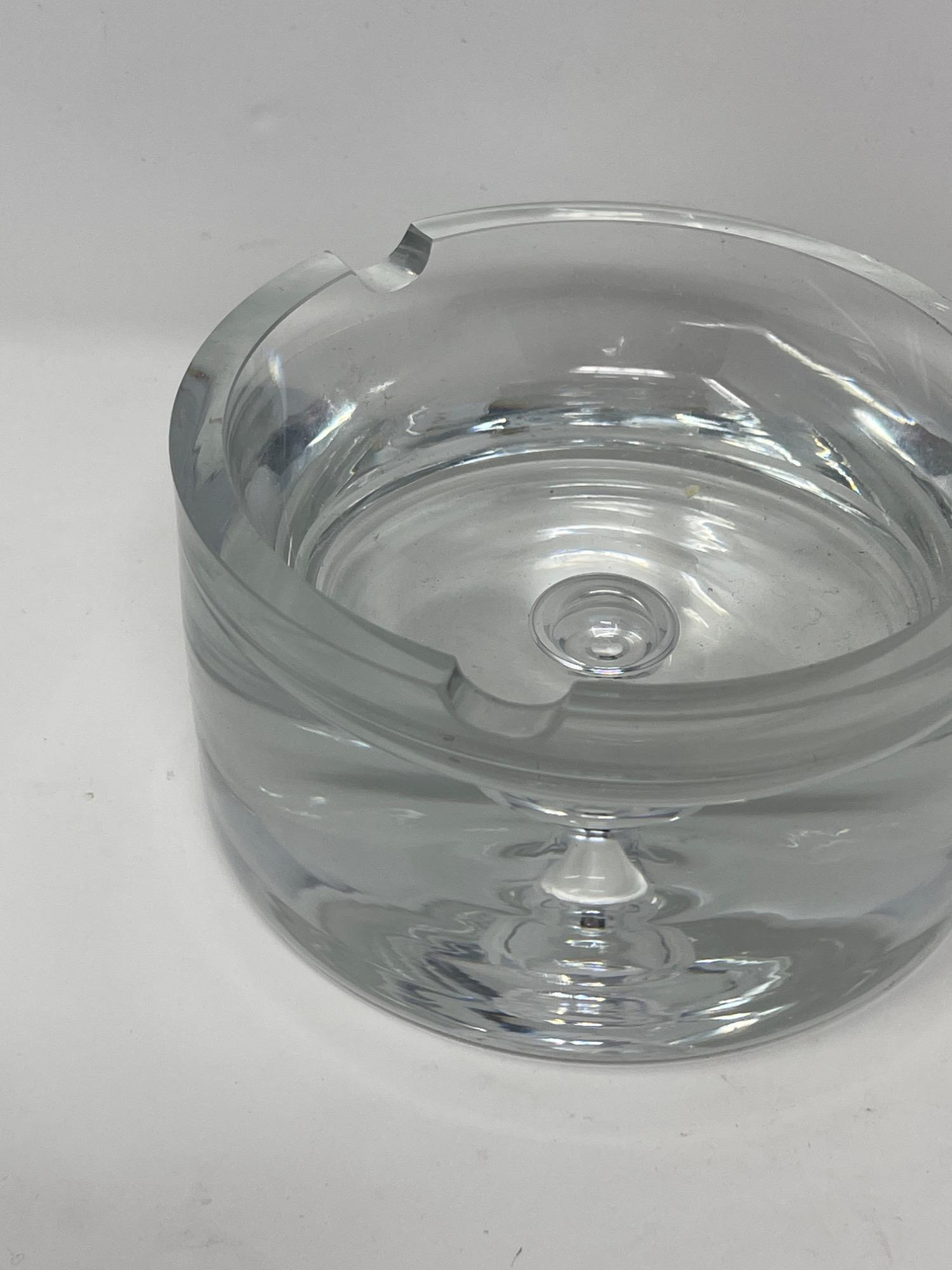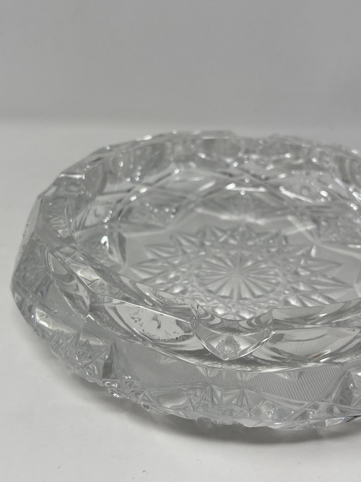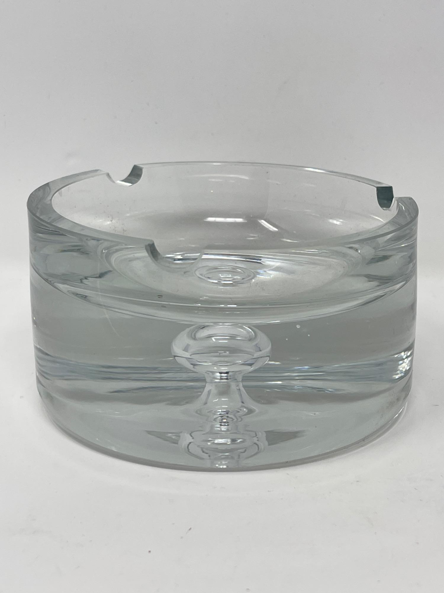 Vintage 1960s Blenko Art Glass Thompson of Tampa Ashtrays + 2 More 4.5-7.5” W Step back in time with this distinctive collection of vintage ashtrays, featuring a 1960s Blenko art glass piece known for its bold design and quality craftsmanship. This collection also includes a robust Thompson of Tampa heavy cigar ashtray, exemplifying classic mid-century style and utility. Both pieces reflect the era's aesthetic with their unique shapes and clear glass finishes. In addition, the lot includes two more traditional glass ashtrays, each showcasing intricate patterns that catch the light beautifully. Whether used for their original purpose or repurposed as decorative pieces, these ashtrays add a touch of retro flair to any setting.