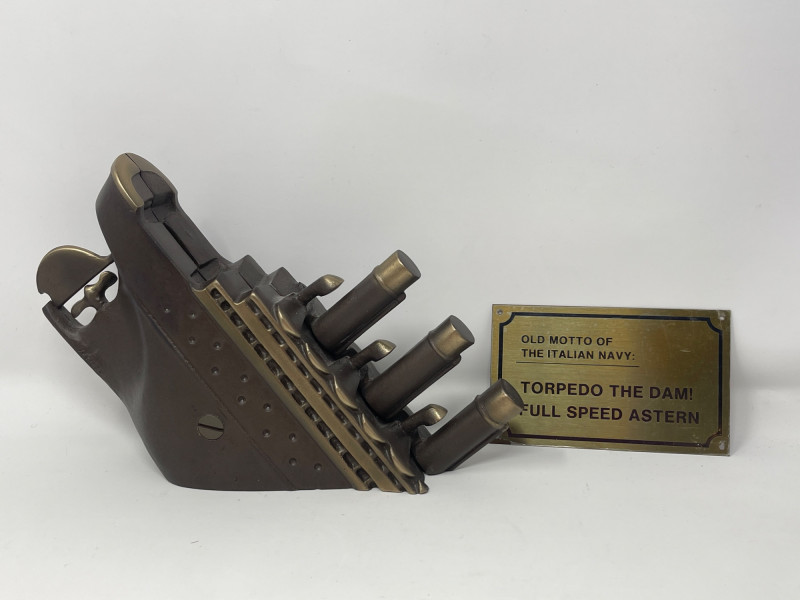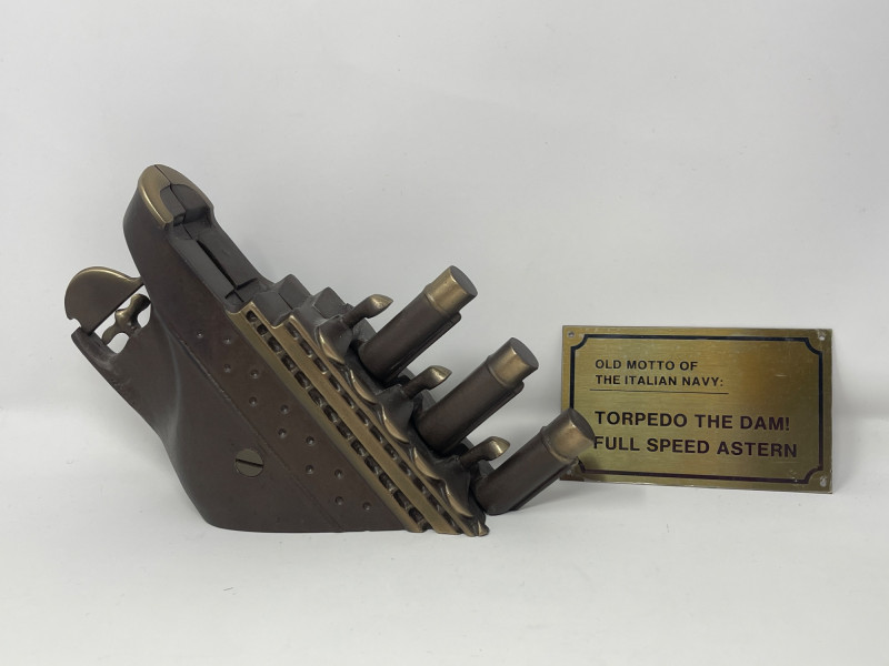 Lot # 95 - Solid Bronze Sand-Cast Titanic Coin Bank w/ Italian Navy Motto Plaque