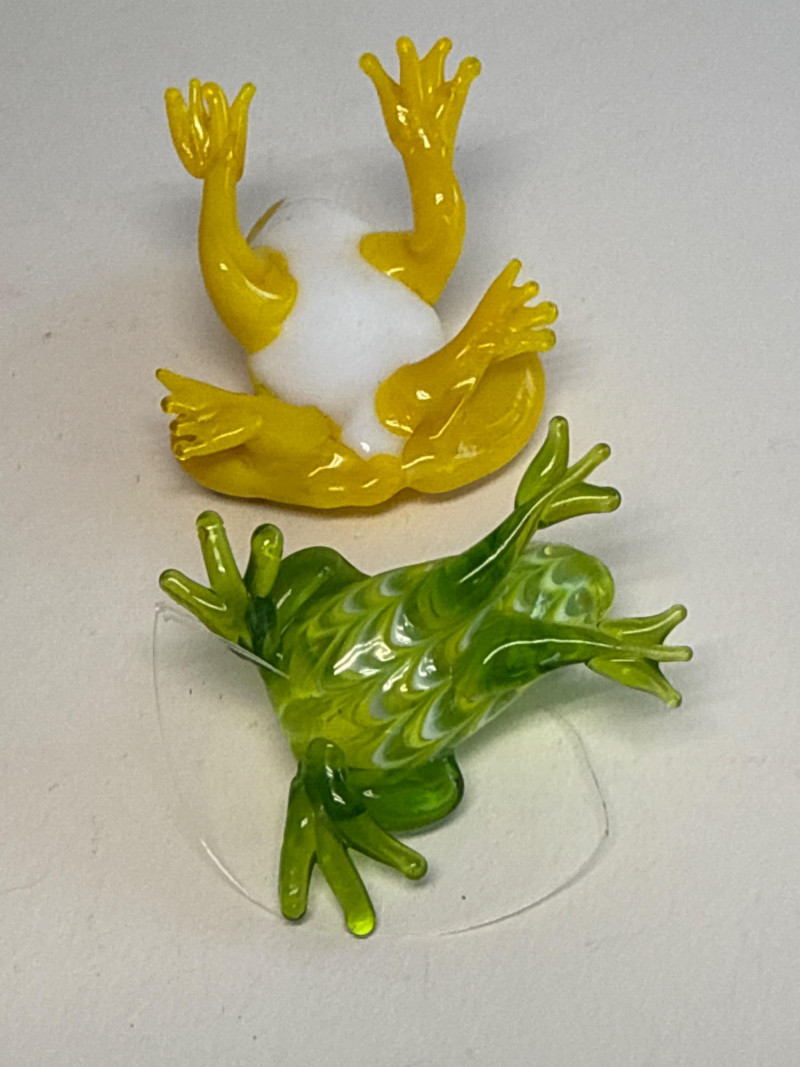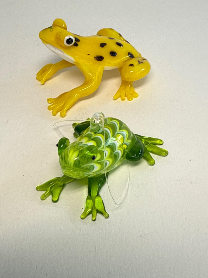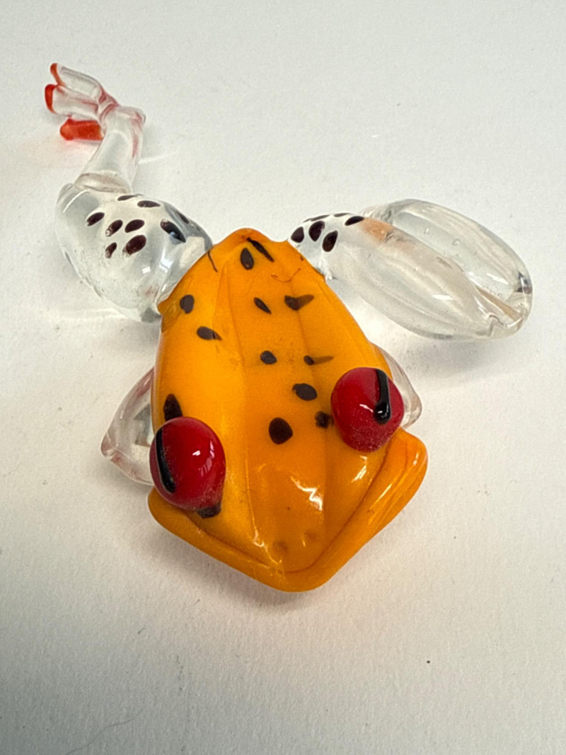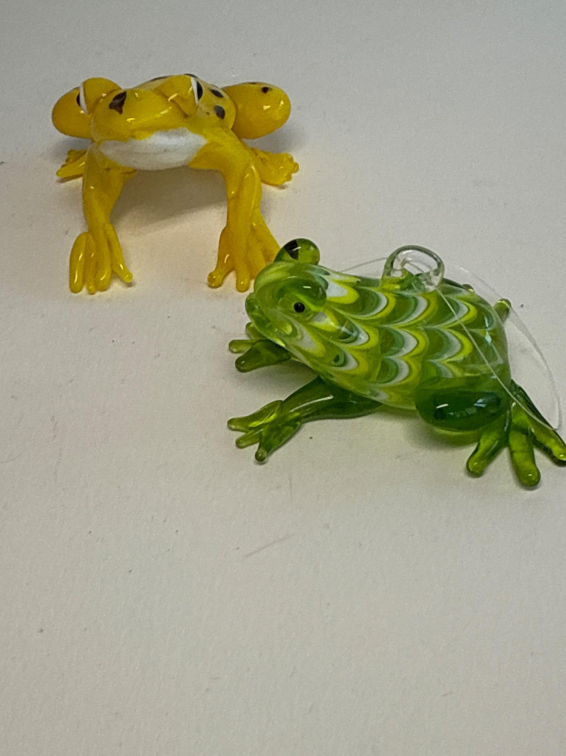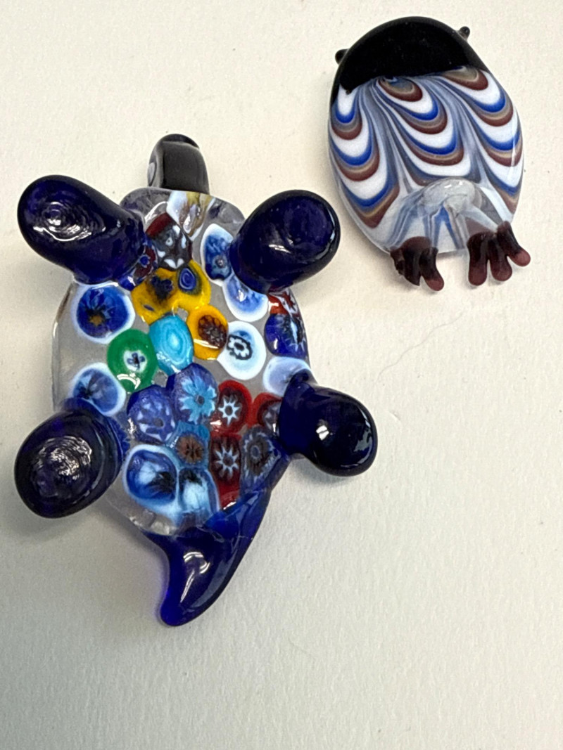 Murano Turtle & Assorted Glass Animal Figurines Explore the enchanting world of glass art with this captivating collection of handcrafted figurines. Each piece in this assortment stands out with its vibrant colors and meticulous detailing, perfect for collectors and enthusiasts alike. Murano Glass Turtle: A standout piece from Venezia, this Murano glass turtle is adorned with a colorful mosaic of floral patterns, showcasing the prestigious craftsmanship of Italian glassmakers. Assorted Glass Animals: This set also includes an array of charming animals, each with its own unique design. From the striking orange glass frog, measuring 5.5 inches in length, 2.75 inches in width, and 1.2 inches in height, to a delightful array of other figures including frogs and owls, each piece captures a moment of natural beauty in brilliant glass.