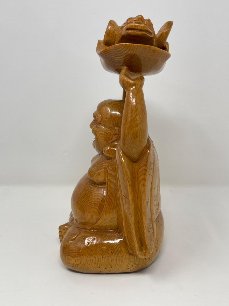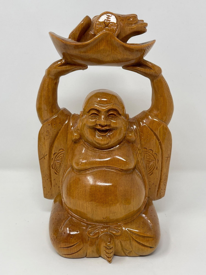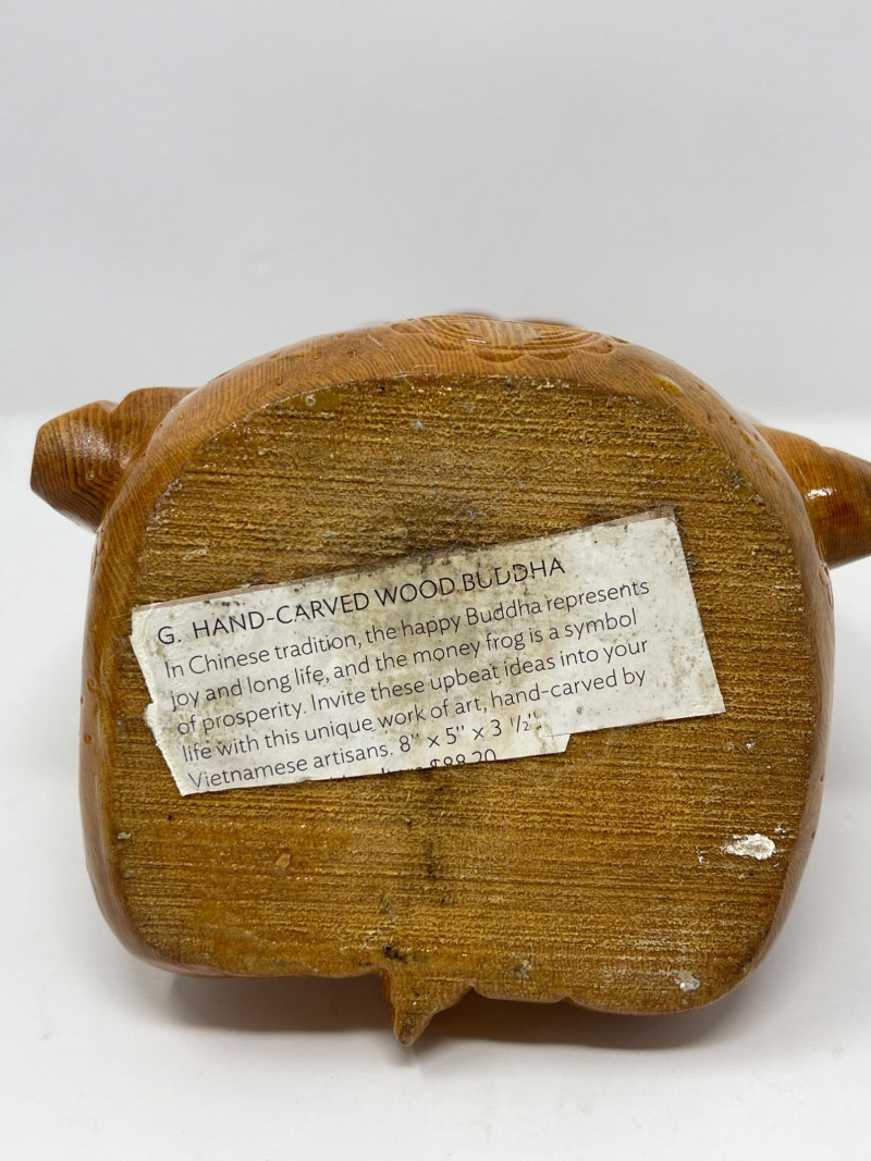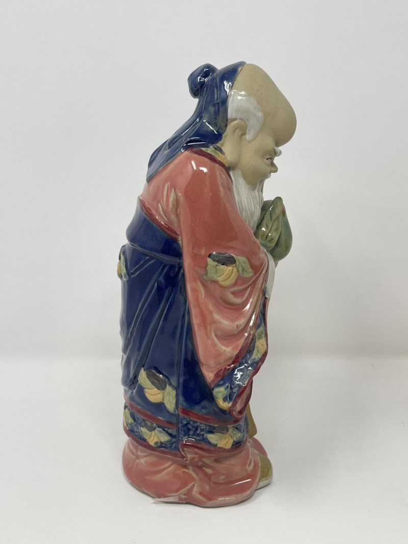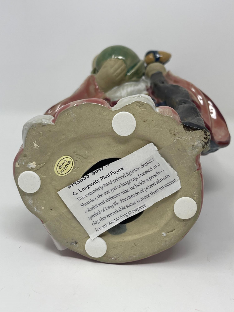 Asian-Inspired Figurine Collection: Buddhas and Longevity Sage 3-10” H Embrace the serene and auspicious charm of this Asian-inspired figurine collection, featuring expertly crafted pieces that embody peace, prosperity, and longevity. This set includes: Hand-Painted Longevity Sage Mud Figure: Dressed in a colorful robe, this figure symbolizes long life and wisdom, holding a peach—a traditional symbol of immortality. Hand-Carved Wooden Happy Buddha: Known for joy and prosperity, this Happy Buddha carries a money frog, hand-carved by skilled Vietnamese artisans, measuring 8"x5"x3.5". Intricately Designed Ivory-Toned Figures: Detailed with ornate patterns, these figures add a touch of elegance and cultural depth to any collection. Perfect for collectors or as thoughtful decor in a home or office, these figures are not just decorative items but are steeped in rich cultural significance. Each piece is a blend of traditional motifs and symbolism, ideal for enhancing any space with a touch of tranquility and cultural heritage.