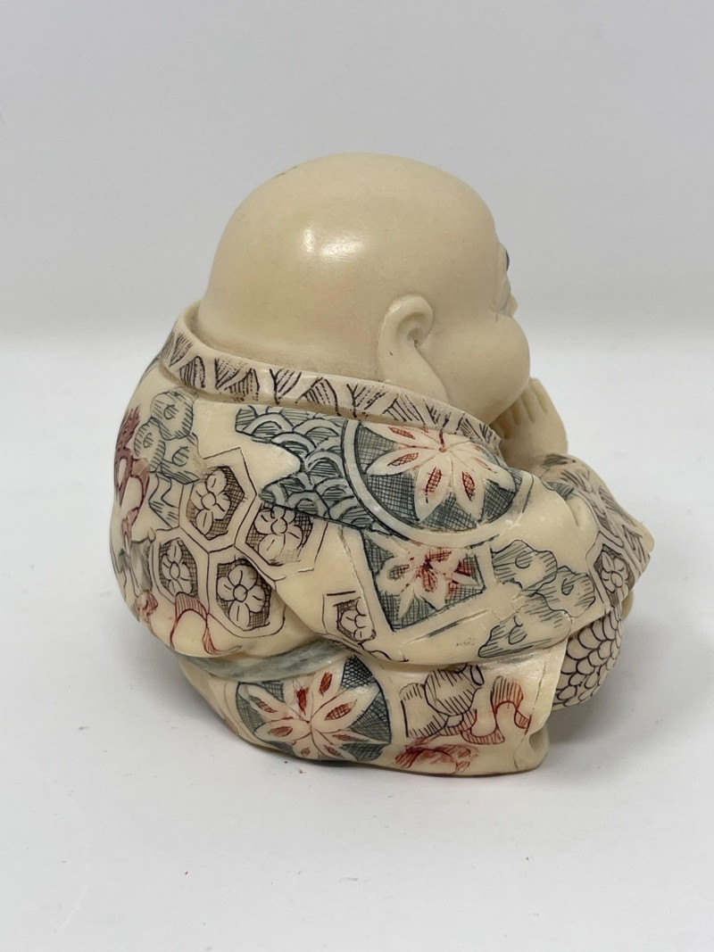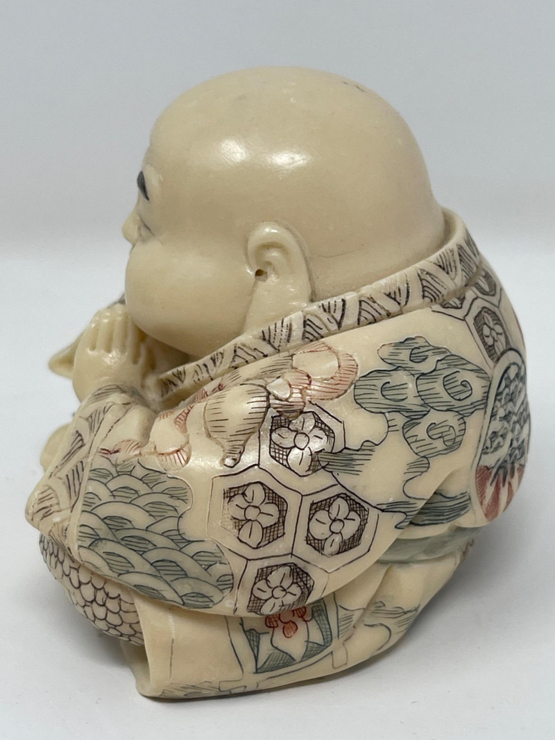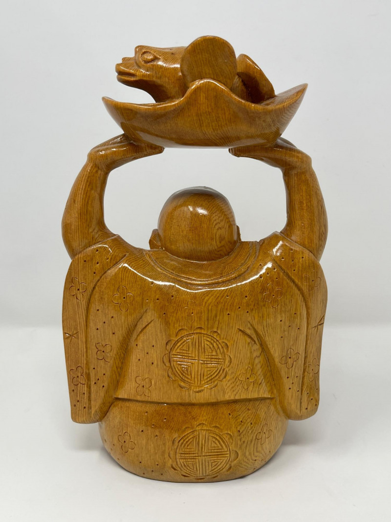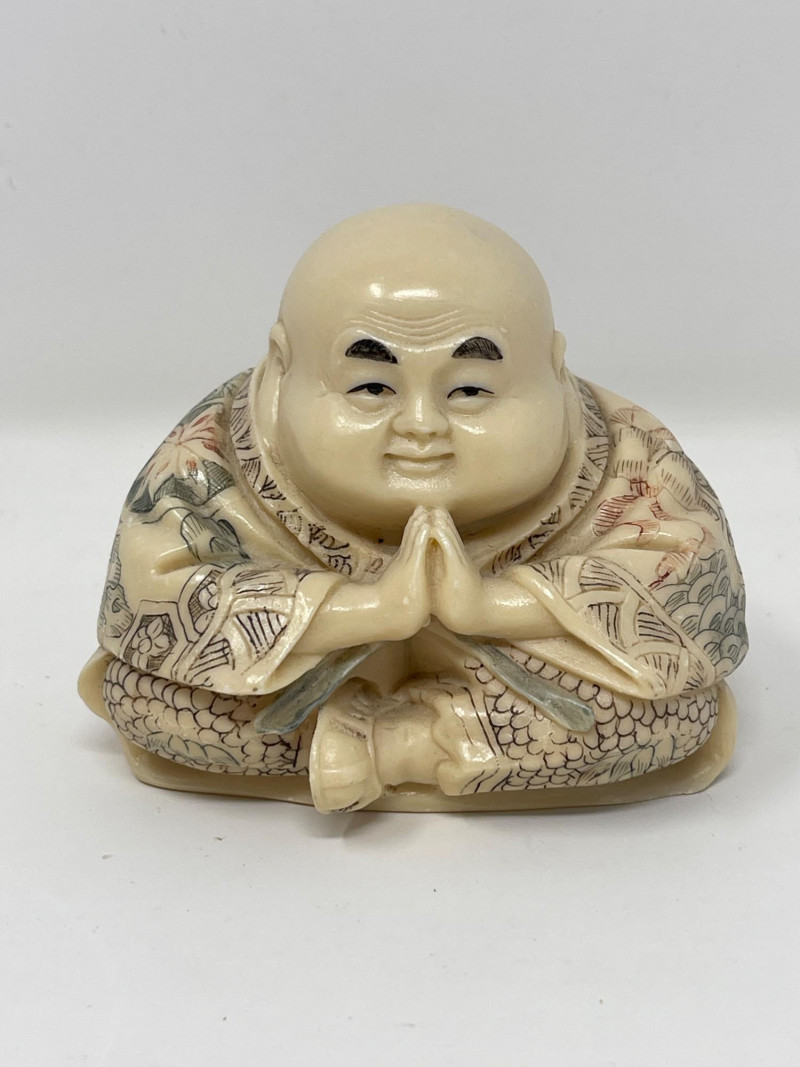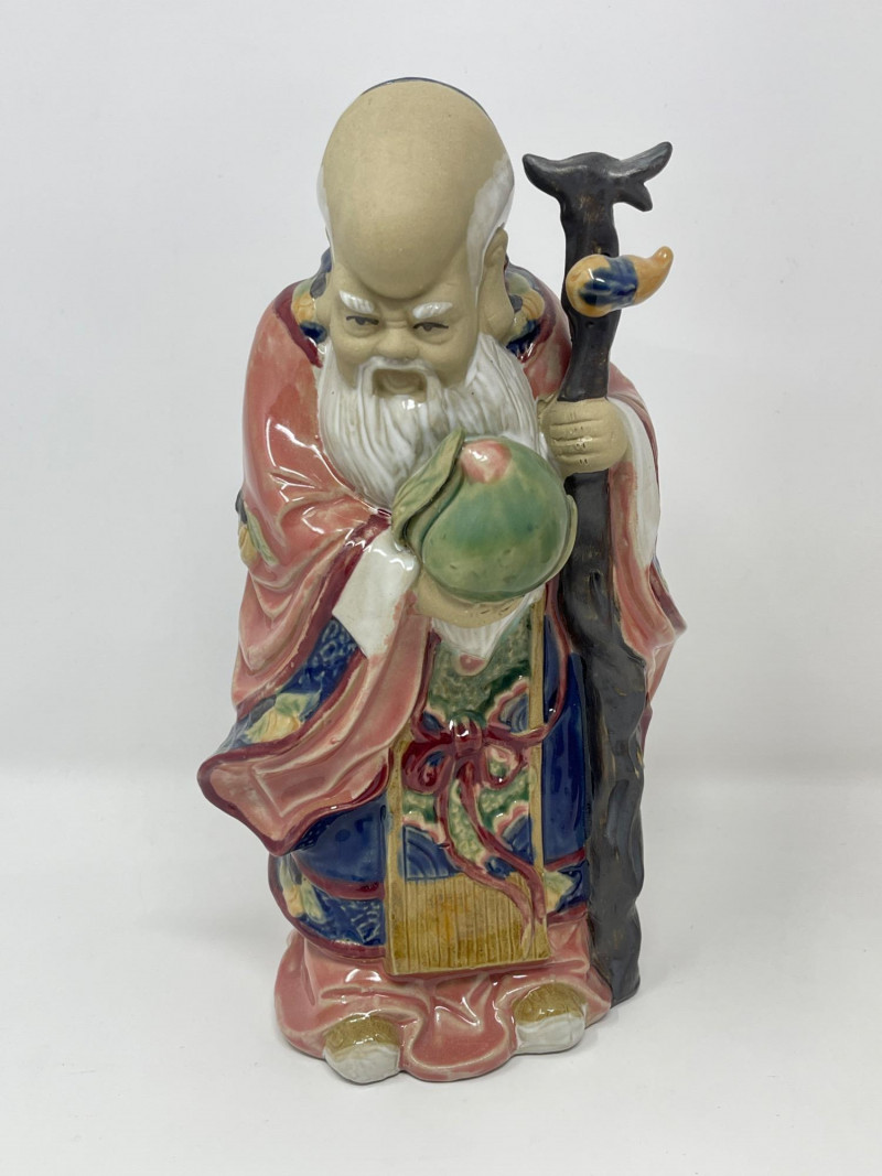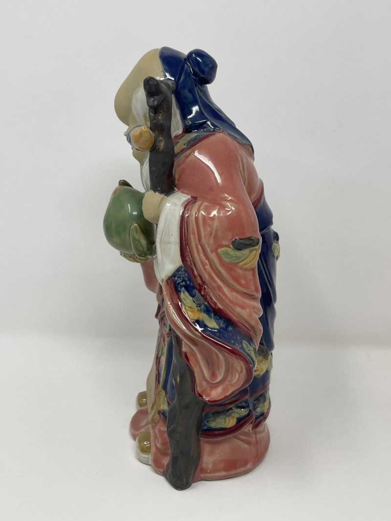 Asian-Inspired Figurine Collection: Buddhas and Longevity Sage 3-10” H Embrace the serene and auspicious charm of this Asian-inspired figurine collection, featuring expertly crafted pieces that embody peace, prosperity, and longevity. This set includes: Hand-Painted Longevity Sage Mud Figure: Dressed in a colorful robe, this figure symbolizes long life and wisdom, holding a peach—a traditional symbol of immortality. Hand-Carved Wooden Happy Buddha: Known for joy and prosperity, this Happy Buddha carries a money frog, hand-carved by skilled Vietnamese artisans, measuring 8"x5"x3.5". Intricately Designed Ivory-Toned Figures: Detailed with ornate patterns, these figures add a touch of elegance and cultural depth to any collection. Perfect for collectors or as thoughtful decor in a home or office, these figures are not just decorative items but are steeped in rich cultural significance. Each piece is a blend of traditional motifs and symbolism, ideal for enhancing any space with a touch of tranquility and cultural heritage.
