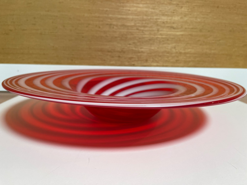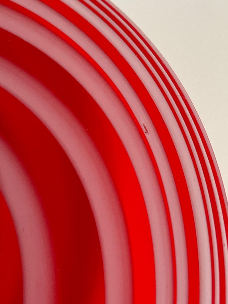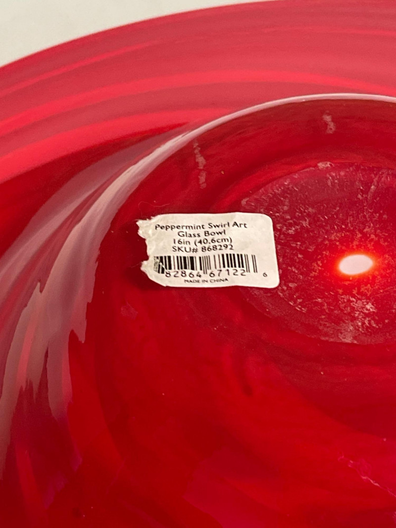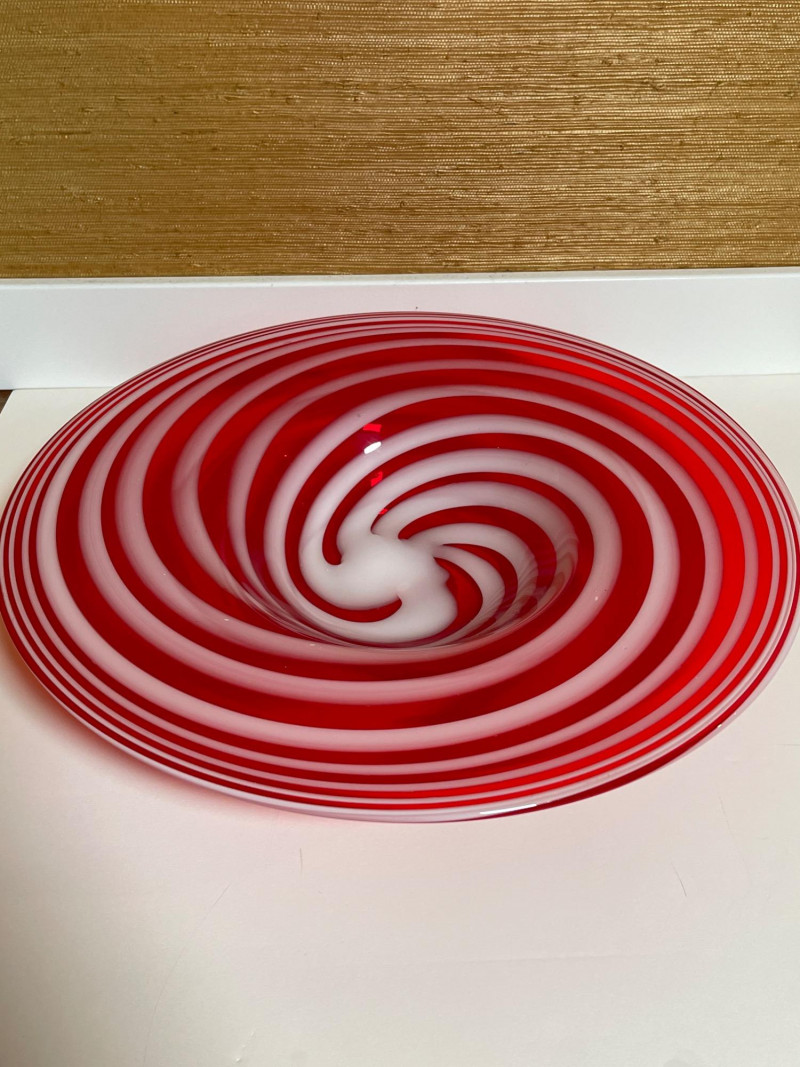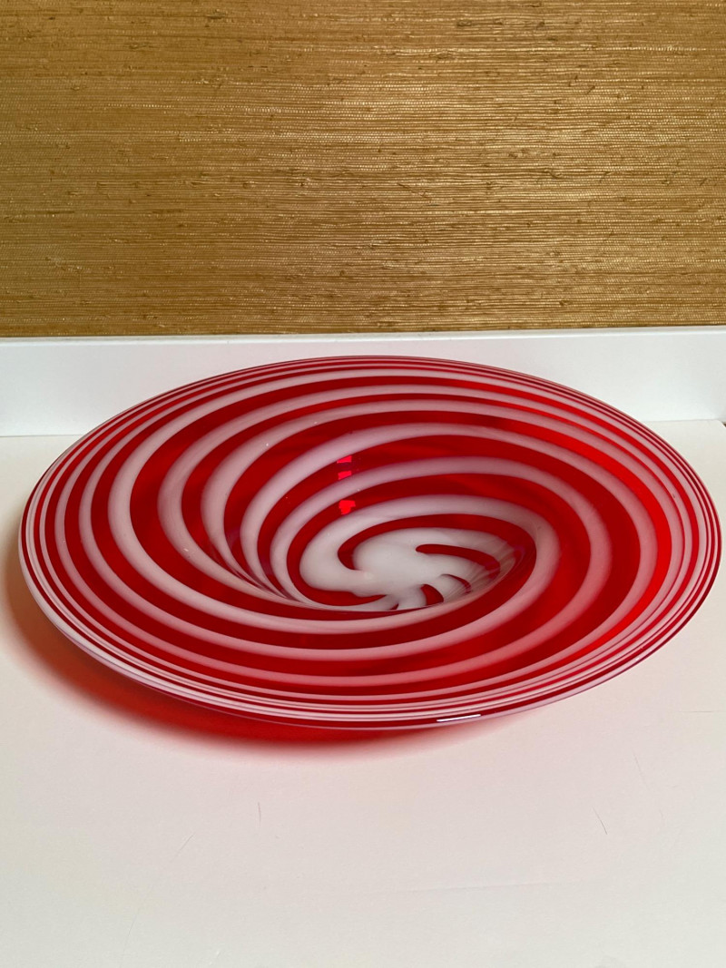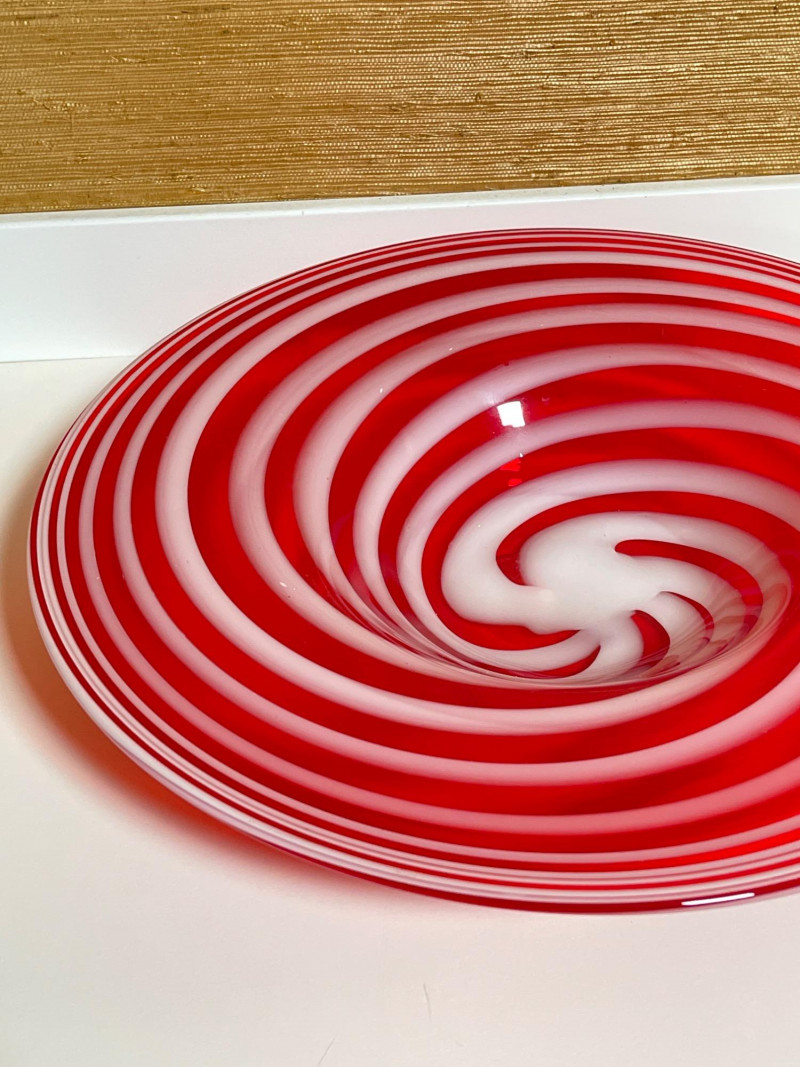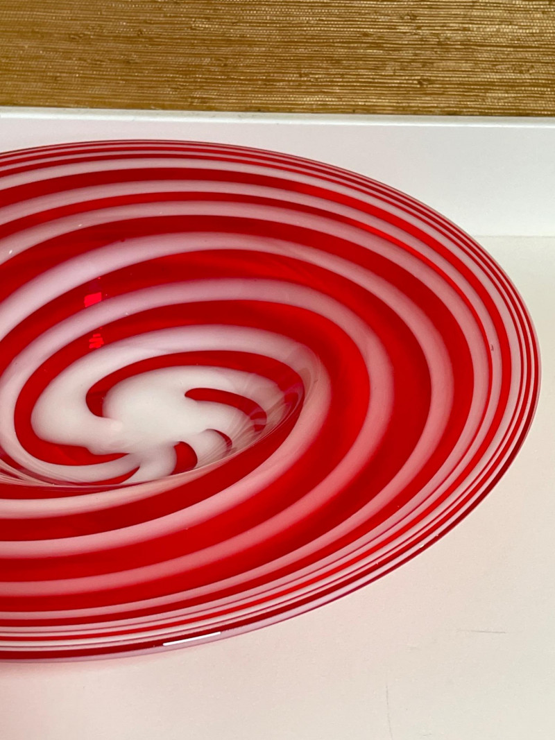 Lot # 146 - Lenox Peppermint Swirl Art Glass Bowl – Red & White Hand-Blown Dish