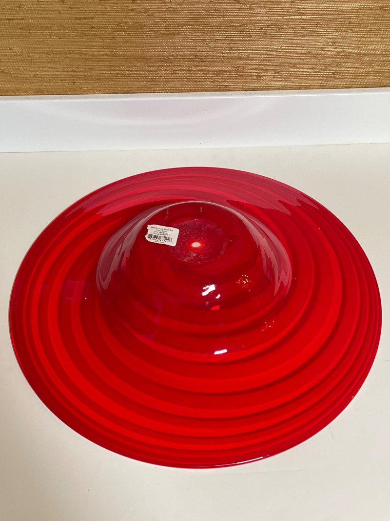 Lenox Peppermint Swirl Art Glass Bowl – Red & White Hand-Blown Dish A bold and festive art glass centerpiece bowl by Lenox, showcasing their signature peppermint swirl design in vivid red and opaque white. This hand-blown bowl makes a striking statement for holiday décor or year-round modern glass collections. Swirled red and white glass with a candy-cane inspired pattern Gently flared rim and shallow pedestal base Heavy and well-balanced; crafted with the quality expected of Lenox glass A perfect blend of contemporary art glass and nostalgic charm Ideal as a centerpiece, serving piece, or collector’s accent.