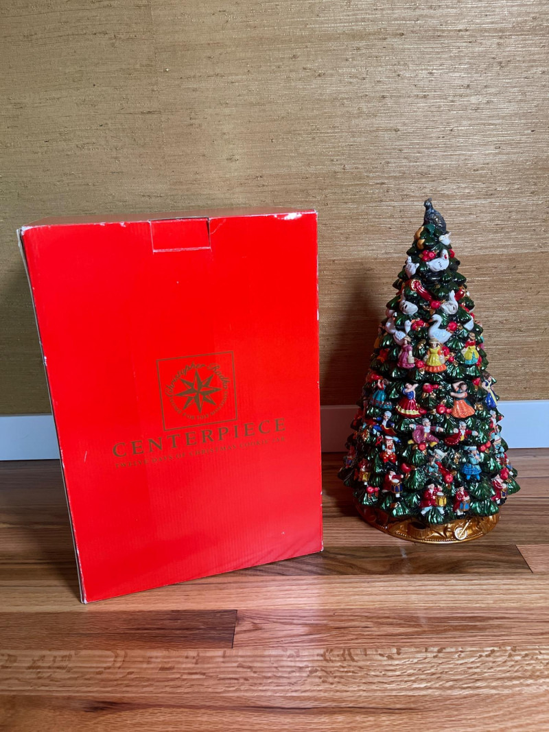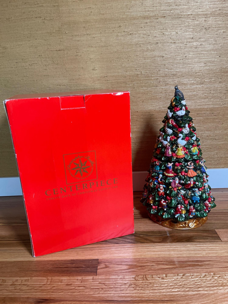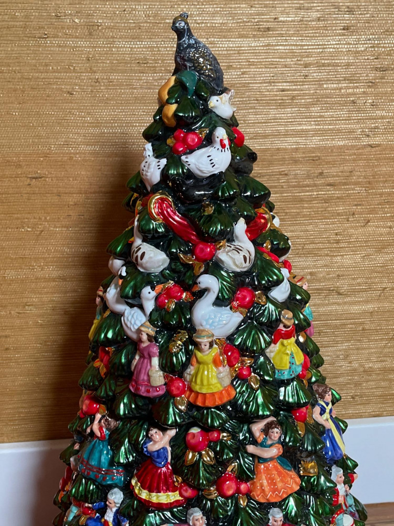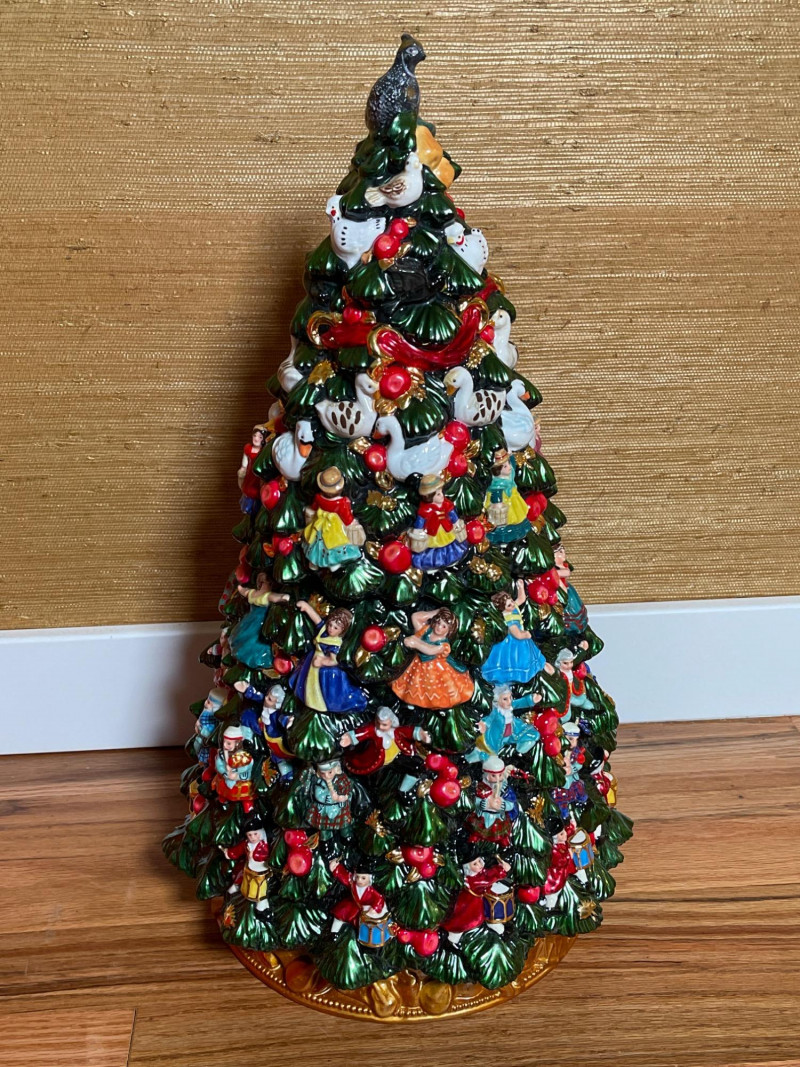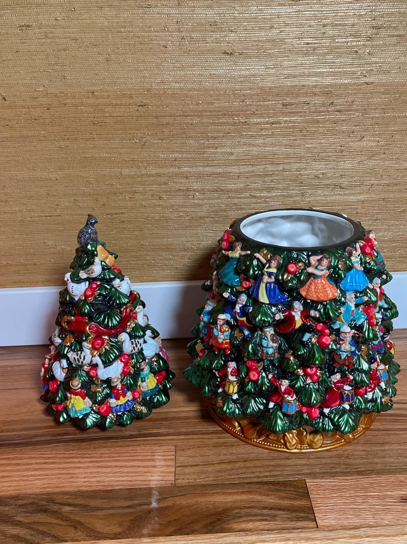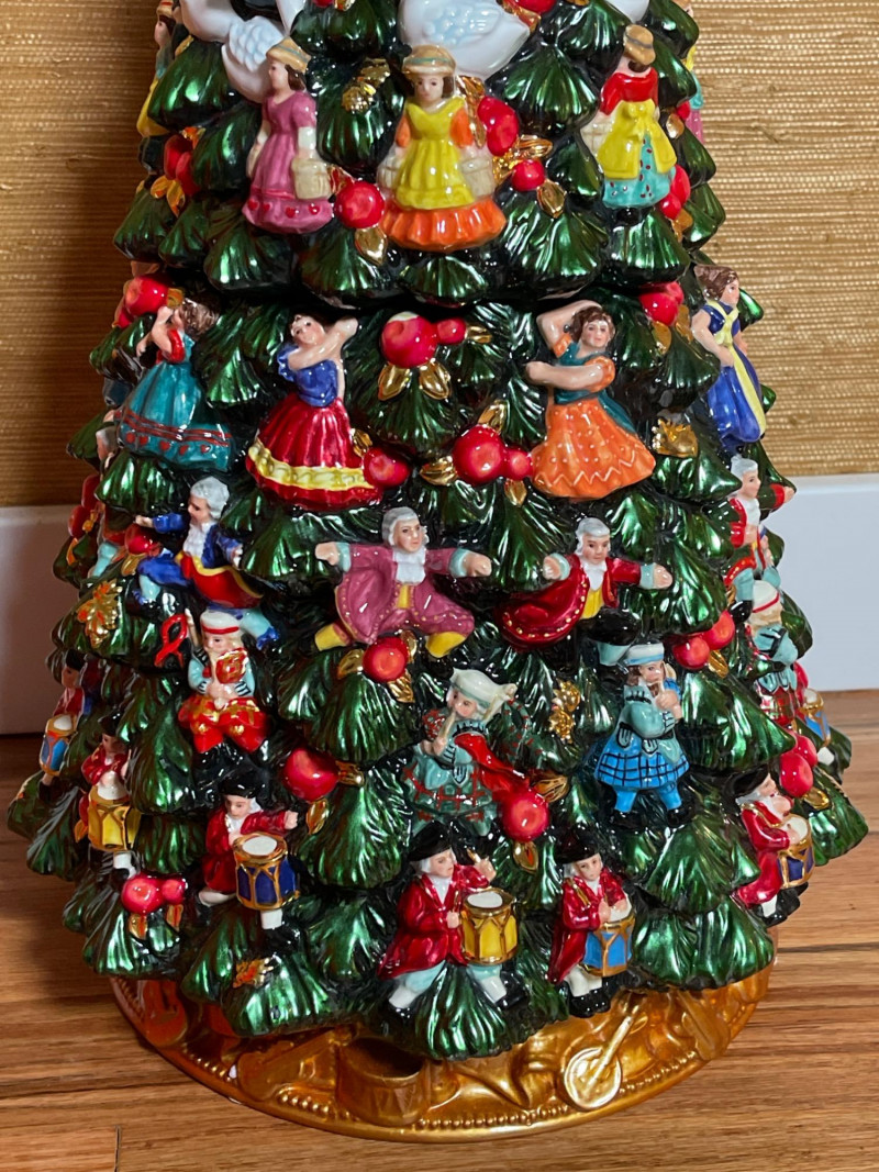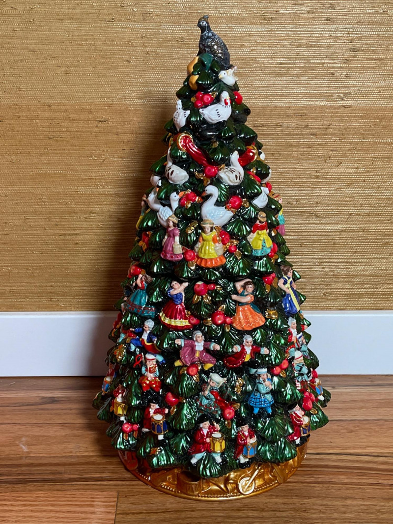 RARE Signed Christopher Radko 12 Days of Christmas Musical Cookie Jar Celebrate the magic of the holidays with this spectacular Christopher Radko "Twelve Days of Christmas" Tree Centerpiece. Beautifully crafted and delicately hand painted, this highly detailed ceramic tree captures all 12 gifts from the beloved carol — from a partridge in a pear tree to twelve drummers drumming — rendered in vibrant colors and rich texture.