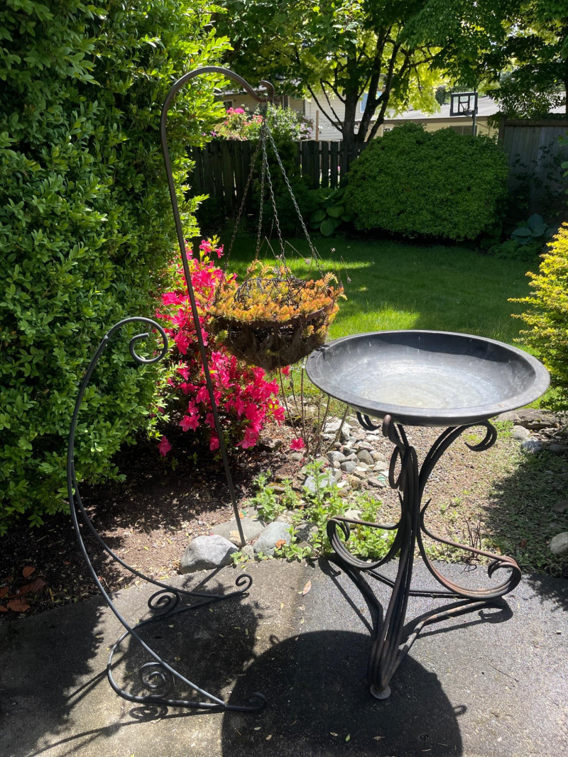 Iron Garden Bird Bath & 2 Plant Stands – Sturdy Outdoor Set
