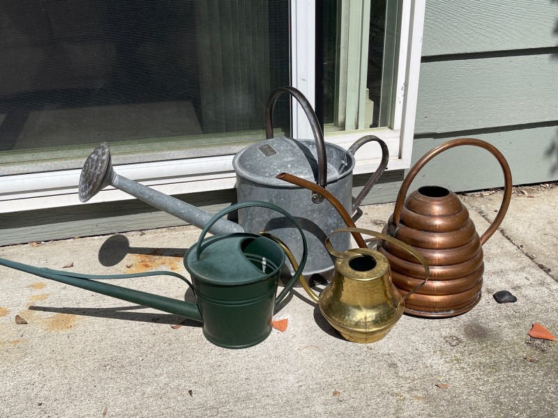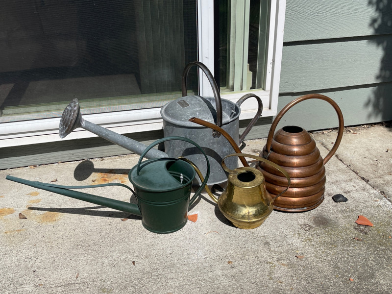 Lot # 160 - Decorative Watering Cans – Brass, Copper, Galvanized & Green Metal