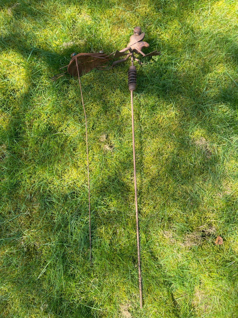 Heights range from approximately 3" to 37". Some pieces show minor wear or rust consistent with outdoor use. A unique mix for collectors or garden décor enthusiasts!