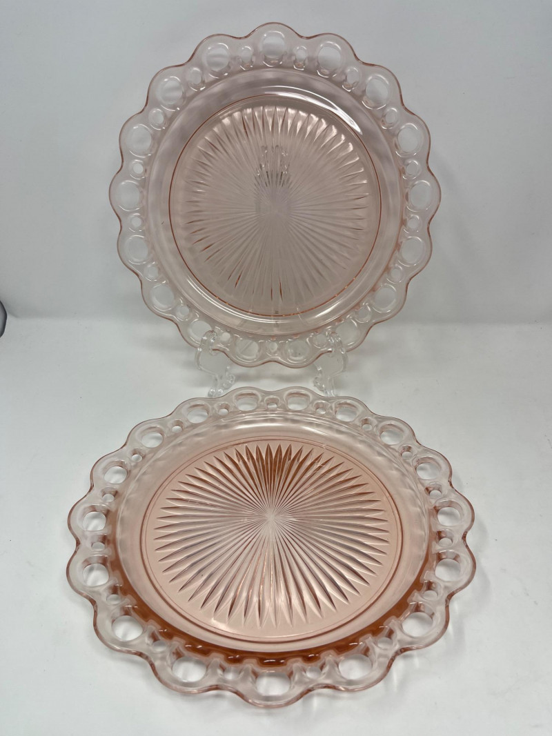 Lot # 173 - Vintage Pink Depression Glass Assortment – Plates, Bowl, Creamer +