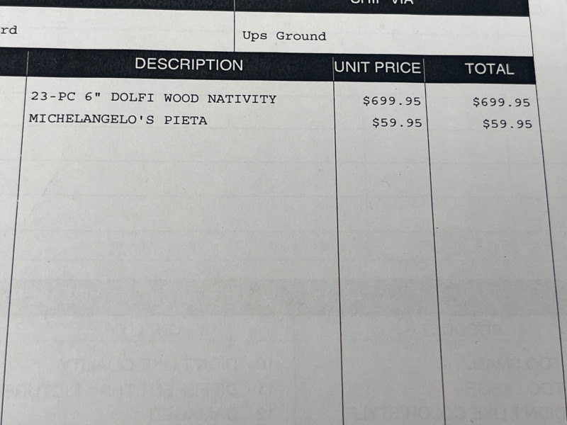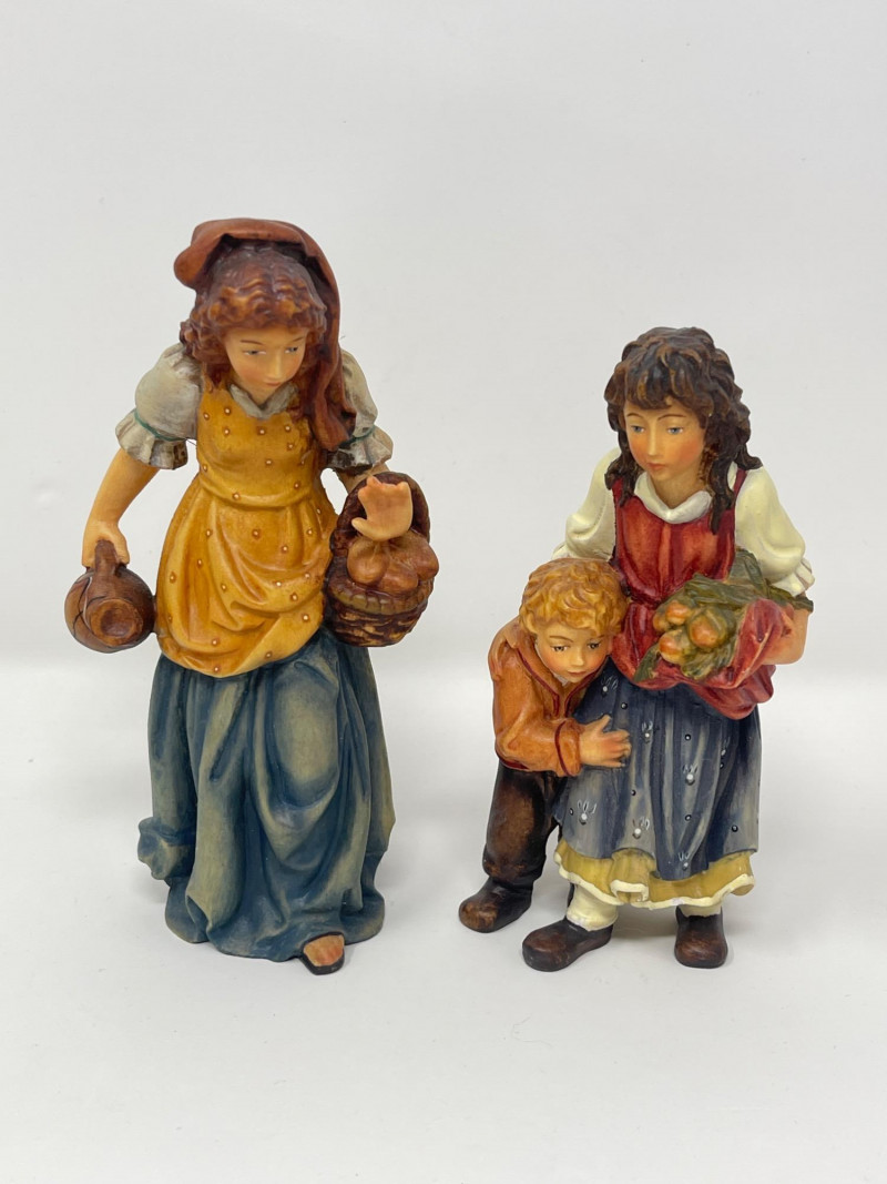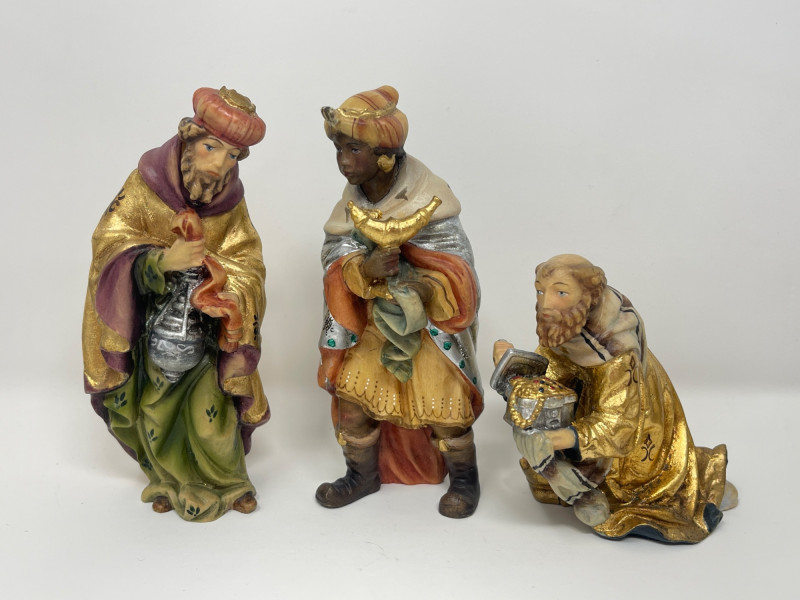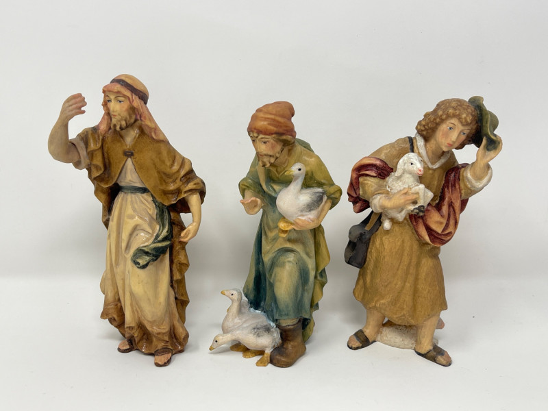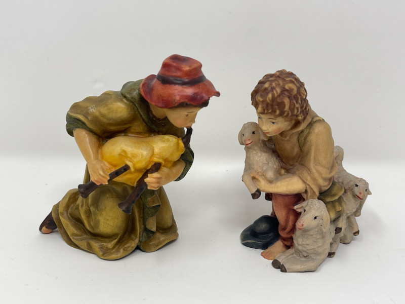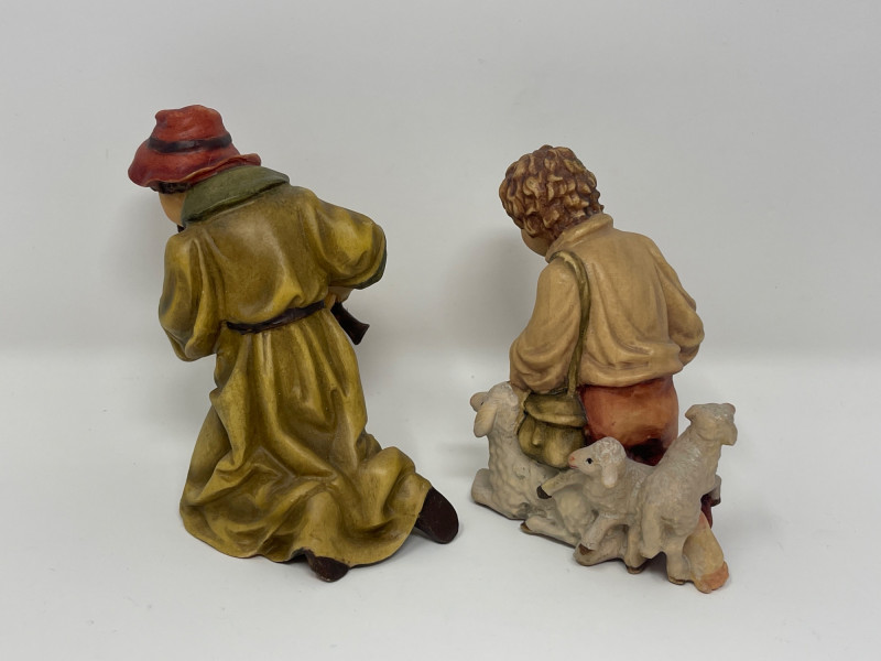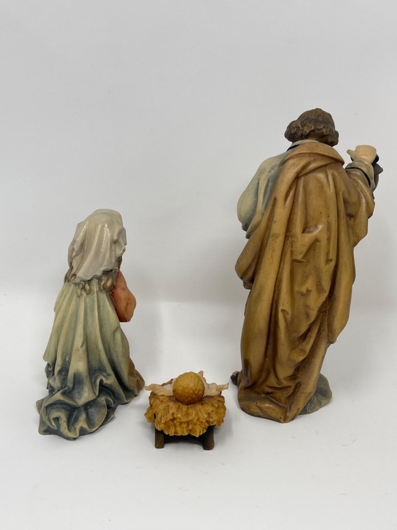 Beautiful 23-piece Italian nativity set by Dolfi, featuring intricately hand-carved and hand-painted wood figures measuring approximately 6 inches tall. Crafted in Italy in the “Matteo Krippe” style, this set includes the Holy Family, Three Kings, angels, shepherds, animals, and even a camel—each full of character and detail. The set is accompanied by the original identification guide. Excellent condition. Does NOT have barn piece. Estimated Market Value: A stunning heirloom-quality nativity set for collectors or holiday décor enthusiasts.