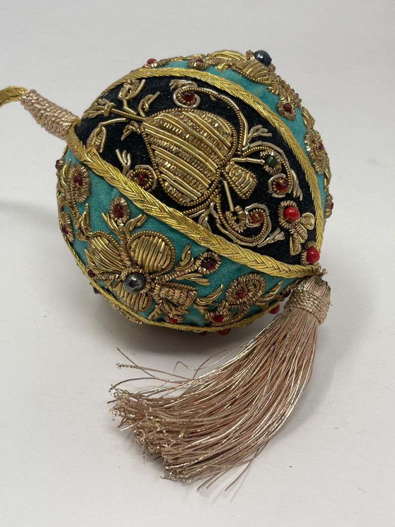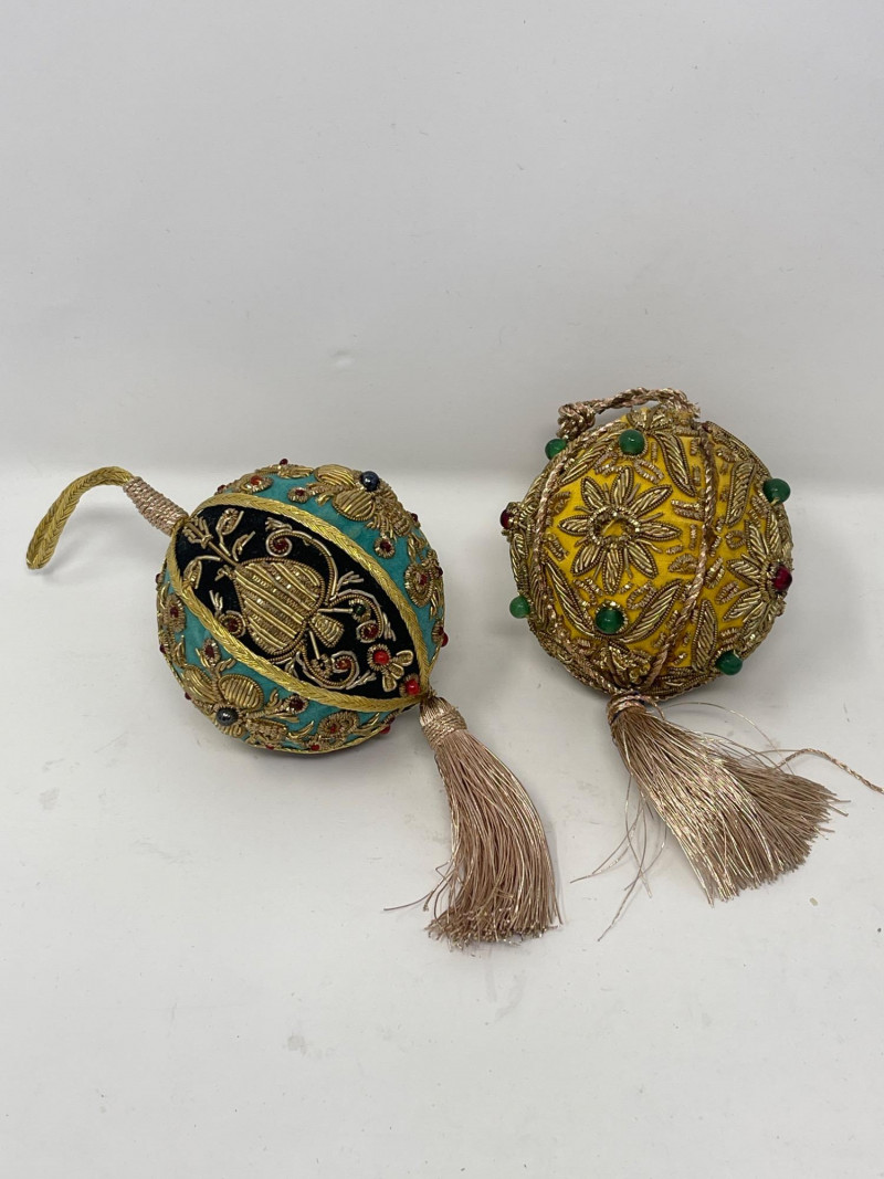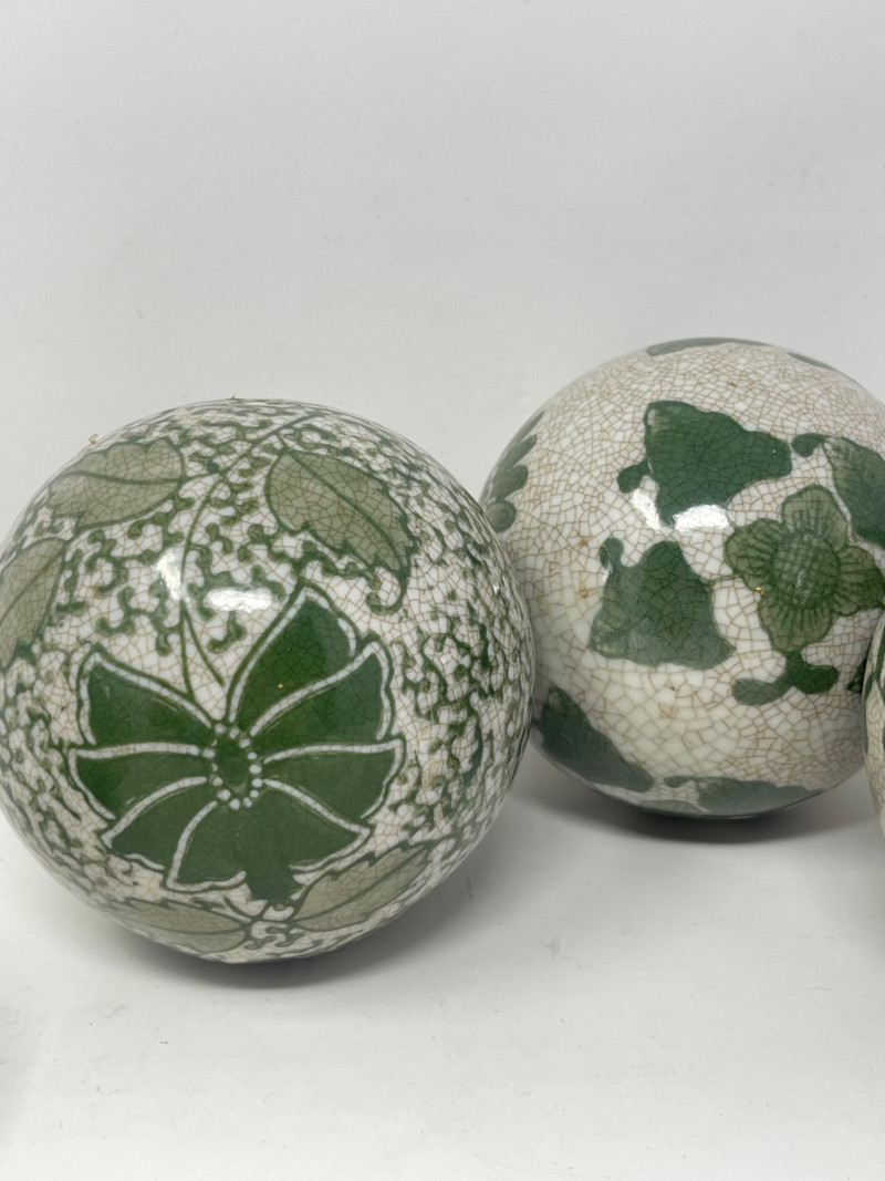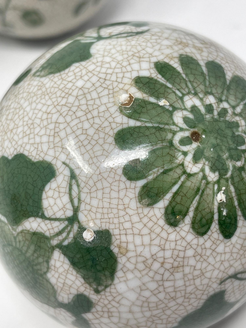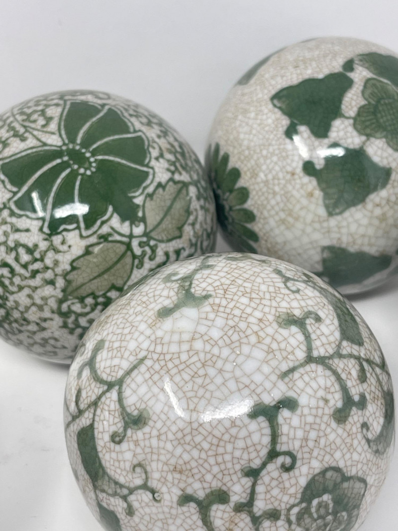 Lot # 188 - Decorative Ceramic & Beaded Balls – Crackle Glaze + Embroidery