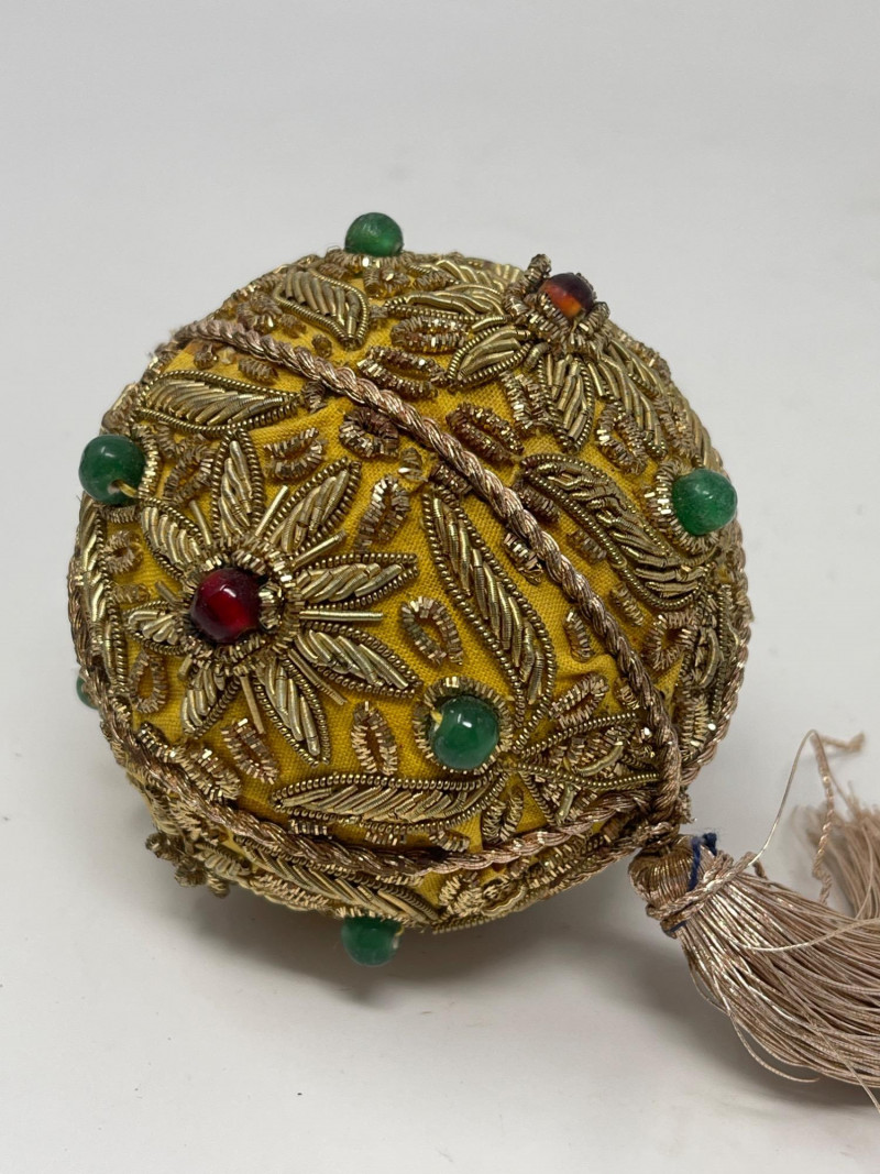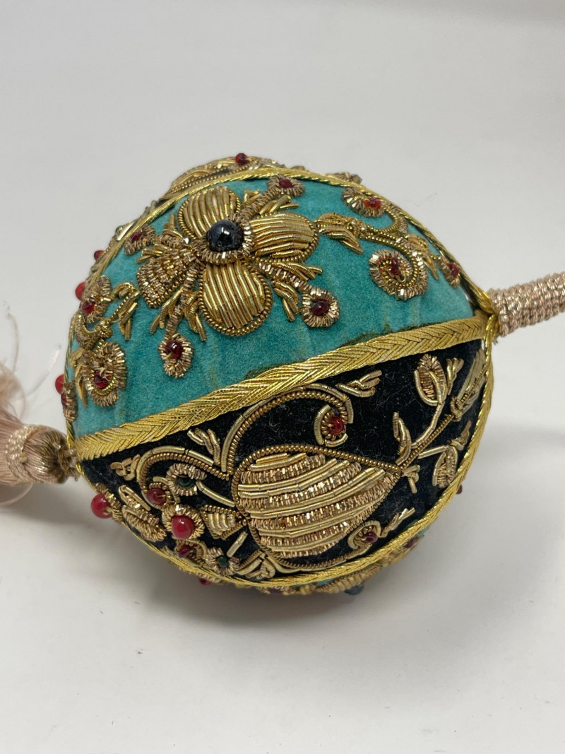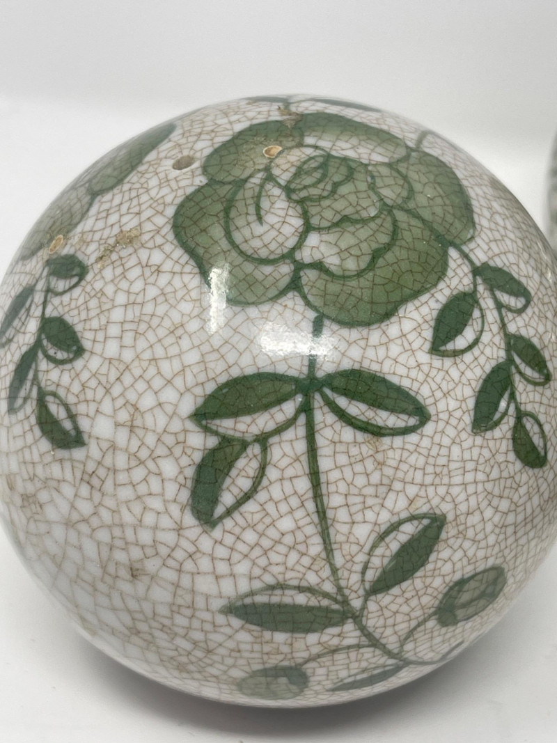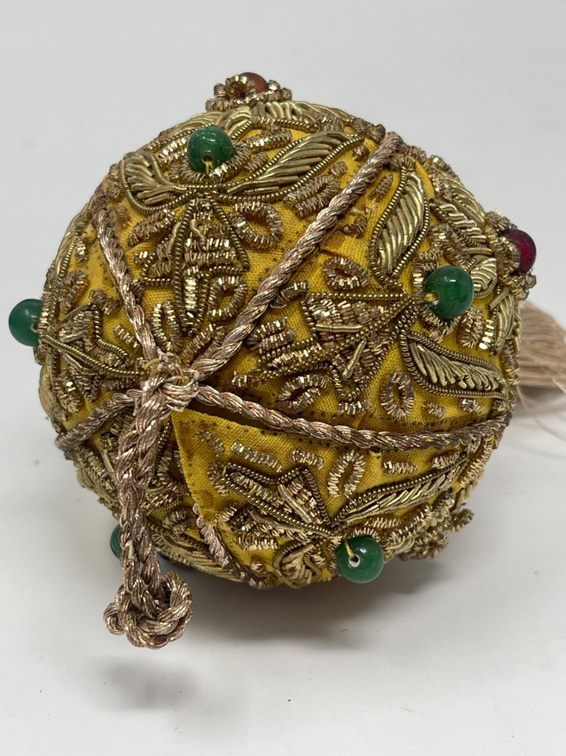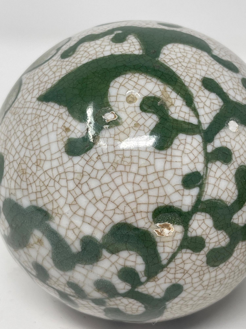 Lot # 188 - Decorative Ceramic & Beaded Balls – Crackle Glaze + Embroidery