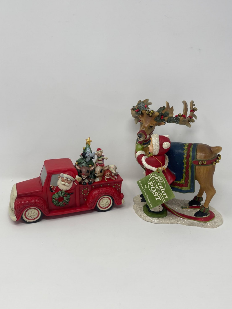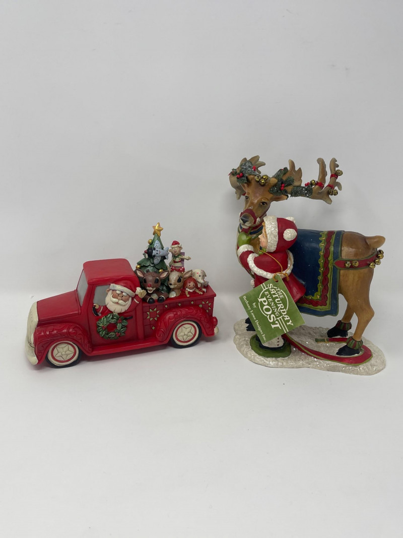 Bethany Lowe & Rudolph Traditions Christmas Figures Celebrate the magic of Christmas with this delightful set of two holiday collectible figurines by beloved designers Jim Shore and Bethany Lowe. 1. Rudolph Traditions Red Truck Scene by Jim Shore for Enesco 2. Saturday Evening Post Reindeer with Santa by Bethany Lowe Designs