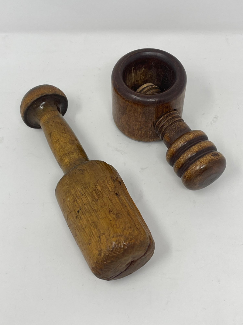 Lot # 192 - Rustic Carved Wood Kitchenware Lot – Bowls, Platters, Nutcracker