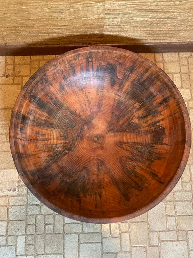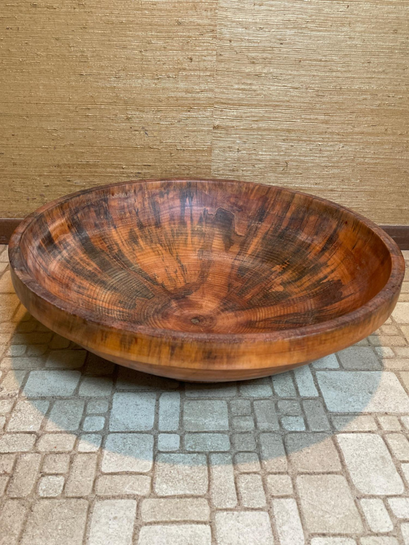 Smooth, wide bowl with dramatic wood grain striations—perfect for salads, fruit, or countertop display.