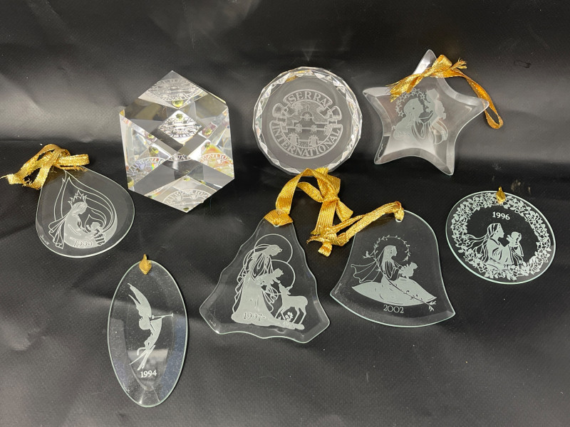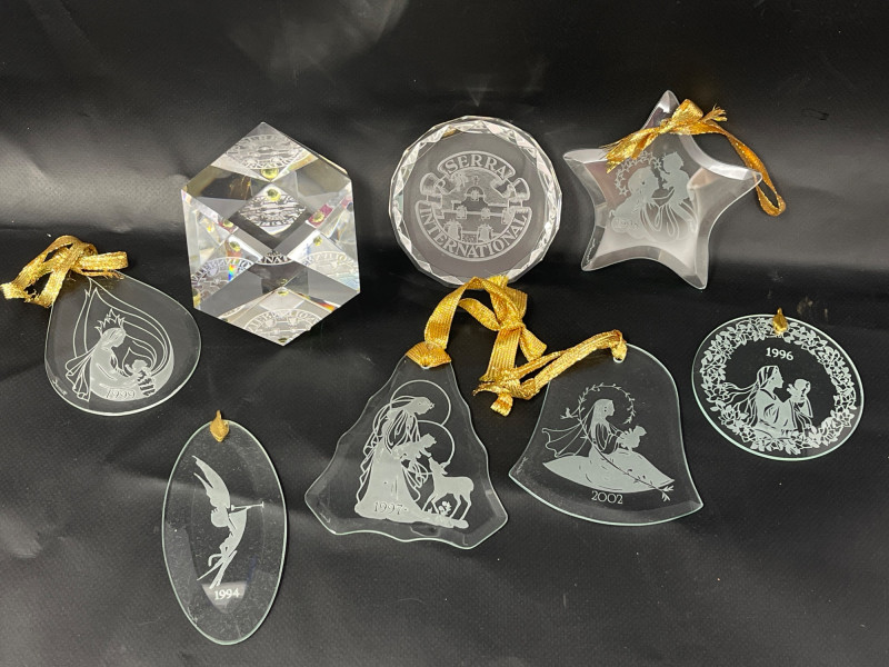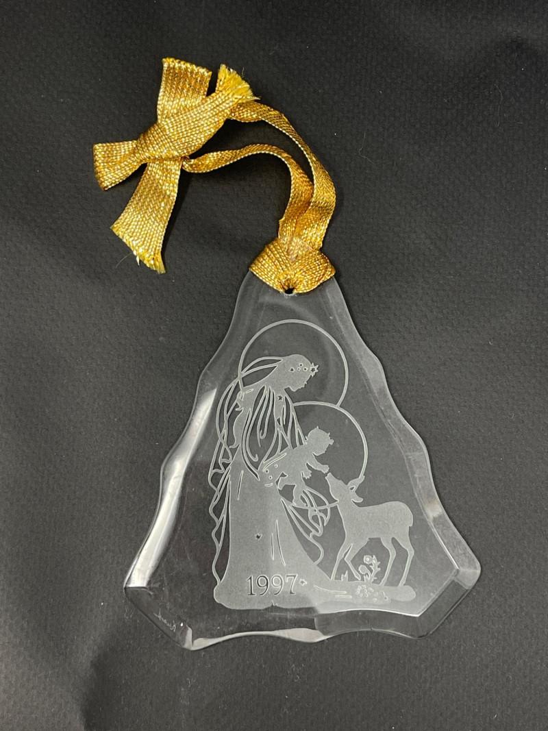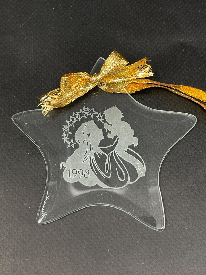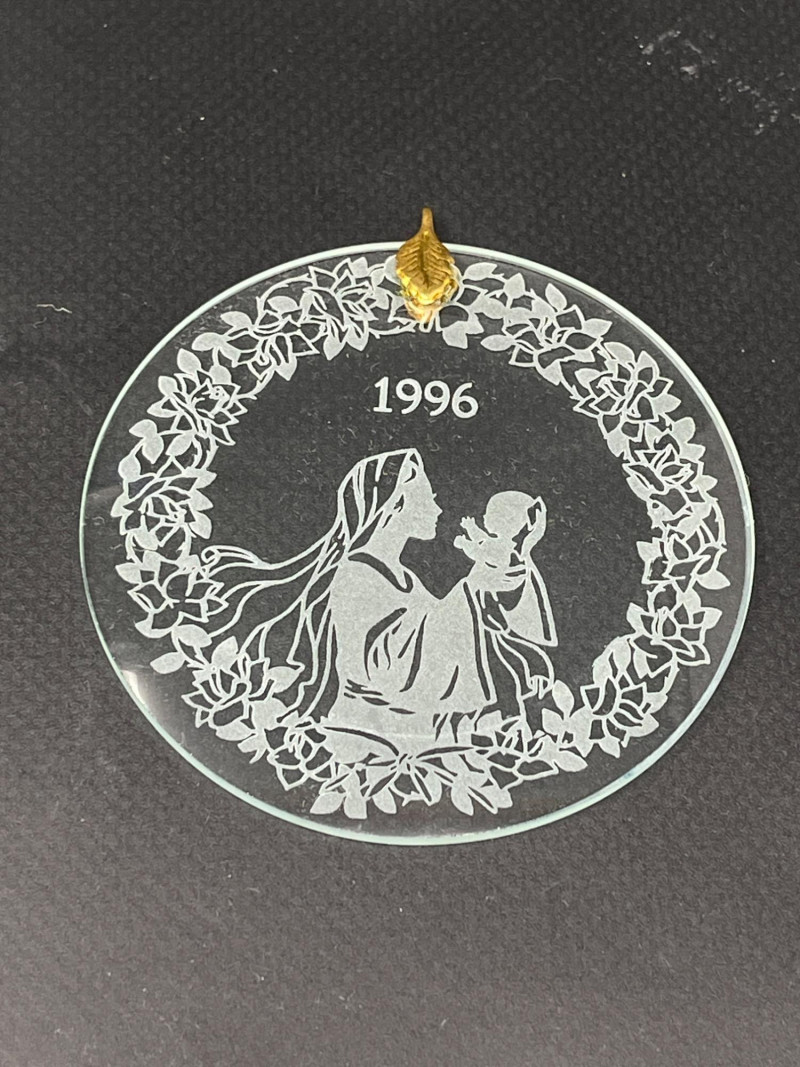 Kusak Glass Ornaments & Crystal Keepsakes – 1994–2002 Nativity Themes This beautifully preserved collection features eight etched glass ornaments and crystal keepsakes by renowned Pacific Northwest glassmaker Kusak Cut Glass Works. Celebrating Christmas and spiritual themes, each ornament captures a moment of serenity and grace—many depicting Madonna and Child or Nativity scenes, with individual pieces dated from 1994 through 2002. Each piece ranges approximately 3" to 4" high, ideal for Christmas tree décor, mantel displays, or as meaningful gifts. Known for their clarity and craftsmanship, Kusak ornaments are both collectible and heirloom-worthy.