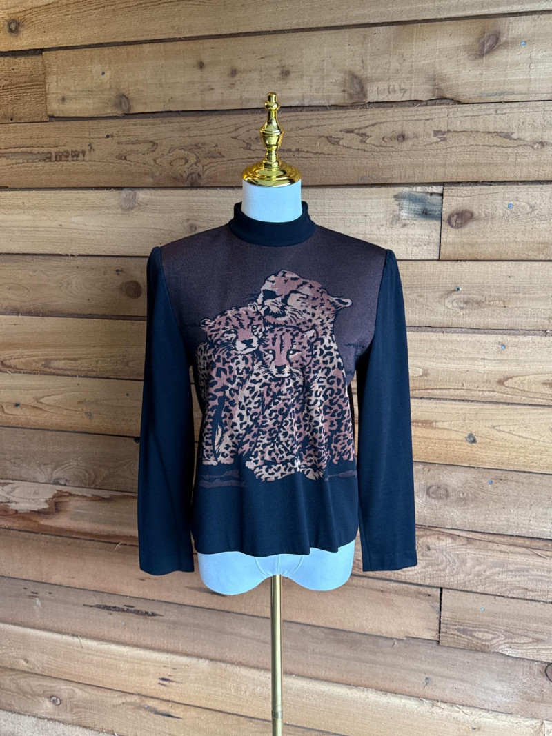 ST JOHN by Marie Gray Cheetah Mock Neck Sweater- Sz P