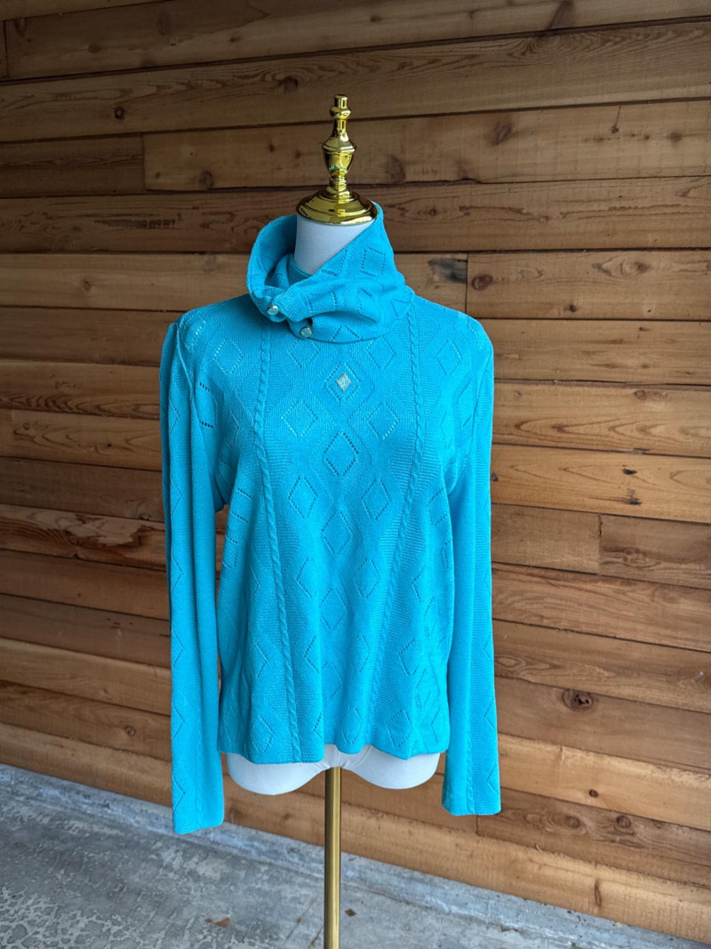 ST JOHN Sport Aqua Knit Sweater & Headband Duo- Sz P