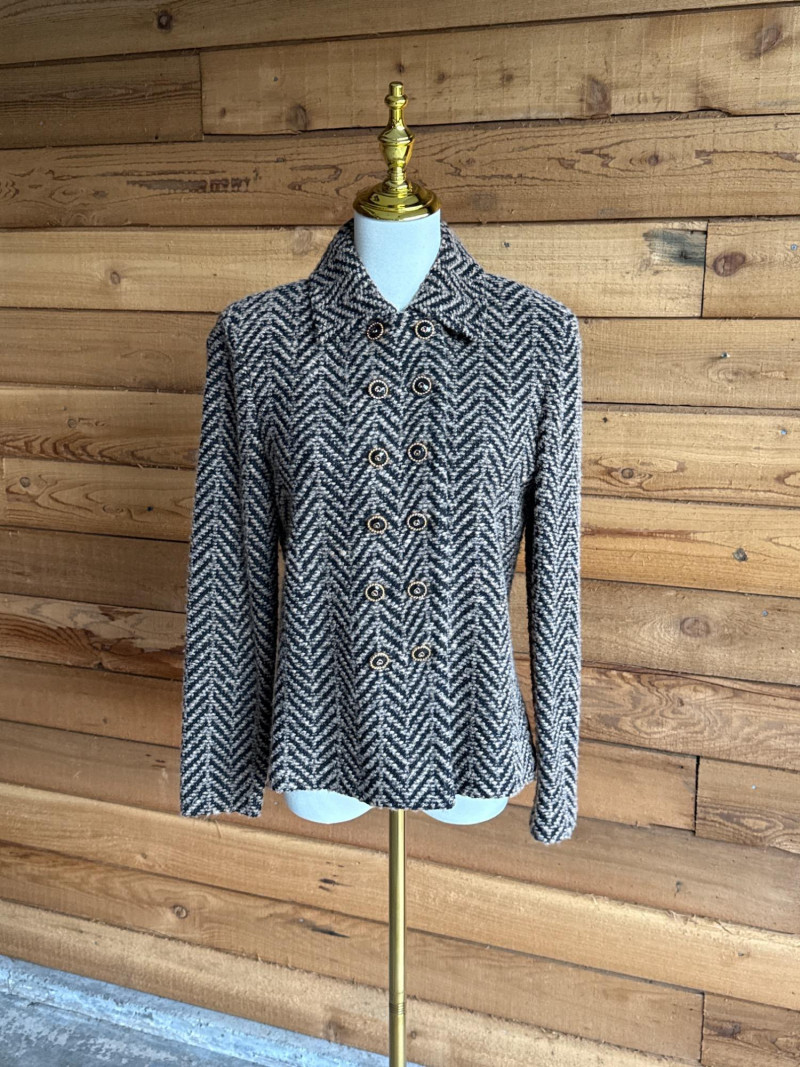 ST JOHN Black & Tan Double-breasted Jacket- Sz P